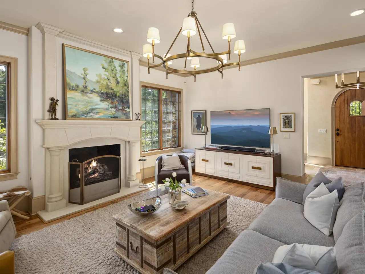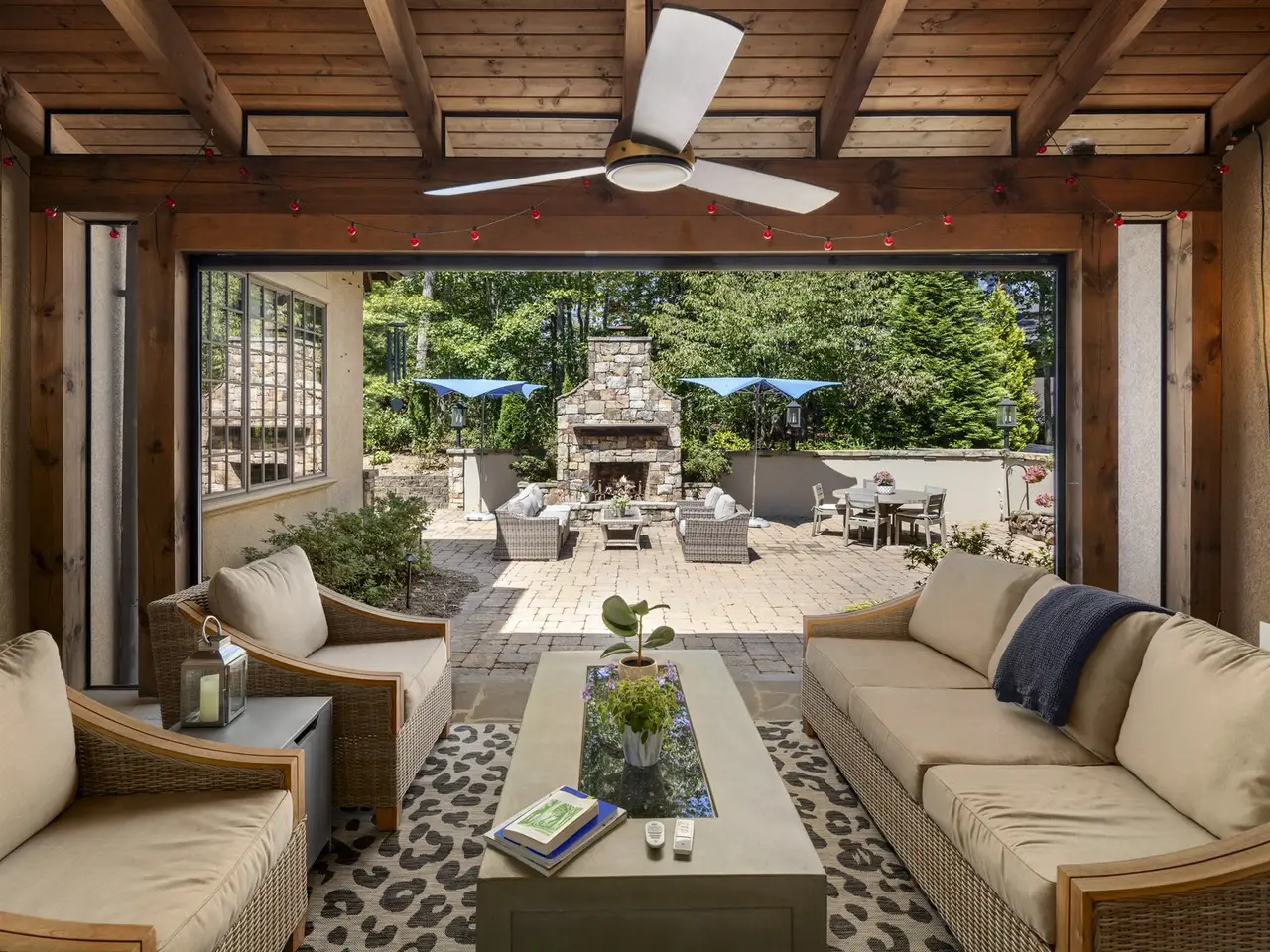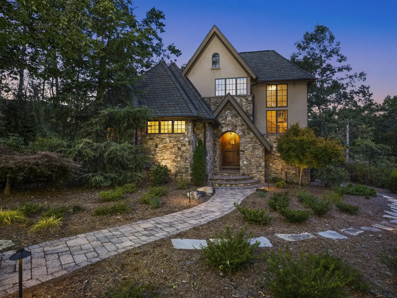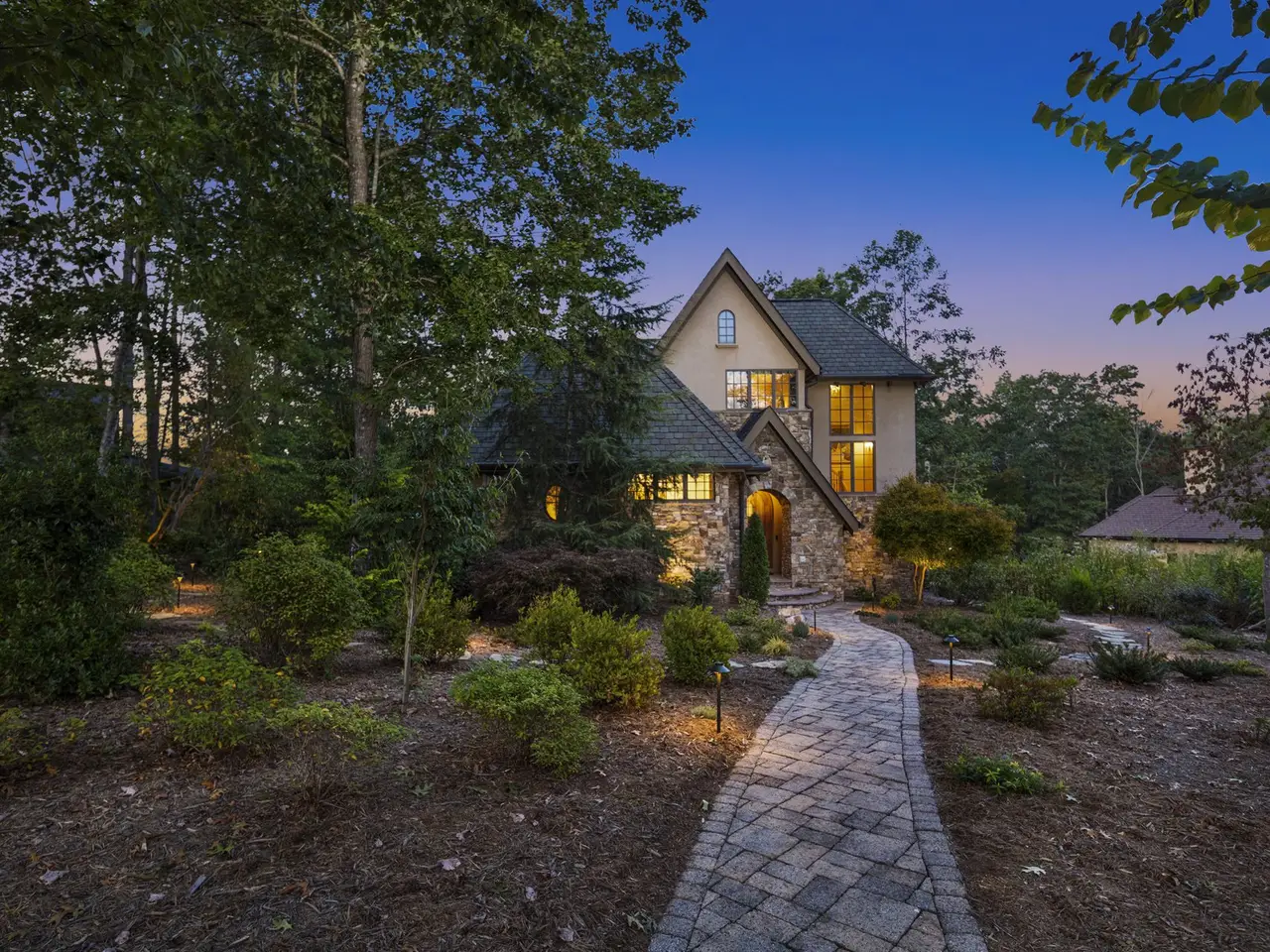 Discover exquisite mountain living in this exceptional home, a superb-quality residence by renowned builder Butch Heatherly. As the original model home for Cove Park, this residence was designed to impress, seamlessly blending sophistication with the tranquility of its natural surroundings. Step inside and be greeted by an open floor plan, where exquisite hardwood floors guide you from a spacious living room with a cozy fireplace to a high-end kitchen. Perfect for entertaining, the gourmet kitchen features a huge island, top-of-the-line appliances (including a 48" Wolf range), and a walk-in pantry. The dining area is bathed in natural light from large Pella windows, providing a lovely space for meals and gatherings. Throughout the home, designer lighting fixtures add a touch of elegance. The residence offers three bedrooms with en-suite bathrooms, including an immense master suite with large walk-in closets, and a powder room on the main level, providing a private and luxurious retreat. Venture outside to a covered porch with a roll-down screen, extending your living space and allowing for comfortable enjoyment of the outdoors. The property's beautifully landscaped courtyard is a true oasis, featuring a stunning multi-tiered water feature with a stone waterfall and a separate, inviting patio area with a stone fireplace and hot tub - perfect for al fresco dining or relaxing on cool evenings. A new landscape lighting system illuminates the grounds, creating a magical ambiance. This home is as functional as it is beautiful, featuring a whole-house water filtration system and an encapsulated crawl space for optimal maintenance. Situated about 500 feet from the community's Wellness Center, residents can take advantage of the indoor and outdoor pools, Har-Tru tennis courts, state-of-the-art workout equipment, and various fitness classes. This home provides the ideal blend of a private sanctuary and access to a vibrant, active community. Club membership is available.