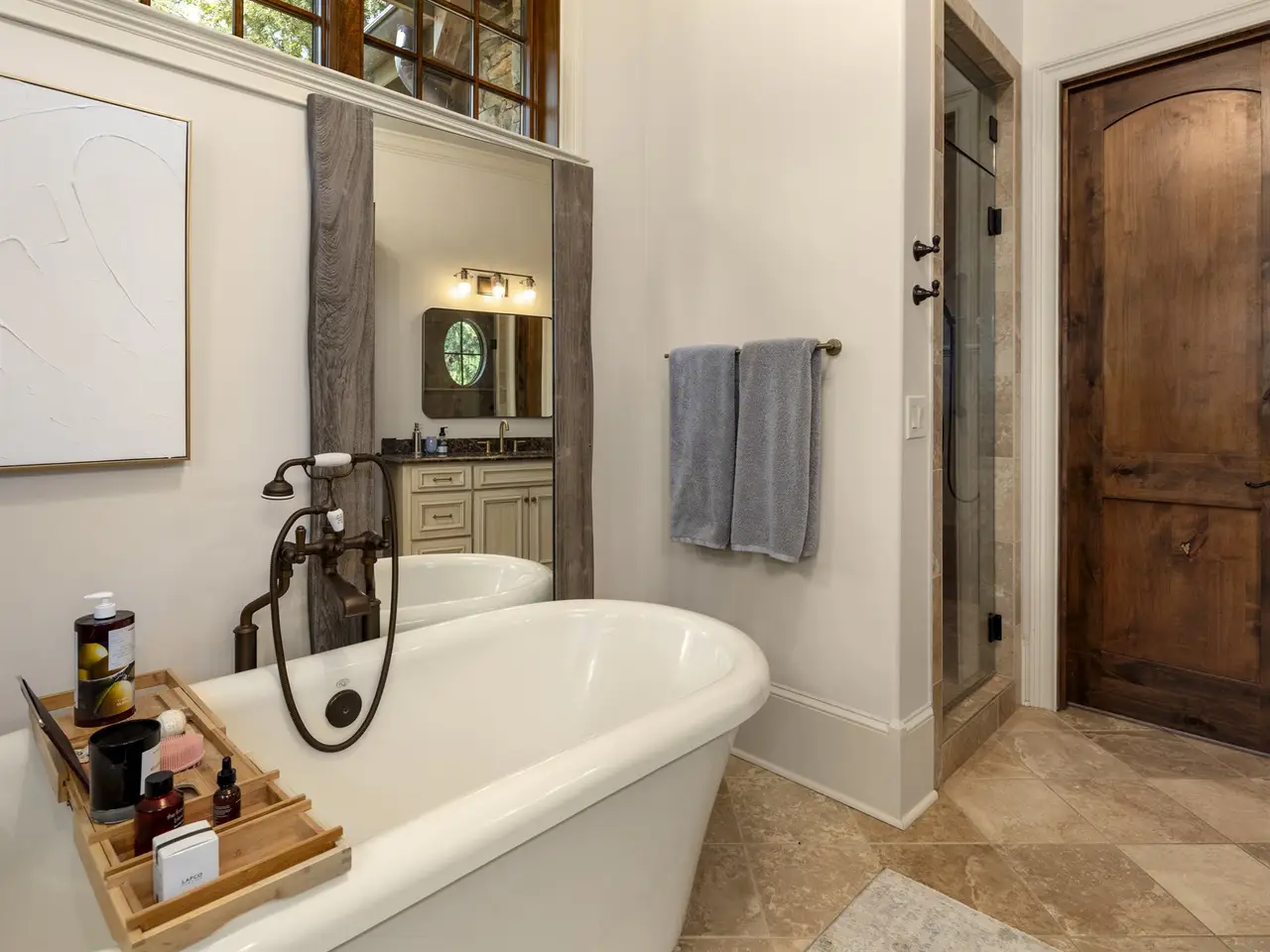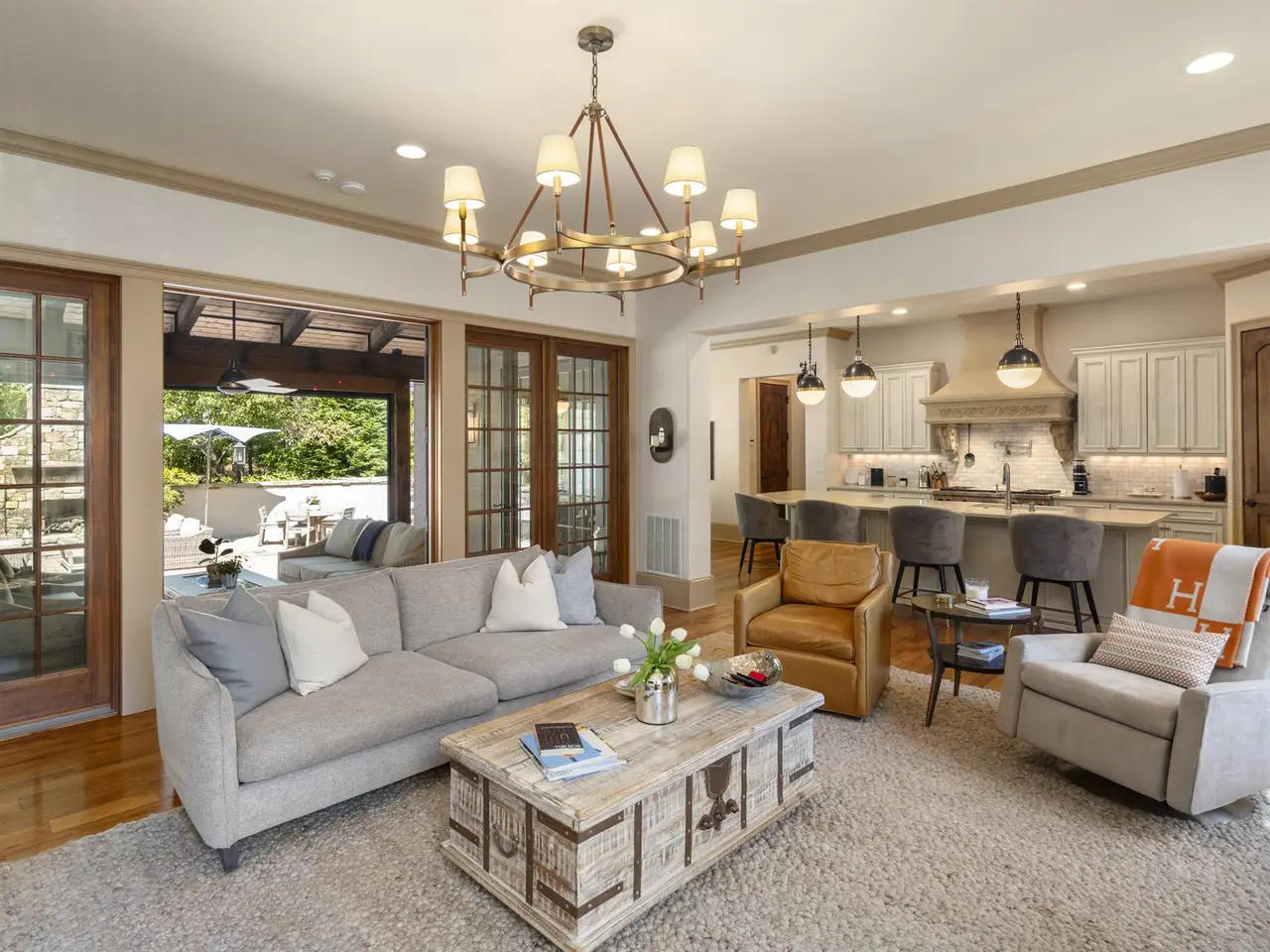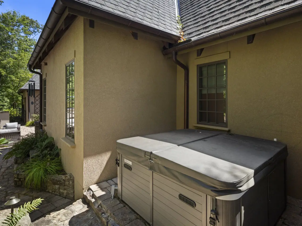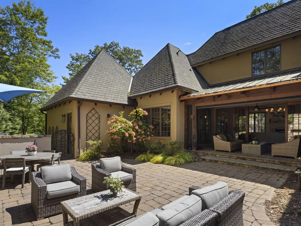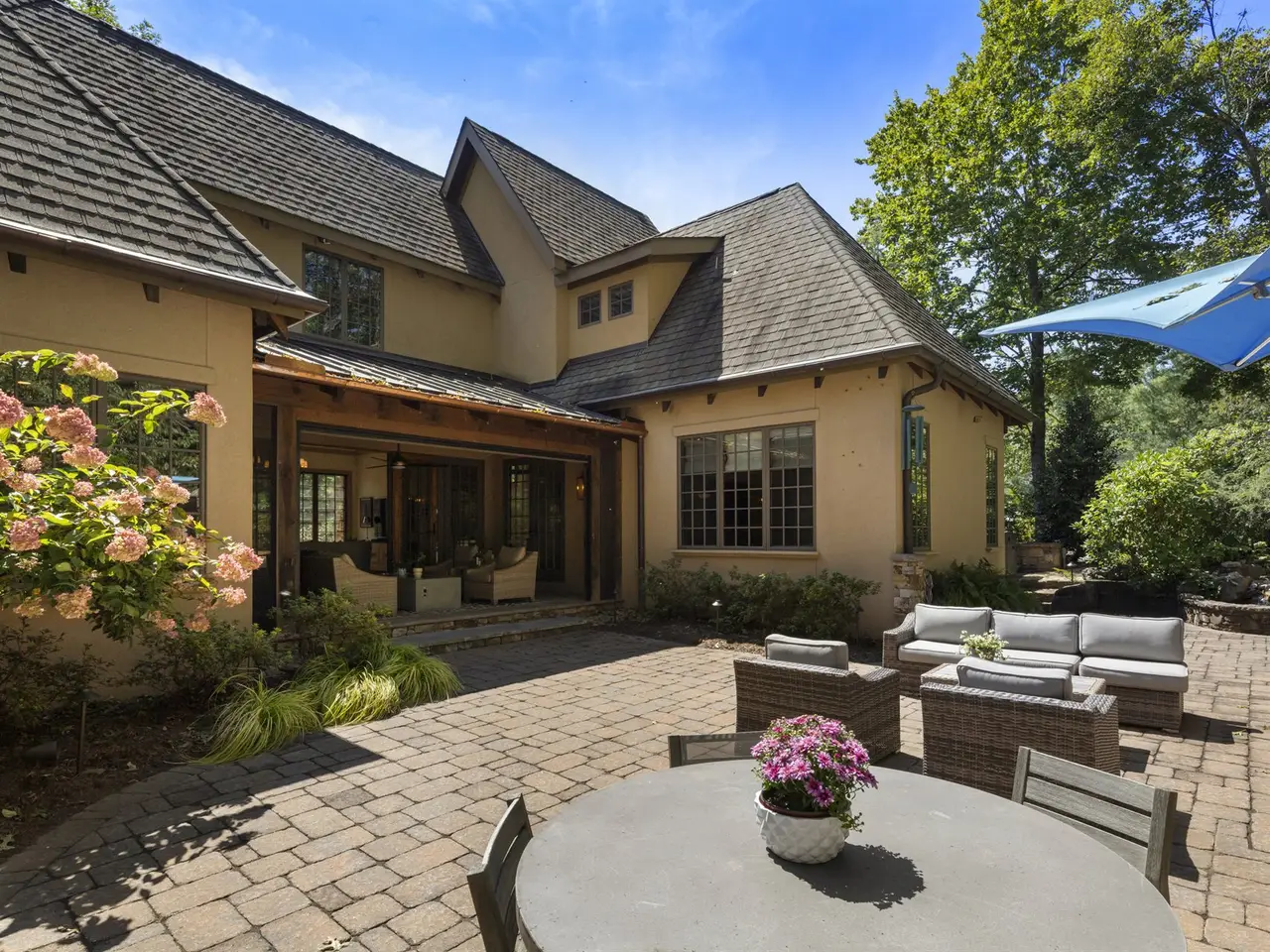 Discover exquisite mountain living in this exceptional home, a superb-quality residence by renowned builder Butch Heatherly. As the original model home for Cove Park, this residence was designed to impress, seamlessly blending sophistication with the tranquility of its natural surroundings. Step inside and be greeted by an open floor plan, where exquisite hardwood floors guide you from a spacious living room with a cozy fireplace to a high-end kitchen. Perfect for entertaining, the gourmet kitchen features a huge island, top-of-the-line appliances (including a 48" Wolf range), and a walk-in pantry. The dining area is bathed in natural light from large Pella windows, providing a lovely space for meals and gatherings. Throughout the home, designer lighting fixtures add a touch of elegance. The residence offers three bedrooms with en-suite bathrooms, including an immense master suite with large walk-in closets, and a powder room on the main level, providing a private and luxurious retreat. Venture outside to a covered porch with a roll-down screen, extending your living space and allowing for comfortable enjoyment of the outdoors. The property's beautifully landscaped courtyard is a true oasis, featuring a stunning multi-tiered water feature with a stone waterfall and a separate, inviting patio area with a stone fireplace and hot tub - perfect for al fresco dining or relaxing on cool evenings. A new landscape lighting system illuminates the grounds, creating a magical ambiance. This home is as functional as it is beautiful, featuring a whole-house water filtration system and an encapsulated crawl space for optimal maintenance. Situated about 500 feet from the community's Wellness Center, residents can take advantage of the indoor and outdoor pools, Har-Tru tennis courts, state-of-the-art workout equipment, and various fitness classes. This home provides the ideal blend of a private sanctuary and access to a vibrant, active community. Club membership is available.