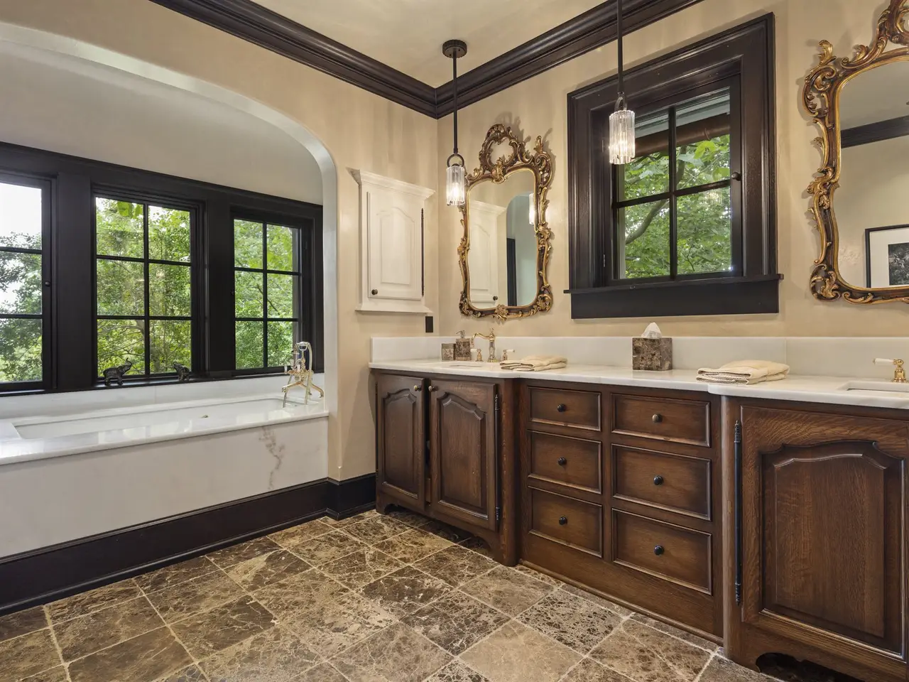 Spa-inspired bath with steam shower and whirlpool tub