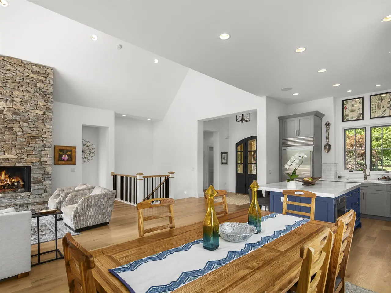 The Meadow is one of the most popular enclaves in The Cliffs at Walnut Cove. Awaken to the warm morning light shining through spacious windows, the sound of the stream/waterfall in your south-facing backyard, and beautiful mountain vistas. This large townhome was renovated "down to studs" and completed in 2021. Phenomenal floor plan for entertaining with a 20'+ vaulted great room w/beamed ceiling, integrated sound system throughout, gourmet chef's kitchen with Bosch, Wolf/SubZero appliances, powder room, laundry and master on the main floor. Spa-like bathrooms all feature Italian honed marble, Brizo fixtures and custom cabinetry. The master bath features a frameless shower, Italian porcelain tile, a Victoria & Albert soaking tub and 2 custom his and her closets. Downstairs offers 2 generous guest suites, living room prewired for media w/custom surround sound system speakers, wet bar with a 7 foot SubZero wine refrigerator. Membership available.