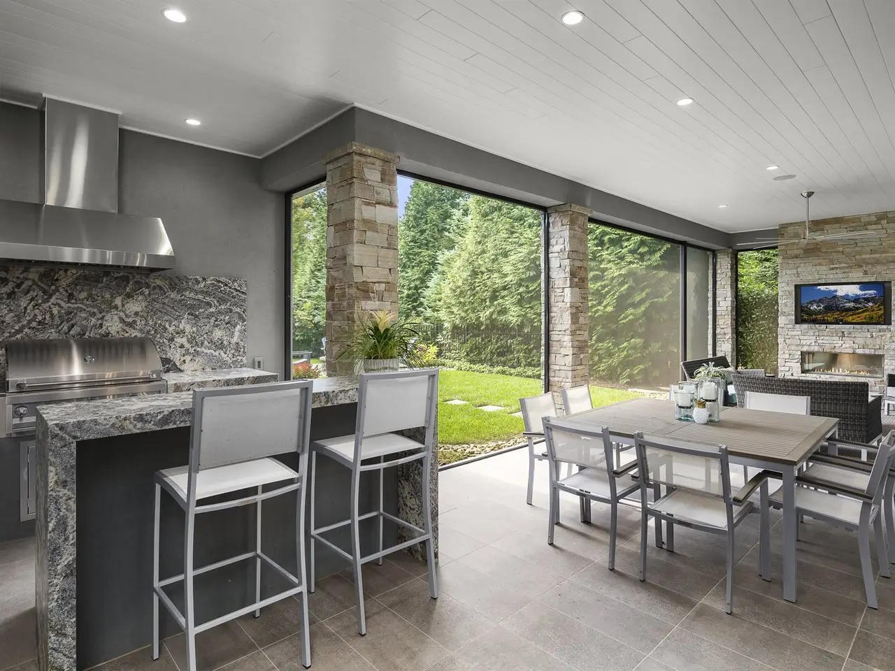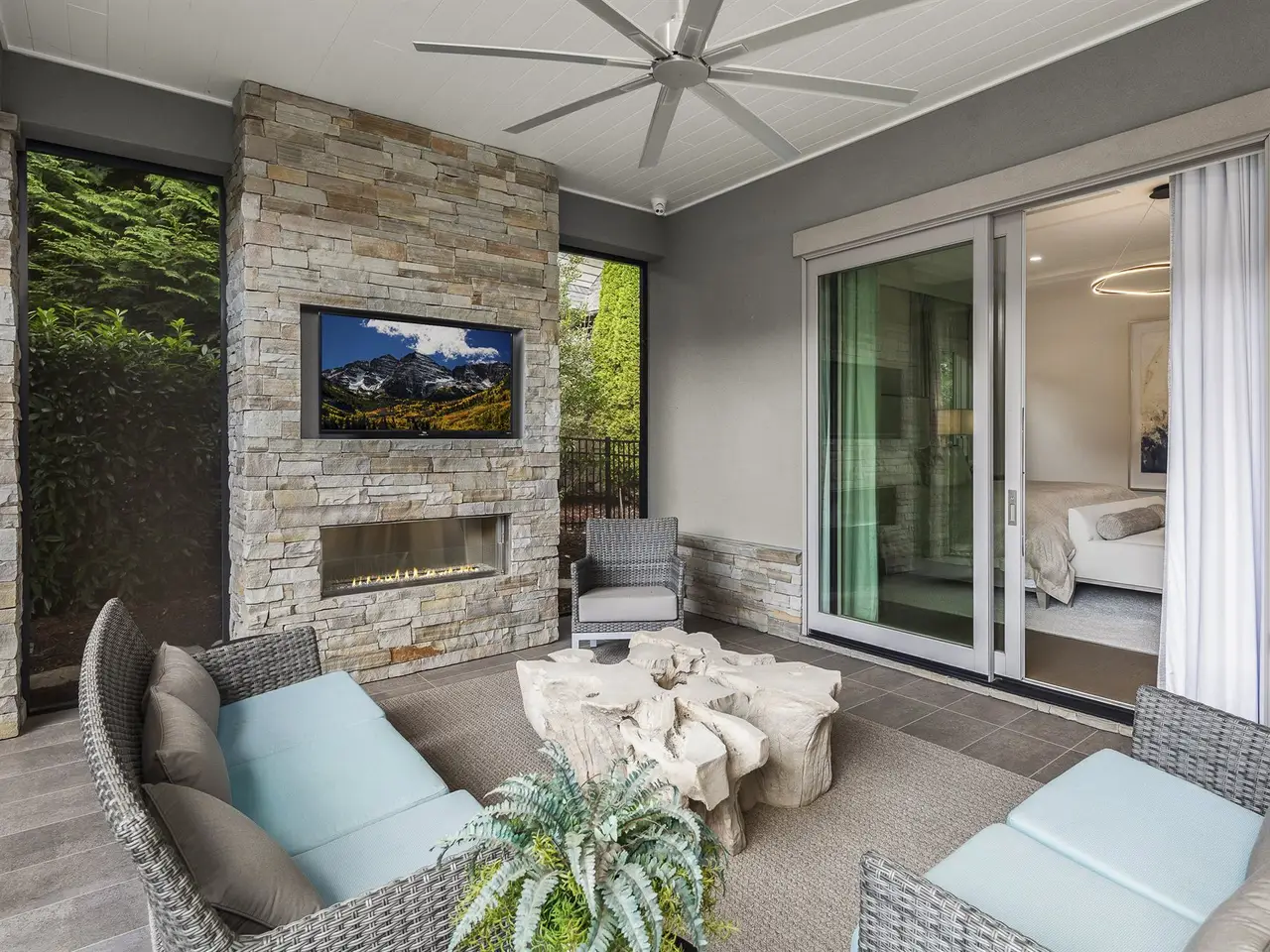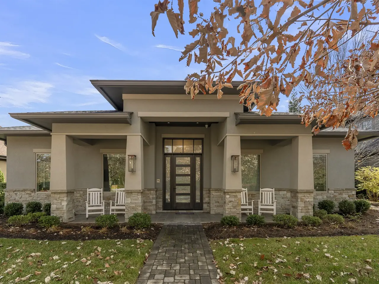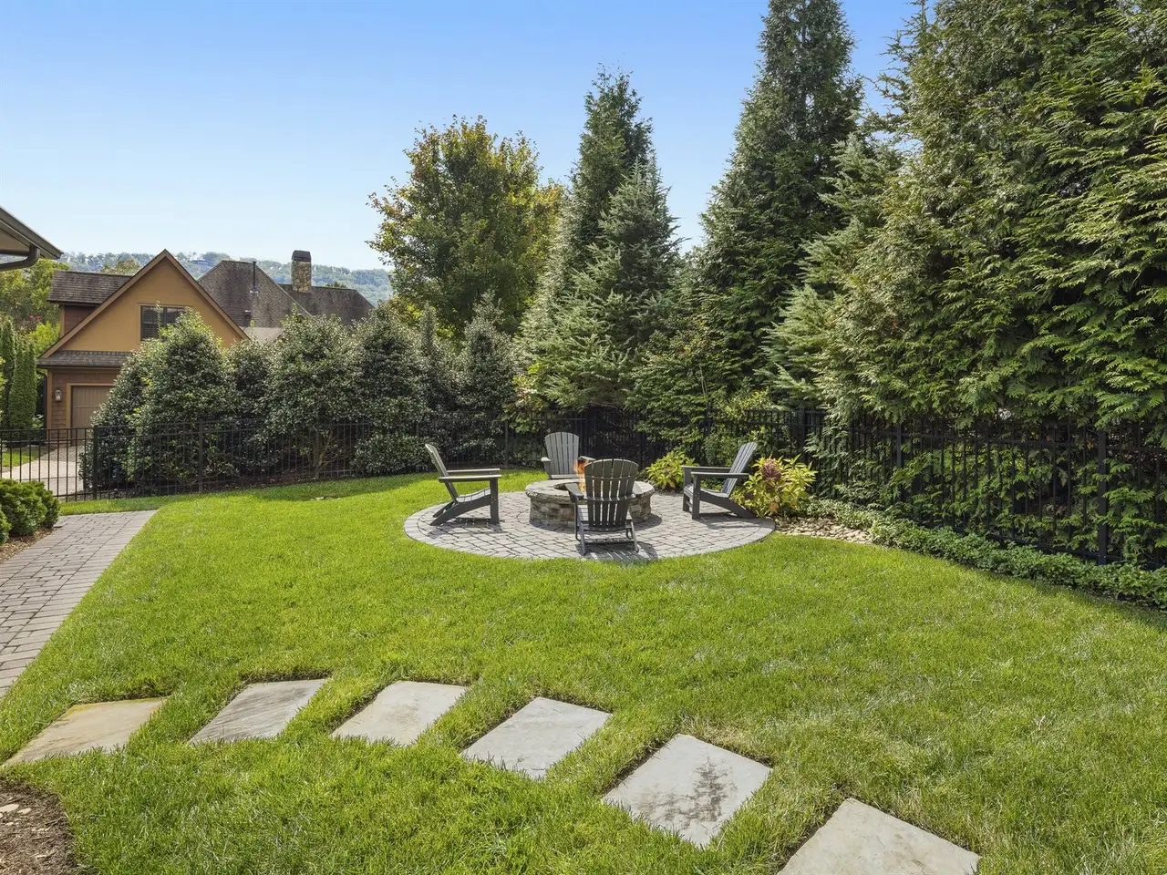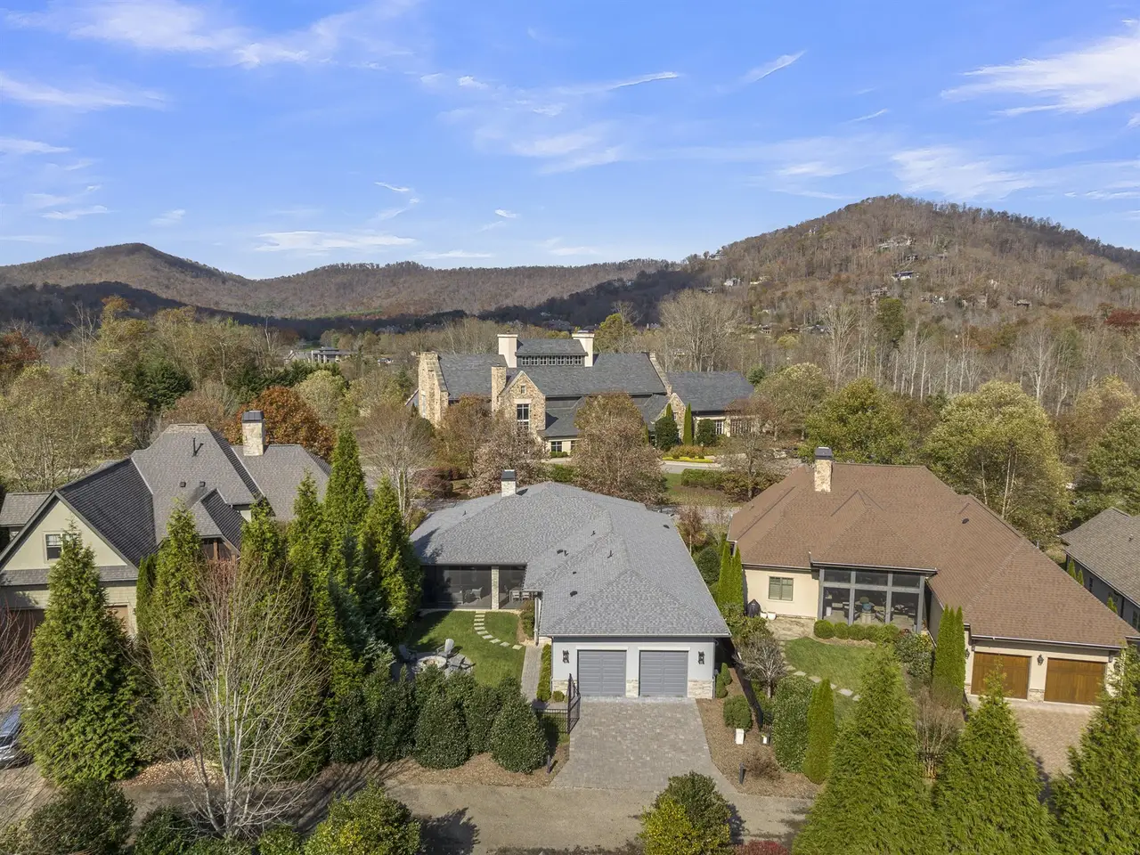 This stunning property seamlessly blends modern comfort with nature's beauty. The charming home features a welcoming facade and beautifully landscaped yard, providing a serene setting. Inside, the one-level open-concept living area boasts high ceilings and expansive windows that fill the home with natural light. The spacious living room flows into a modern kitchen equipped with high-end appliances and a cozy breakfast nook. With three generously-sized bedrooms, including a luxurious master suite, each with an en-suite bathroom, this home offers ample space for relaxation for you and your guests. The expansive rear patio, complete with a fireplace, is perfect for outdoor dining or enjoying morning coffee while listening to the soothing sounds of nature. Conveniently located across from the Wellness Center and just a short drive from Asheville, you can easily access artisanal shops, renowned restaurants, and outdoor activities in the Blue Ridge Mountains.