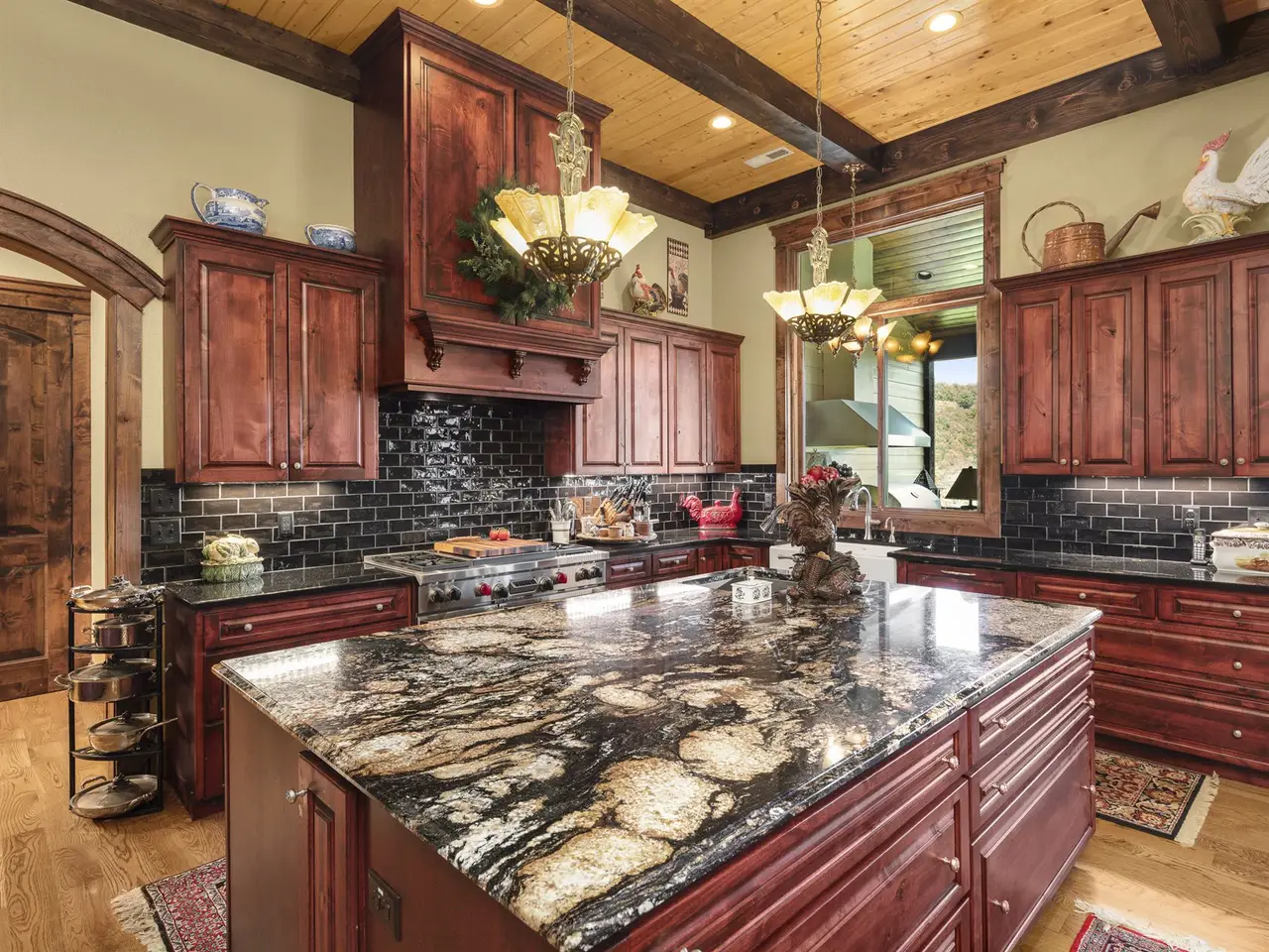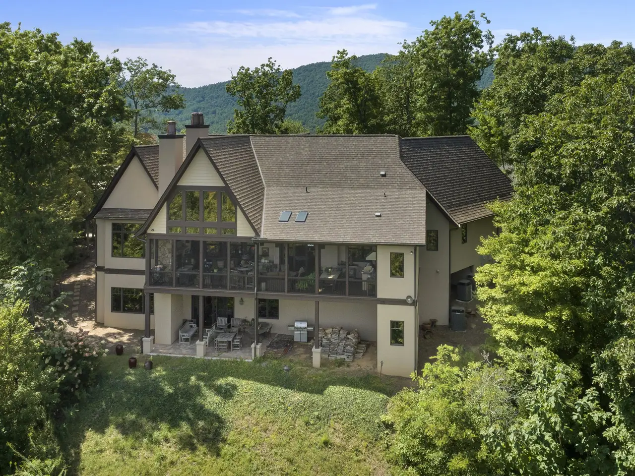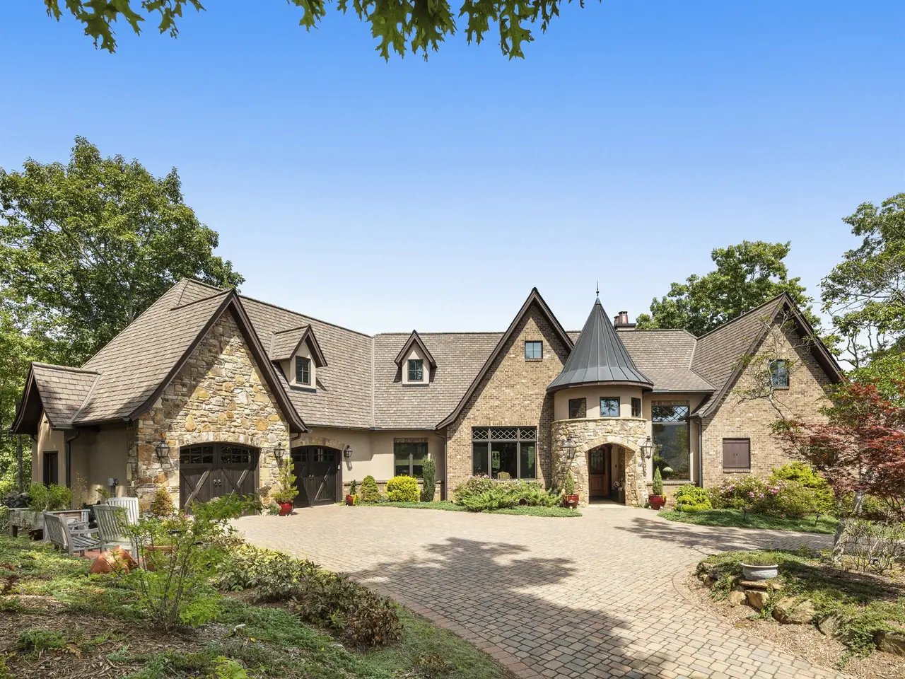 Situated on one of the most desirable parcels in The Cliffs at Walnut Cove, this stately home offers stunning long-range mountain views and mesmerizing sunrises. A bespoke quality build by Jeremy Aikens Construction of Cashiers, NC, you will fall in love with the soaring ceilings over 20-feet high, lush wood finishes, traditional brass and glass touches, stacked stone fireplaces inside and out, inviting wine room, and endless storage for all your collections. The luxurious main level primary has a wood burning fireplace, two fabulous primary closets, and spa-like bath with a built-in bubble tub with heated sides. You'll also enjoy having a home elevator, an expansive kitchen ideal for entertaining and catering, a private library, and two terrace level bedroom suites. The quiet cul-de-sac location and level driveway make it an easily accessible and peaceful retreat. For those longing for quintessential American classic design and style, this house delivers.