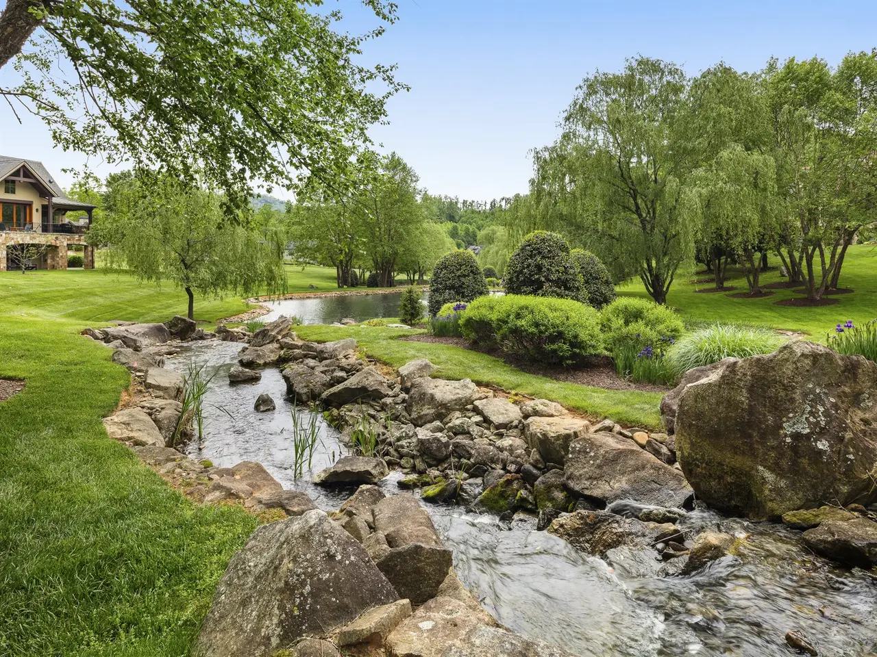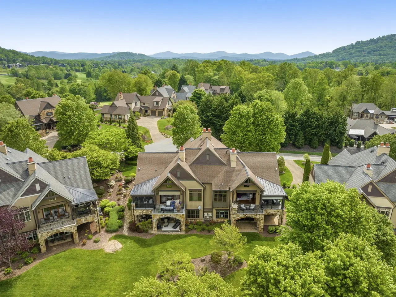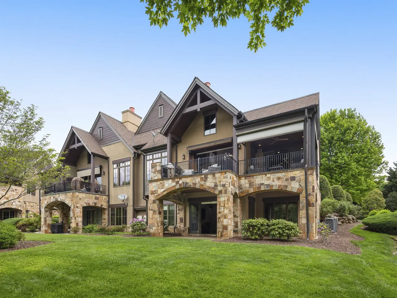 This beautifully updated stone townhome blends rustic charm with modern elegance and smart home features. Located just one minute from the gates and close to the Clubhouse and the Jack Nicklaus Signature Golf Course and tavern grill, it offers serene views of green space, water features, and mountains. The main level features open living, a gourmet kitchen with Wolf and Subzero appliances, and a spacious primary suite with vaulted ceilings and a recently renovated spa-style bath retreat! Enjoy year-round outdoor living with a covered porch, terrace, and remote-controlled screens. Downstairs offers two guest suites, a steam shower, and a private patio. Meticulously maintained with custom finishes throughout. New HVAC is being installed. This is mountain living at its finest and is being offered turn-key and fully furnished with the exception of a few personal items. See agent for the list of exceptions. Membership available.