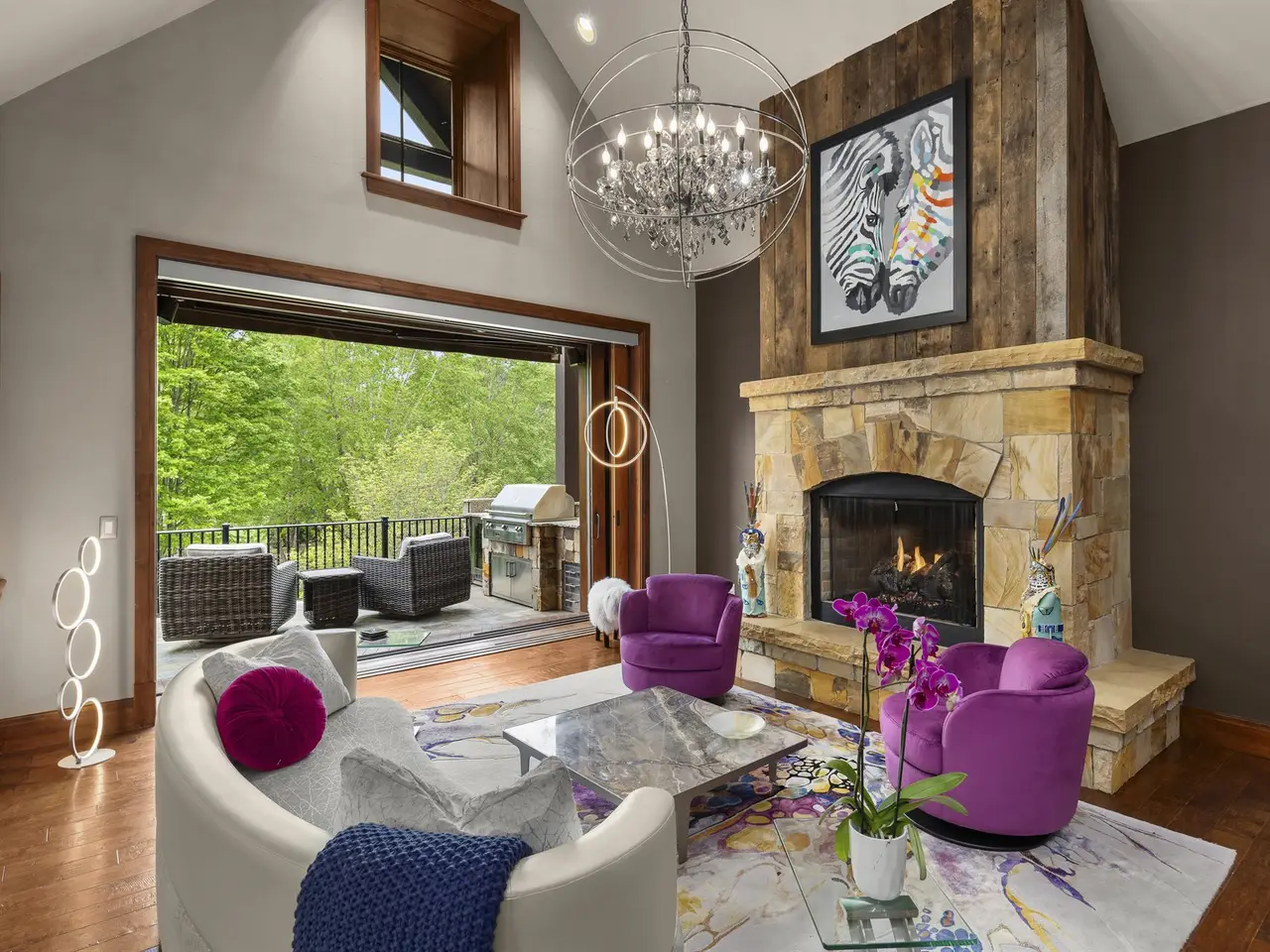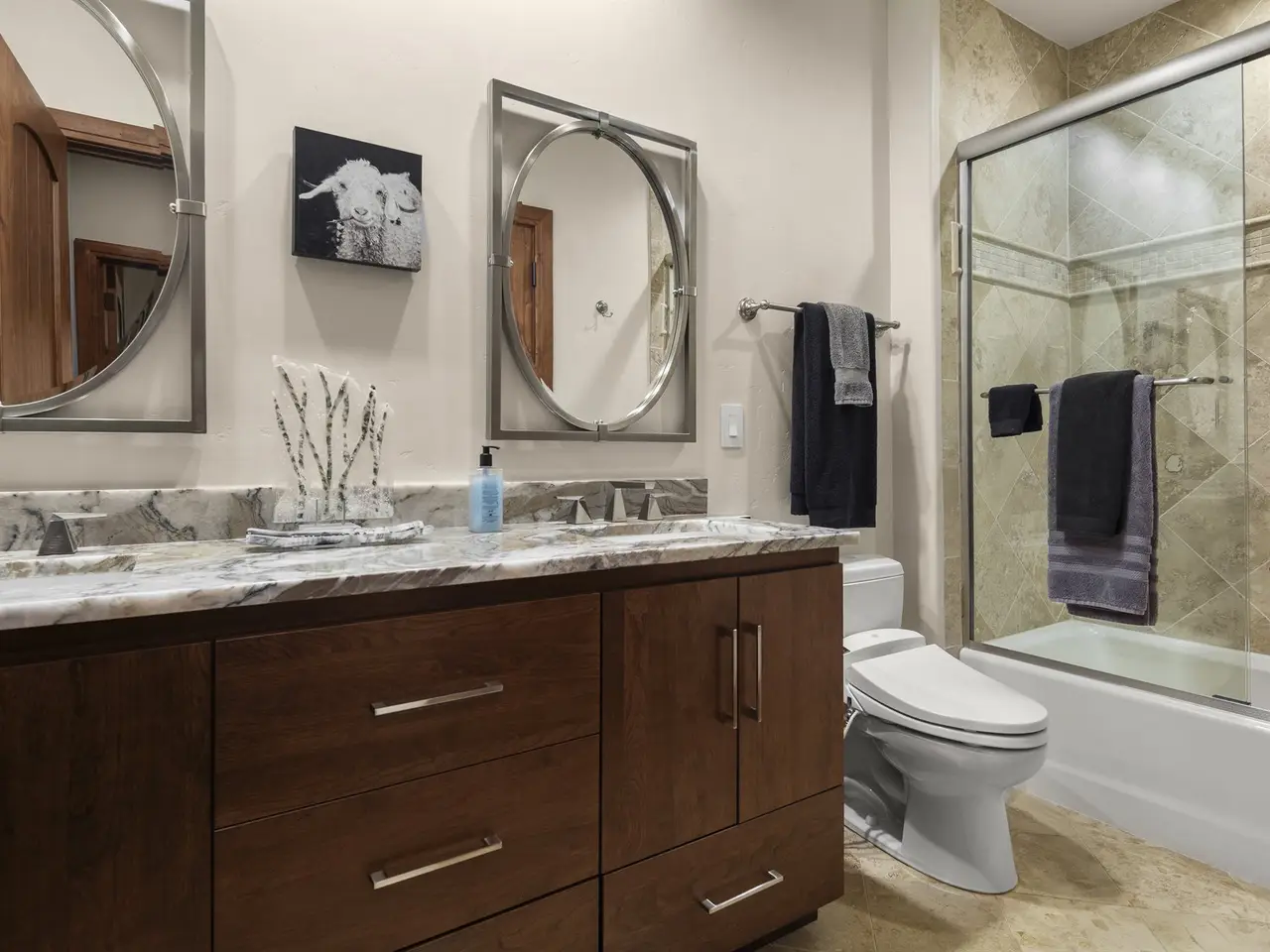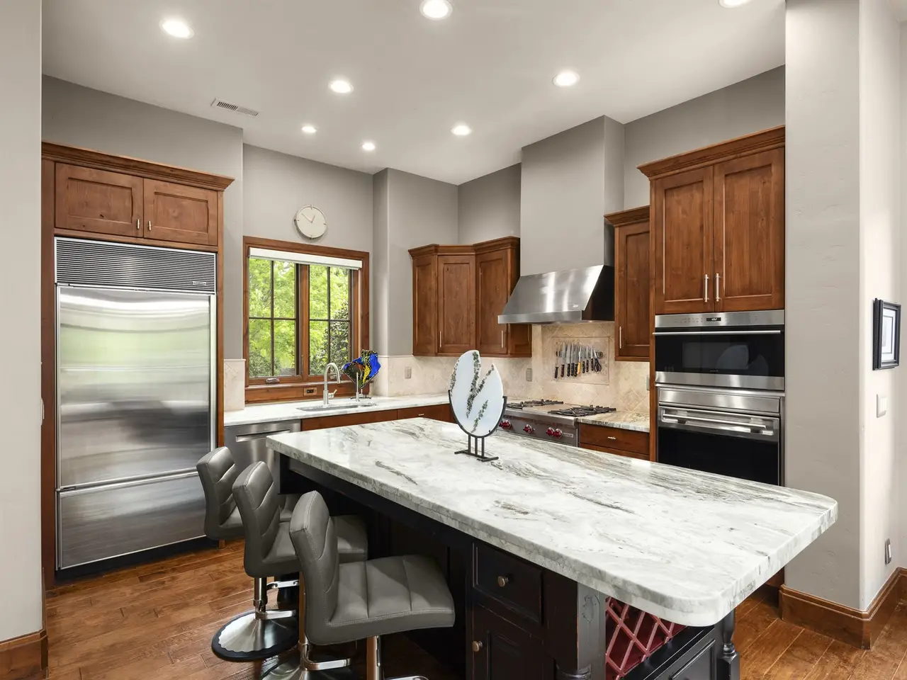 This beautifully updated stone townhome blends rustic charm with modern elegance and smart home features. Located just one minute from the gates and close to the Clubhouse and the Jack Nicklaus Signature Golf Course and tavern grill, it offers serene views of green space, water features, and mountains. The main level features open living, a gourmet kitchen with Wolf and Subzero appliances, and a spacious primary suite with vaulted ceilings and a recently renovated spa-style bath retreat! Enjoy year-round outdoor living with a covered porch, terrace, and remote-controlled screens. Downstairs offers two guest suites, a steam shower, and a private patio. Meticulously maintained with custom finishes throughout. New HVAC is being installed. This is mountain living at its finest and is being offered turn-key and fully furnished with the exception of a few personal items. See agent for the list of exceptions. Membership available.