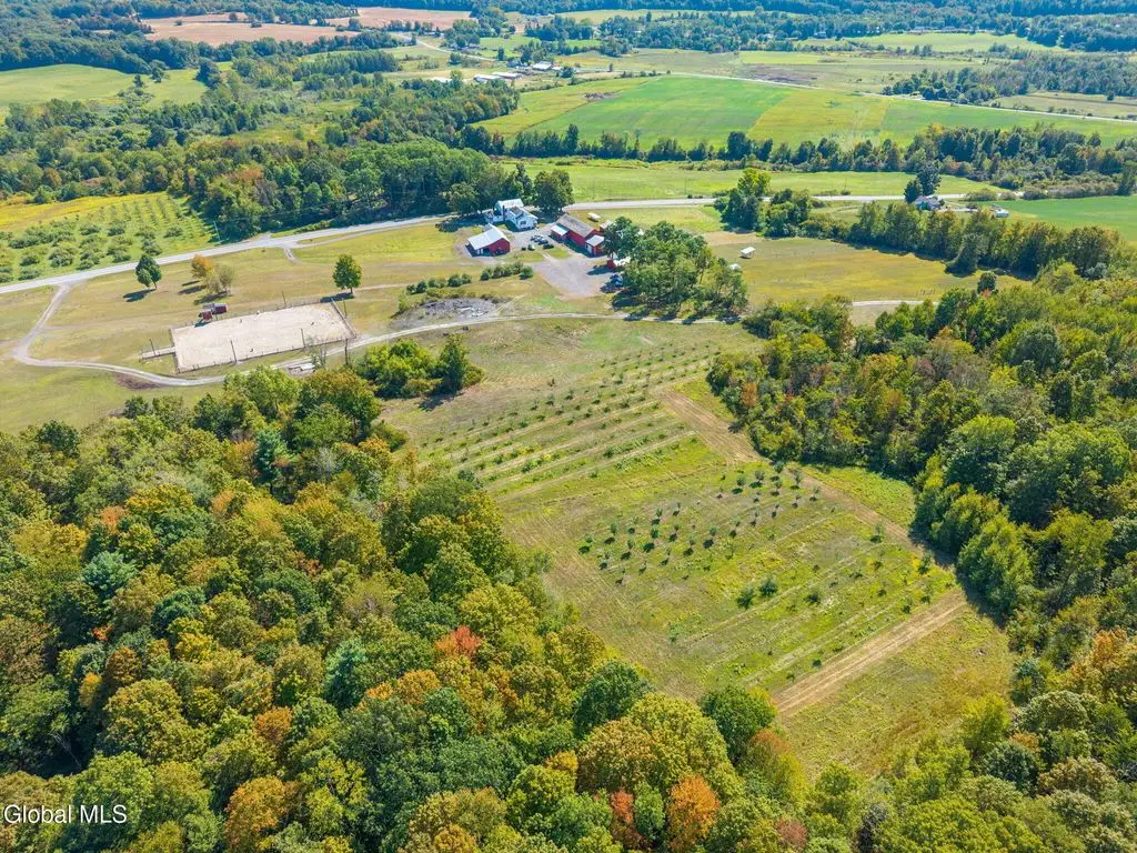 Farmhouse Estate, Equine Facility and Turnkey Apple Orchard. McWhorter's Orchard offers a rare and unique opportunity to own a fully operational orchard and agribusiness with a beautifully renovated farmhouse, horse facilities, and numerous outbuildings.Property Overview:Total Acreage: 155.10 acres, comprised of 148.10 acres spanning both sides of Route 40 and an additional 7-acre orchard parcel on Mahaffy Road, Argyle (SBL #s 166.-1-6 and 173.-2-10).Residence: Farmhouse: 3,531 sq. ft. furnished home, thoughtfully updated. Layout: 5 bedrooms, 2 full bathrooms, spacious office, walk-in closets.Features: New wrap-around porch with panoramic country views, mudroom entry, updated eat-in kitchen with new appliances, formal dining room, living room with woodstove.Additional Unit: One-bedroom, one-bath Apartment ideal for rental income or guest accommodations.Orchard & Equipment: A full list of equipment to operate the Orchard is included (see MLS documents). Financials available with signed Non-Disclosure Agreement. The Orchard is sprawled over 20 acres and there are approx. 120 trees/acre of mature and young apple trees.Potential Uses: Comfortable family home or charming country bed & breakfast. Equestrian Facilities: 9-stall barn with tack and feed room. Fenced grassy paddock with run-in sheds, water, and electricity.120' x 180' sand riding arena with drainage, announcer's booth, viewing stand, and snack bar.Agribusiness & Outbuildings:Retail store and apple cider donut shoppe.Multiple equipment storage buildings.Walk-in cooler for produce storage.Longstanding, reputable, and well-established operation with significant growth potential for expanded agritourism, retail, or special event use.