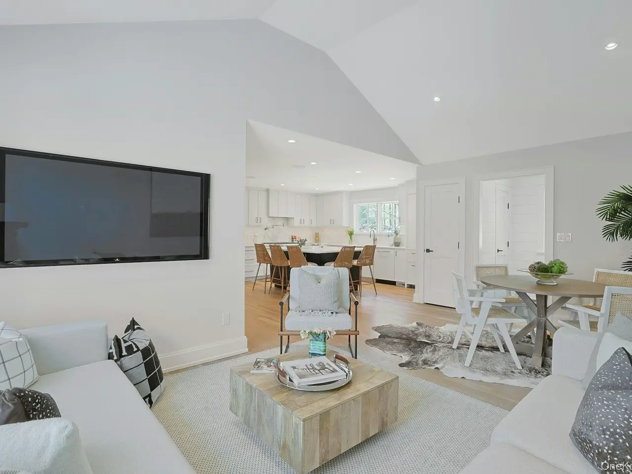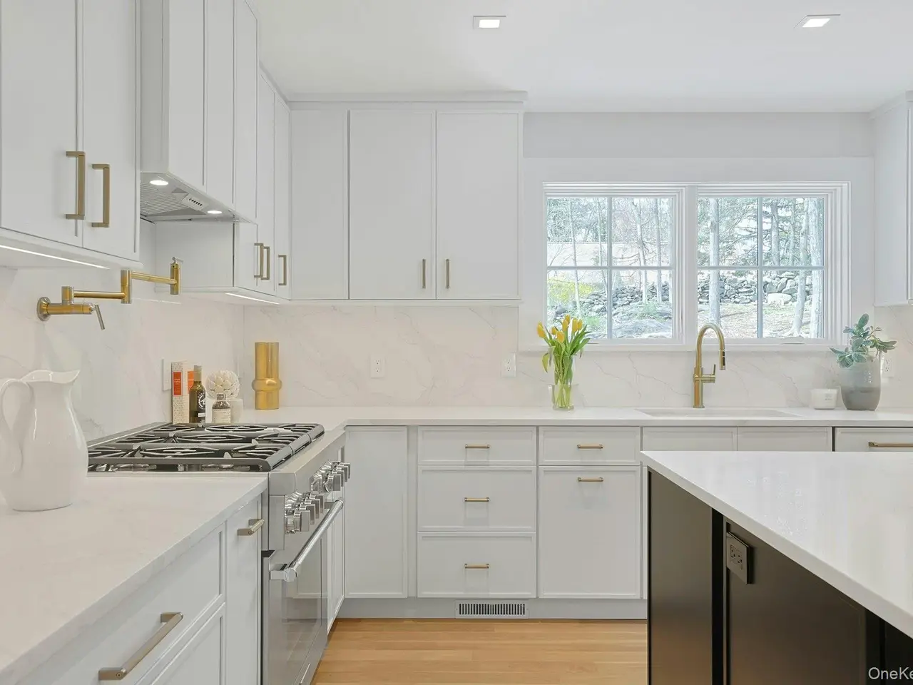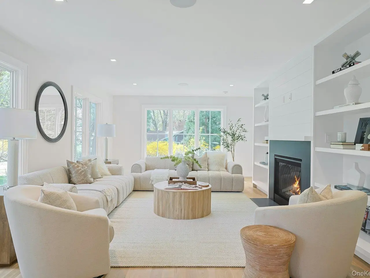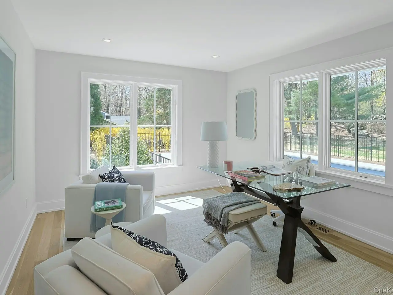 Elegant Colonial with Pool on Cul-de-Sac in Armonk (Byram Hills Schools) Located on a quiet cul-de-sac, this expanded and updated Colonial sits on a level, landscaped acre with a heated in-ground pool, stone patio, and fenced yard. Oversized windows fill the home with light, showcasing wide-plank wood floors and high-end finishes. The chef's kitchen features marble counters, custom cabinetry, and top appliances. The spacious primary suite includes a luxurious bath with radiant heat, soaking tub, and oversized shower. Lives like a 4-bedroom with a flexible first-floor guest room/office. Finished walk-out lower level (~950 sf) opens to the pool area. Approx. 3,800 sf above grade. Oversized 3-car garage, outfitted closets, and full-house Generac generator complete the package.