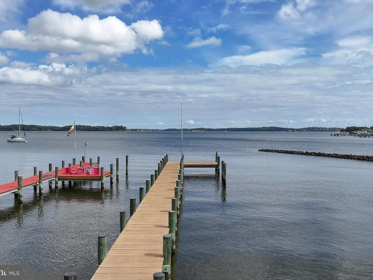 Sited on one of the most beautiful stretches of the Magothy River, this coastal style home offers sweeping water views and a seamless indoor/outdoor flow. The open floor plan features 10-foot ceilings and walls of glass to capture the ever-changing scenery. The waterside porch off the great room leads into a lovely, fenced backyard. Mean low water at the private pier is 3 feet, and waterfront restaurants are just a short boat ride away. The main level boasts a spacious waterside great room that flows seamlessly onto the full-width covered porch - it's an incredible setting for entertaining or relaxing by the water. The wood-burning fireplace provides the perfect component for a cozy evening in the winter months. The floorplan graciously opens the living spaces into the chef's kitchen, with top-of-the-line appliances and lots of natural light. The dining room, with new chandelier, is perfectly positioned for elevating everyday meals. A dedicated main-level office provides ideal work-from-home flexibility. Upstairs, the primary suite spans the entire waterside with panoramic views of the Magothy River and a separate sitting area. It has an ensuite bath with soaking tub, dual sink vanity and oversized shower. There are also two walk-in closets to help with clothing organization. There's a second bedroom with ensuite bathroom and walk-in closet. Two more bedrooms share a hall bath. Each of the additional bedrooms also enjoys water views, either of Spriggs Pond or the Magothy, creating a consistent connection to the surrounding landscape. Happily, the convenient laundry room is on this level. An in-law suite, located above the two-car garage, offers friends or family a private suite with bathroom, bedroom, and kitchenette. The home was designed with low maintenance materials, and the pier was recently rebuilt. Enjoy tremendous views while sitting on your dock as well as from nearly every room in this stunning waterfront home in the Broadneck school district.