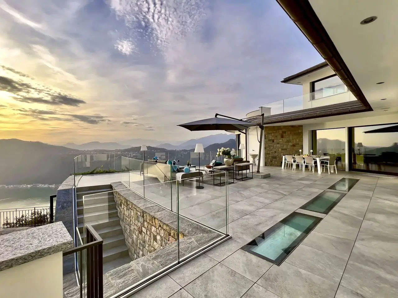 • Secluded location without neighbors • Panoramic views over Lake Lugano, up to Mont Blanc • Superb home automation & highest quality equipment • 20 minutes from Lugano, 25 minutes from Chiasso/Italy