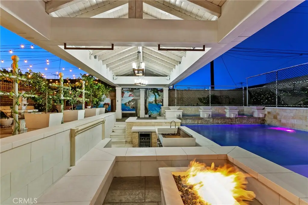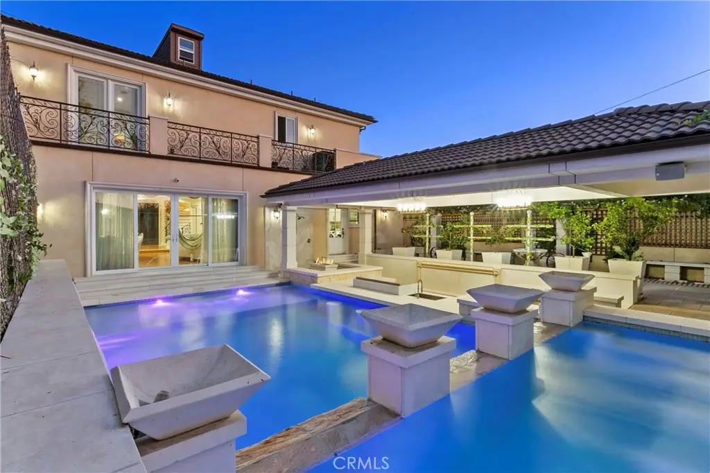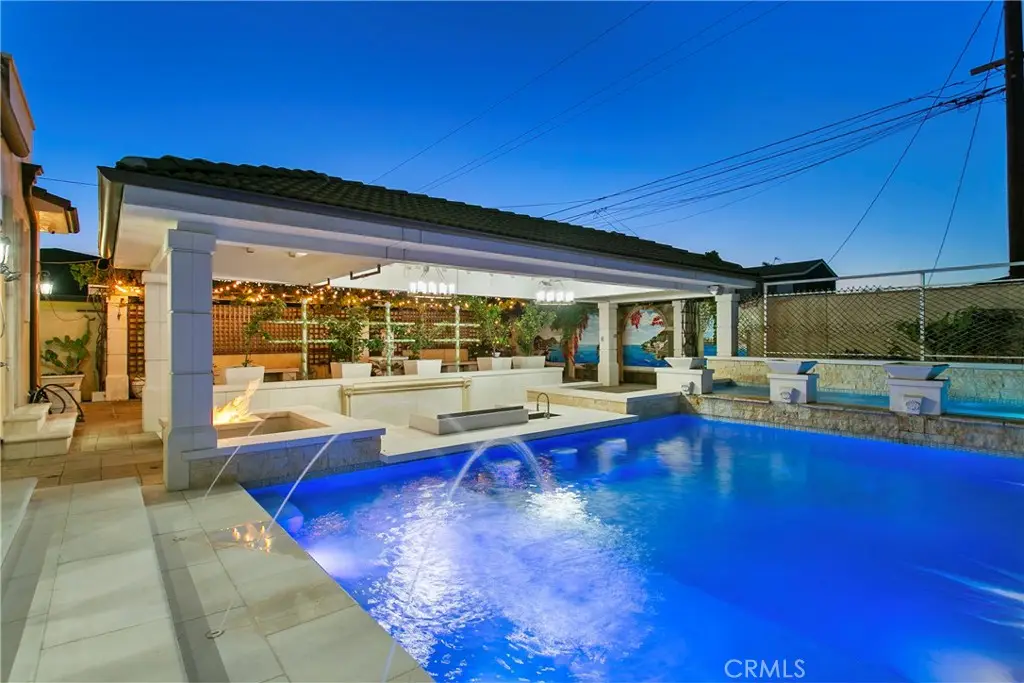 Stunning Mediterranean-Style Luxury Smart Home, Custom Built by Loving Father for Family. This extraordinary custom-built home blends top-tier craftsmanship with unparalleled comfort, style, and functionality, offering a fully integrated Smart Home experience and every amenity imaginable for modern luxury living. Every inch of this home was built with meticulous care and loving devotion. Inside, you'll find solid-core 8 ft tall wood doors, dual-pane fiberglass windows, high-end wood & stone flooring, coffered 10 ft tall ceilings, custom-built crown moldings, golden accents, and an intercom system throughout rooms. In Living Room built into wall is Custom See-Through Salt Water Fish Tank with Exotic fish! Upon entering is wonderful Art Wall depicting landscape and concrete branch design with molded flowers-- A Delightful Artistic Touch. All Bedrooms are Master Bedrooms, featuring en-suite baths, free standing tubs in showers, wet room, Crema Merfil bathroom counters, decorative soffits, walk-in closets, chandeliers, LED remote controlled ceiling lights, bluetooth speakers, and casement double-pane windows with shutter blinds. Upstairs Master Suite features two walk-in closets, gas fireplace, jacuzzi tub, balcony overlooking Oasis, and the Most Enchanting Custom-Design Ceiling Decor! Ceiling above Master Suite jacuzzi is beautiful Venetian Plaster with Golden Veins. Gorgeous Gourmet kitchen with expensive Quartz counters, high-end stove with pot filler and hood, beautiful built-in cabinets in Antique White, spice drawers, eating bar, and thick, durable glass sliding pocket doors overlooking the pool. Enjoy a lush salt-system pool and adjacent jacuuzzi all year long, with water-heating system and waterworks all controlled via phone-- including waterfall, water jets, and underwater LED color-changing lights. Beneath the cabana held up by custom murals is a built-in BBQ with mini fridge, installed bluetooth speakers, and Baja with built in bar stools. Elaborate Smart Home System nestled out of sight, yet easily accessible, manages all features of the home, which YOU can easily control via cell phone! 3 Car Garage includes RV hook ups and Electric Car Charger. A Variety of fruit trees are planted in large pots-- already giving fruit! Access to Bonus Room is in upstairs laundry room. And to wrap it all up, an Underground Lock Safe is nestled below 8 inches of concrete for secure, personal use. This House has it all. Truly, a One-of-a-Kind Home.