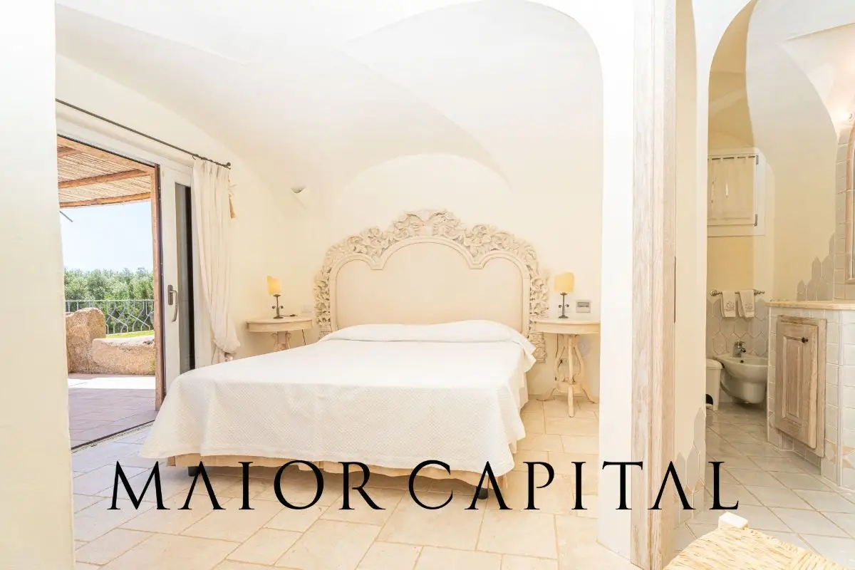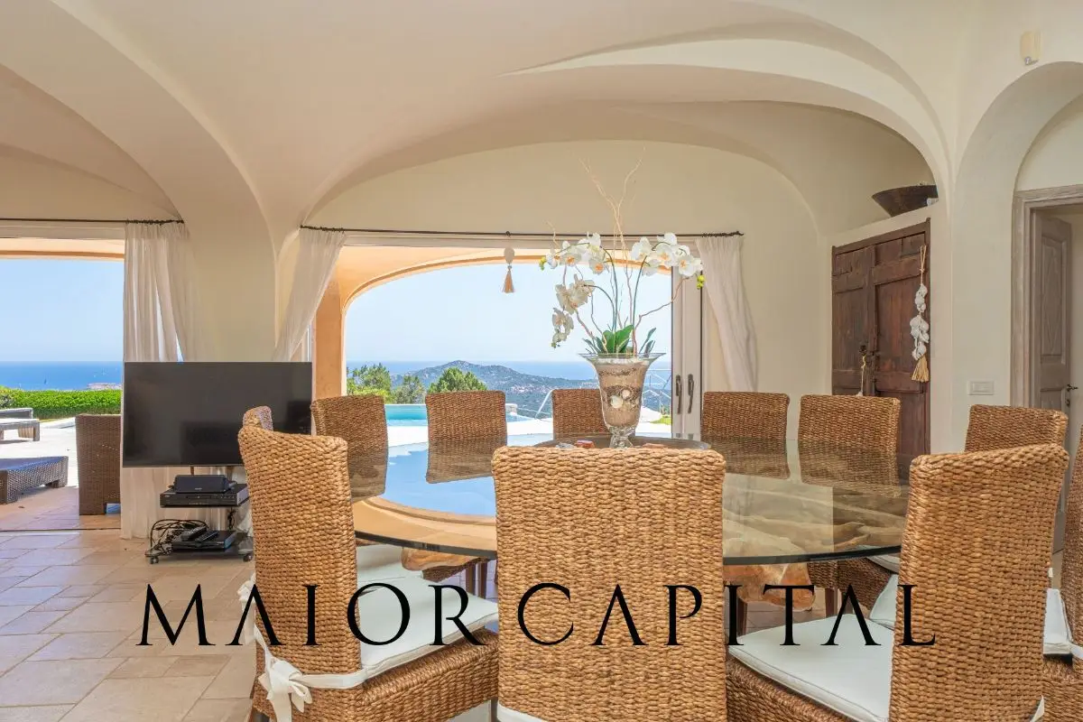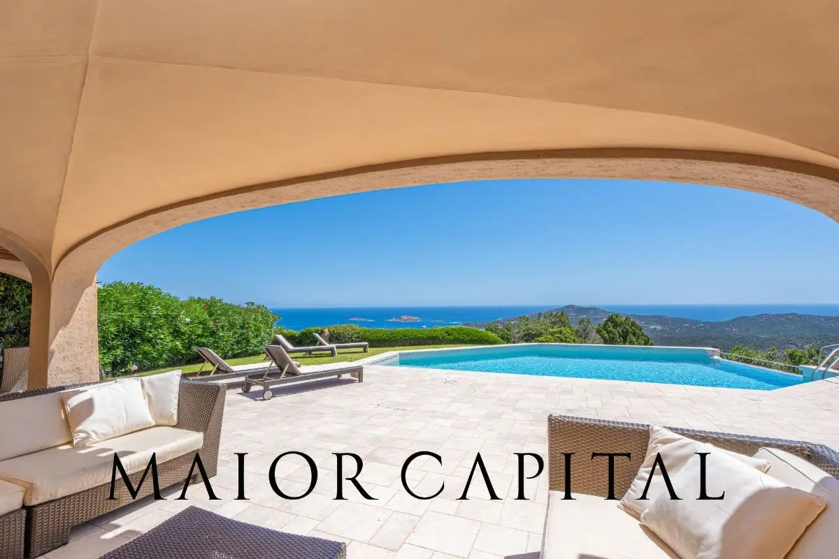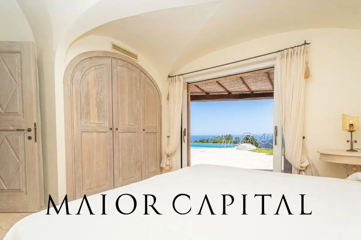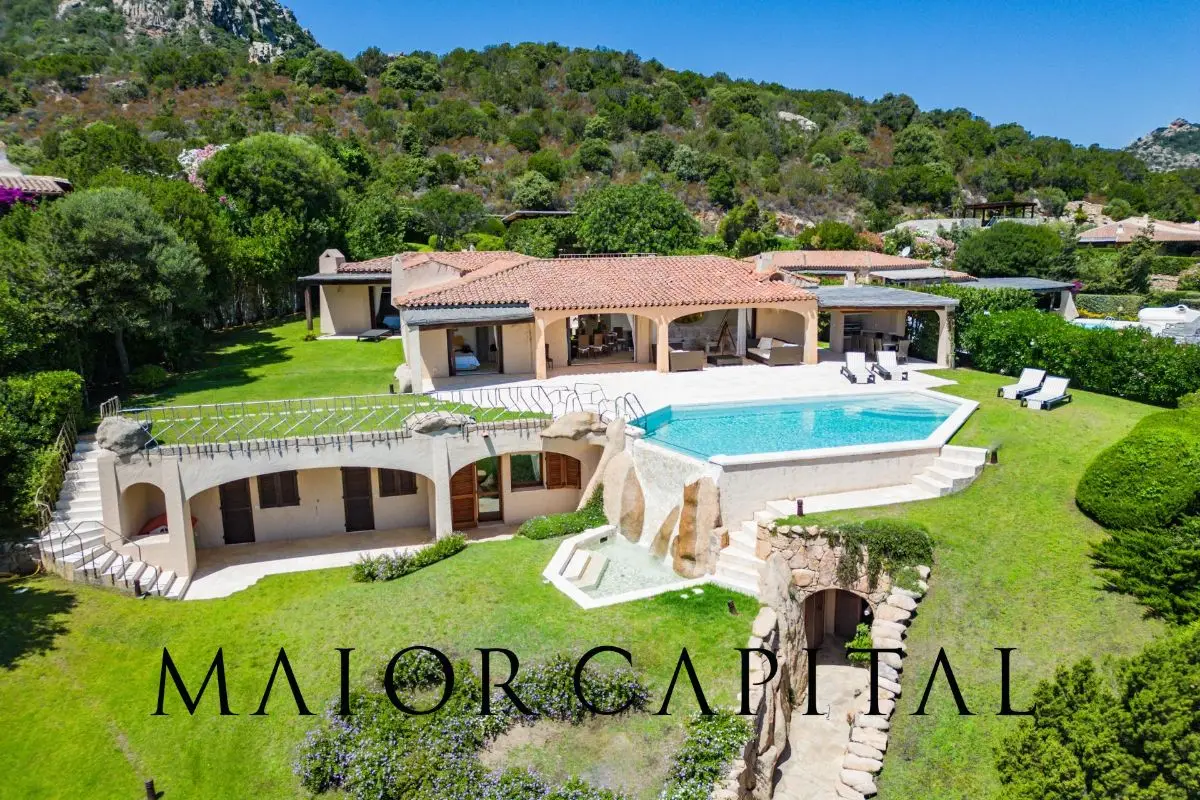 Perched on the hill of Pantogia, overlooking Pevero Bay, we are offering for sale a villa designed by architect Le Suisse, one of the leading figures who defined the unmistakable style of the Costa Smeralda™. The property offers panoramic sea views across the horizon, with breathtaking glimpses of the Nibani islands and, in the distance, the silhouettes of Tavolara and Capo Figari. Refined design and bright rooms with sea views Spread over two levels, the villa offers airy spaces and fine finishes. On the ground floor, there is a large and bright living room with sea views, featuring large sliding glass doors that open onto the panoramic terrace, ideal for enjoying the light and sea breeze. The interiors are characterised by soft, organic lines, barrel vaults and niches inspired by nature, distinctive elements of the Sardinian architectural style. On the same level, there are three double bedrooms, each with an en-suite bathroom and handcrafted details that reflect Sardinian tradition. Independent spaces, comfort and well-being The lower floor has three additional independent bedrooms, all with private bathrooms and direct access to the garden and pool, as well as a staff room with its own bathroom. The property is completed by a private cinema room and a newly built gym, designed to ensure relaxation and entertainment in total privacy. Mediterranean garden and swimming pool with panoramic waterfall The exteriors offer an experience of authentic well-being. With covered lounge areas, a barbecue area and an outdoor dining area, the villa invites you to enjoy the climate to the full in every season. The terraced Mediterranean garden embraces the architecture in perfect harmony with the natural lines of the hill, creating an oasis of elegance and privacy. The heated swimming pool with a scenic waterfall flows into a lower pool ideal for children, framed by granite monoliths that reflect the essence of the Gallura landscape. Privacy and strategic location near Porto Cervo The panoramic villa guarantees absolute privacy and maximum tranquillity, while being just a few minutes from the centre of Porto Cervo, the marina, luxury boutiques and the most renowned gourmet restaurants on the Costa Smeralda™. A unique property, perfect for those looking for a prestigious villa in Pantogia, with unrivalled sea views and designed by one of the most important architects on the Costa Smeralda™. The villa is composed as follows: Ground floor * Large living room with retractable glass doors overlooking the sea * Separate kitchen * Master bedroom with en-suite bathroom and access to the pool * Two further double bedrooms with en-suite bathrooms Semi-basement * Three bedrooms with independent access and en-suite bathrooms * Staff accommodation Features: * Air conditioning * Fireplace * Radiators * Covered verandas * Private garden of approximately 1,700 sqm * Heated swimming pool * Waterfall on granite rocks with children's pool * BBQ area * Sun terrace * Two covered parking spaces Why choose this villa: #1 Exclusive location in Pantogia, just a few minutes from Porto Cervo #2 180° panoramic sea view over Pevero Bay and the Nibani islands #3 Architectural design by Arch. Le Suisse, icon of the Costa Smeralda™ #4 Absolute privacy surrounded by the greenery of the Mediterranean garden #5 Heated swimming pool with panoramic waterfall and equipped relaxation area #6 Only 25 km from the port and Olbia Costa Smeralda™ international airport