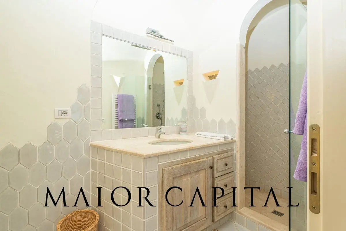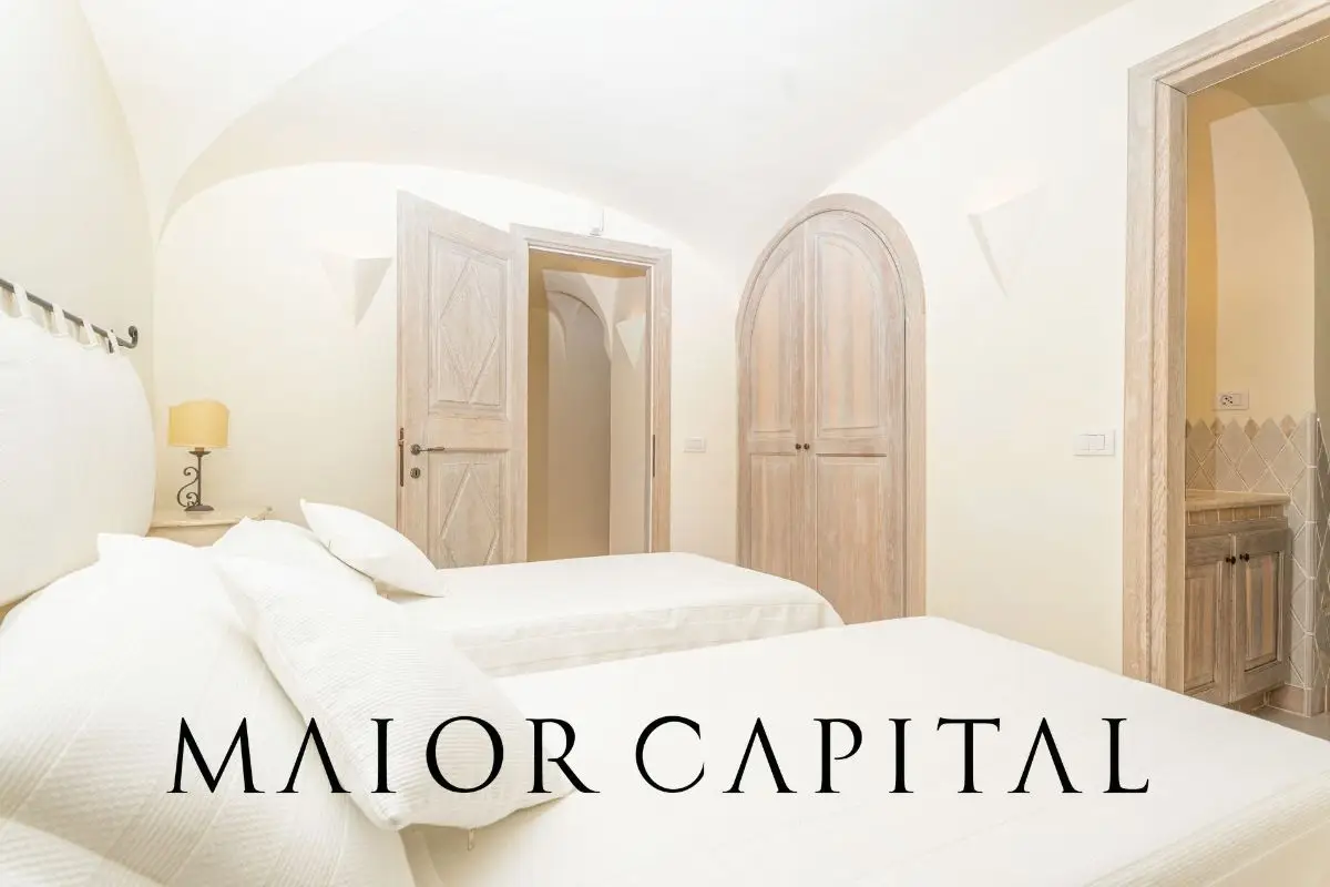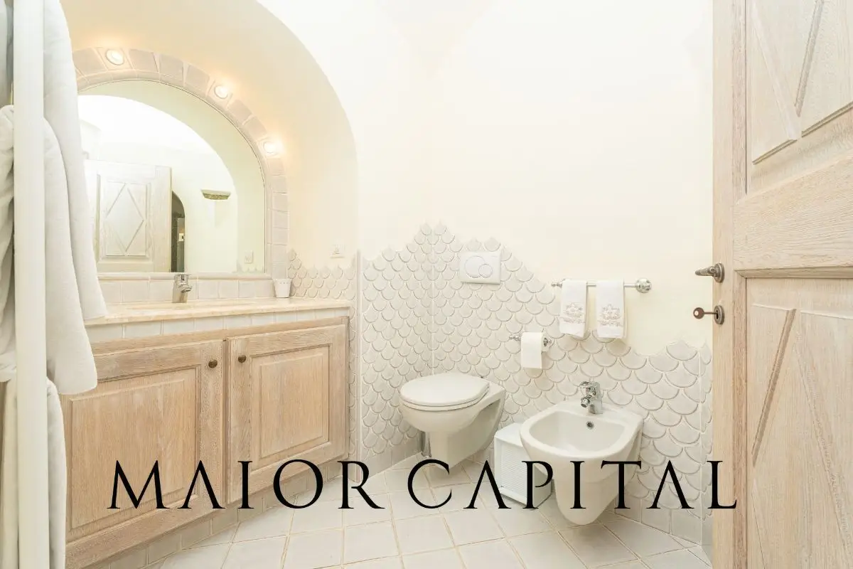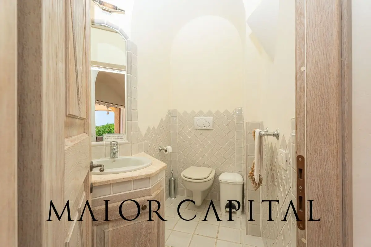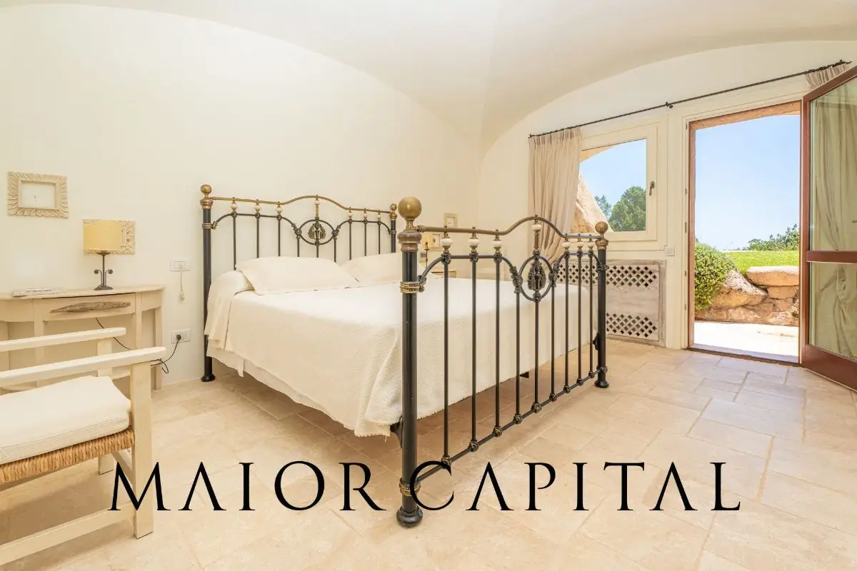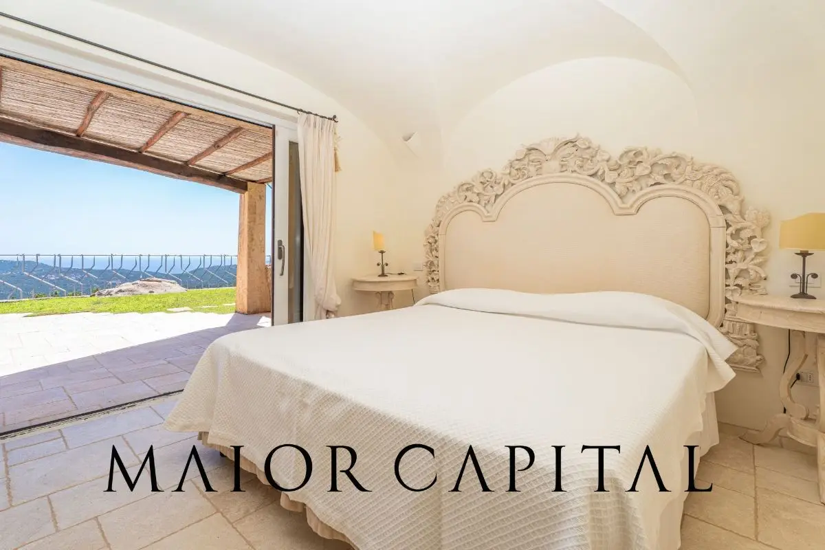 Perched on the hill of Pantogia, overlooking Pevero Bay, we are offering for sale a villa designed by architect Le Suisse, one of the leading figures who defined the unmistakable style of the Costa Smeralda™. The property offers panoramic sea views across the horizon, with breathtaking glimpses of the Nibani islands and, in the distance, the silhouettes of Tavolara and Capo Figari. Refined design and bright rooms with sea views Spread over two levels, the villa offers airy spaces and fine finishes. On the ground floor, there is a large and bright living room with sea views, featuring large sliding glass doors that open onto the panoramic terrace, ideal for enjoying the light and sea breeze. The interiors are characterised by soft, organic lines, barrel vaults and niches inspired by nature, distinctive elements of the Sardinian architectural style. On the same level, there are three double bedrooms, each with an en-suite bathroom and handcrafted details that reflect Sardinian tradition. Independent spaces, comfort and well-being The lower floor has three additional independent bedrooms, all with private bathrooms and direct access to the garden and pool, as well as a staff room with its own bathroom. The property is completed by a private cinema room and a newly built gym, designed to ensure relaxation and entertainment in total privacy. Mediterranean garden and swimming pool with panoramic waterfall The exteriors offer an experience of authentic well-being. With covered lounge areas, a barbecue area and an outdoor dining area, the villa invites you to enjoy the climate to the full in every season. The terraced Mediterranean garden embraces the architecture in perfect harmony with the natural lines of the hill, creating an oasis of elegance and privacy. The heated swimming pool with a scenic waterfall flows into a lower pool ideal for children, framed by granite monoliths that reflect the essence of the Gallura landscape. Privacy and strategic location near Porto Cervo The panoramic villa guarantees absolute privacy and maximum tranquillity, while being just a few minutes from the centre of Porto Cervo, the marina, luxury boutiques and the most renowned gourmet restaurants on the Costa Smeralda™. A unique property, perfect for those looking for a prestigious villa in Pantogia, with unrivalled sea views and designed by one of the most important architects on the Costa Smeralda™. The villa is composed as follows: Ground floor * Large living room with retractable glass doors overlooking the sea * Separate kitchen * Master bedroom with en-suite bathroom and access to the pool * Two further double bedrooms with en-suite bathrooms Semi-basement * Three bedrooms with independent access and en-suite bathrooms * Staff accommodation Features: * Air conditioning * Fireplace * Radiators * Covered verandas * Private garden of approximately 1,700 sqm * Heated swimming pool * Waterfall on granite rocks with children's pool * BBQ area * Sun terrace * Two covered parking spaces Why choose this villa: #1 Exclusive location in Pantogia, just a few minutes from Porto Cervo #2 180° panoramic sea view over Pevero Bay and the Nibani islands #3 Architectural design by Arch. Le Suisse, icon of the Costa Smeralda™ #4 Absolute privacy surrounded by the greenery of the Mediterranean garden #5 Heated swimming pool with panoramic waterfall and equipped relaxation area #6 Only 25 km from the port and Olbia Costa Smeralda™ international airport