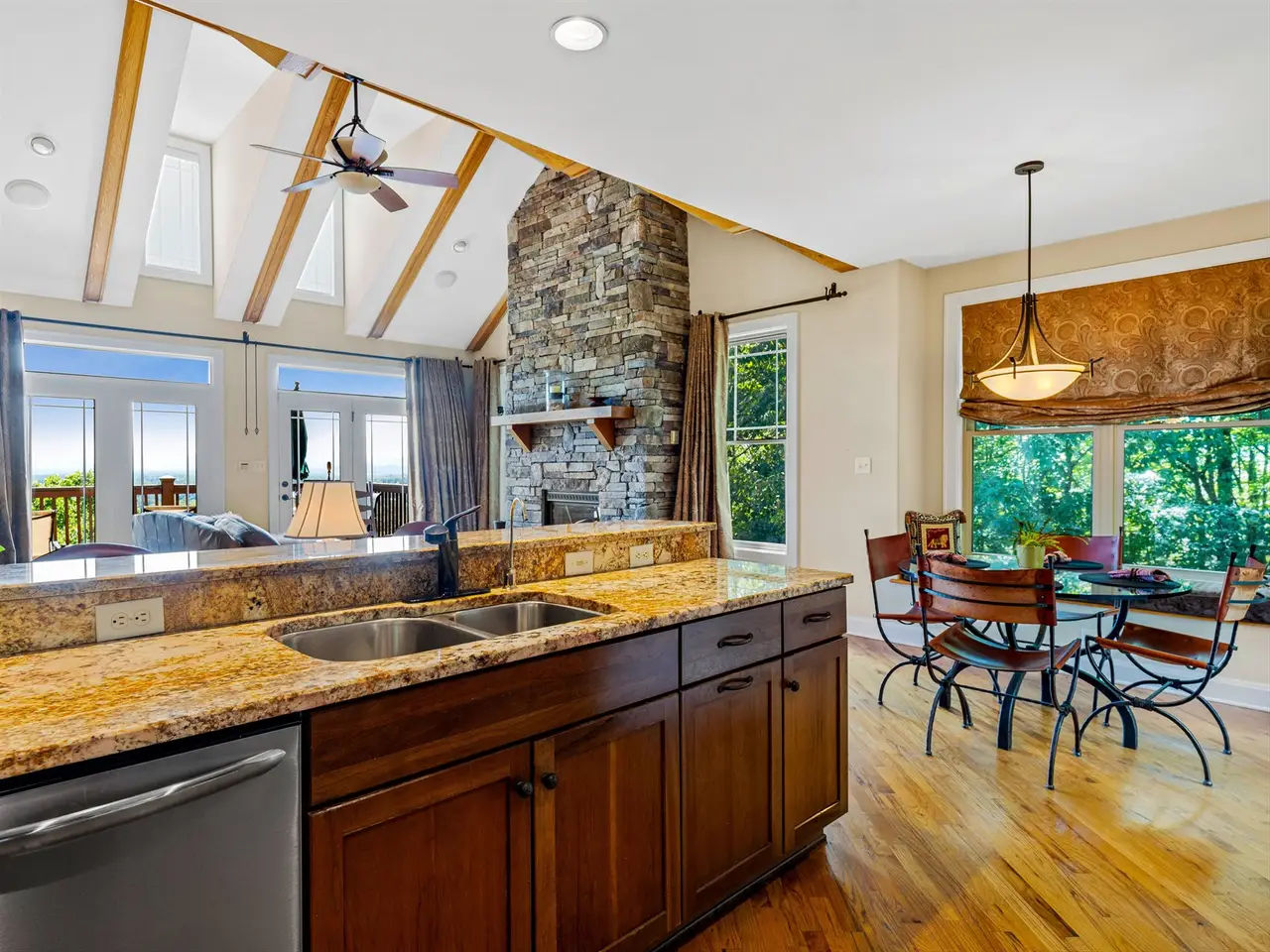 The views from this beautiful home will take your breath away. Sit on one of the 3 decks & enjoy majestic mountain views. The Biltmore House is in clear view! In the winter, you can see downtown Asheville. You will notice the exceptional quality & attention to detail throughout this home. Walk into a large foyer & vestibule, enjoy the large, designer kitchen, gather in the great room with soaring ceilings & stone fireplace & enjoy family gatherings in the dining room. The primary bedroom has a wall of windows so you wake up to the sun rising over the mountains. There are two guest bedrooms, a bath & another deck on the upper level. The basement level has another stone fireplace, family room, office/4th bedroom, laundry room, lots of storage & another large deck to enjoy outdoor living. The 3.26 acre lot is wooded and serene.