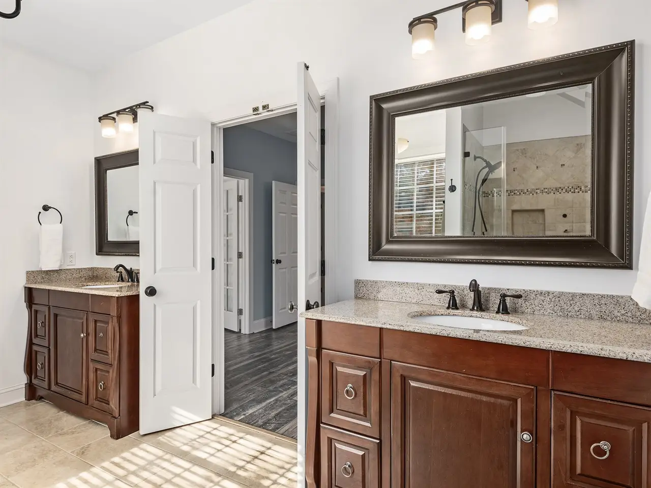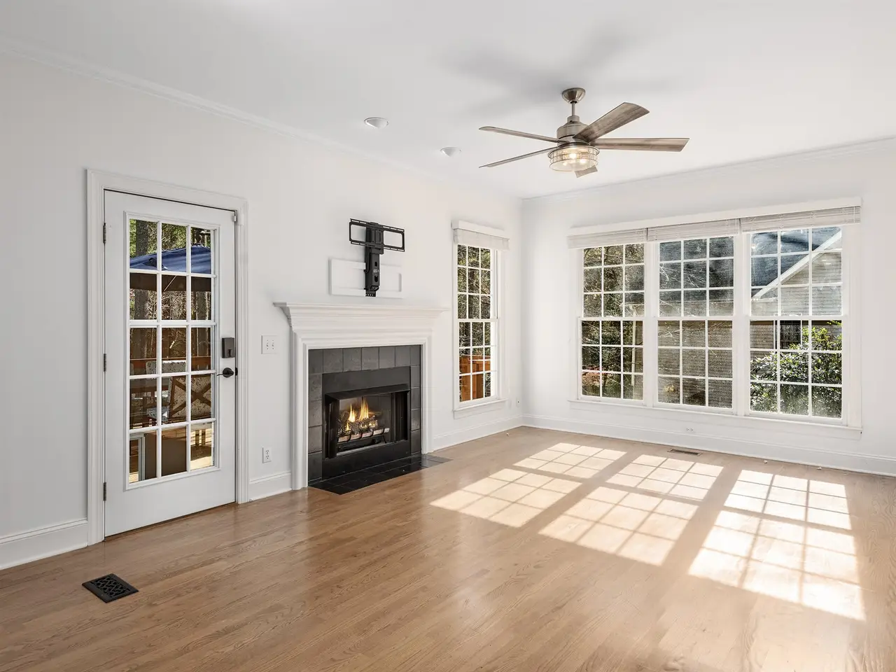 Simple pleasures await in this impressive Biltmore Park home! Whipping up delicious meals in the open kitchen, gathering for the holidays in the dining room or simply relaxing in the living room or cozy family room w/ gas fireplace. Hardwood floors and LVP throughout. Laundry room w/ sink. Finished walk-out basement w/ fam room, built-ins, media room and full bath. Step outside and you are greeted by a delightful open deck w/ cable railing overlooking the level fenced yard with direct access to the picturesque greenway that leads to TC Roberson K-12 schools and the ever popular community pool/clubhouse/playground. Nestled in the heart of south Asheville's premier neighborhood , this home offers four spacious bedrooms including a private owner's retreat with tiled bath & adjoining office/den. New roof ('15), furnaces ('18 & '22), gas stove & microwave ('22), water heater ('22), EV charger & upgraded fixtures make this a rare opportunity to move right in!