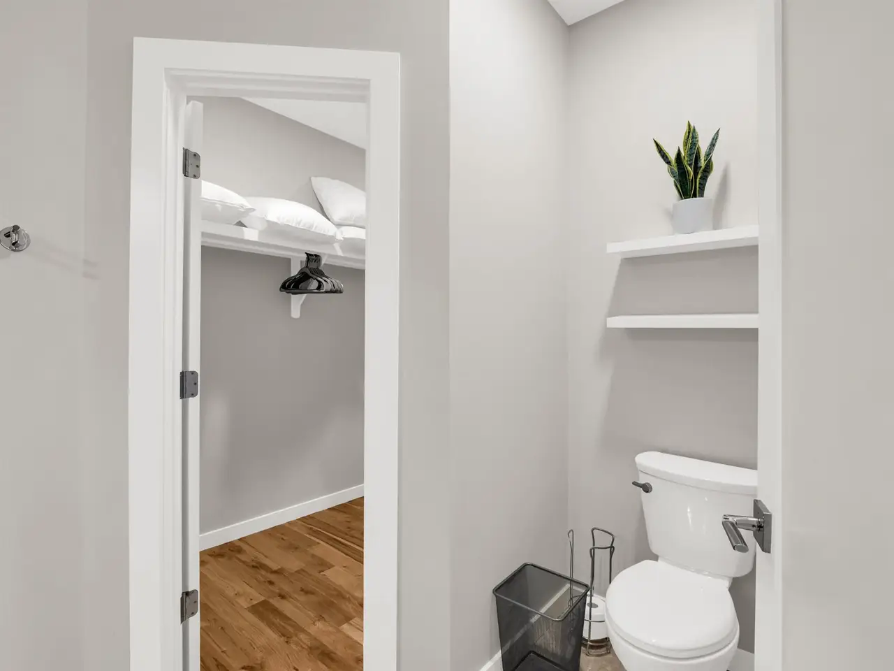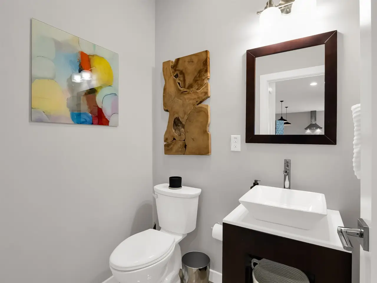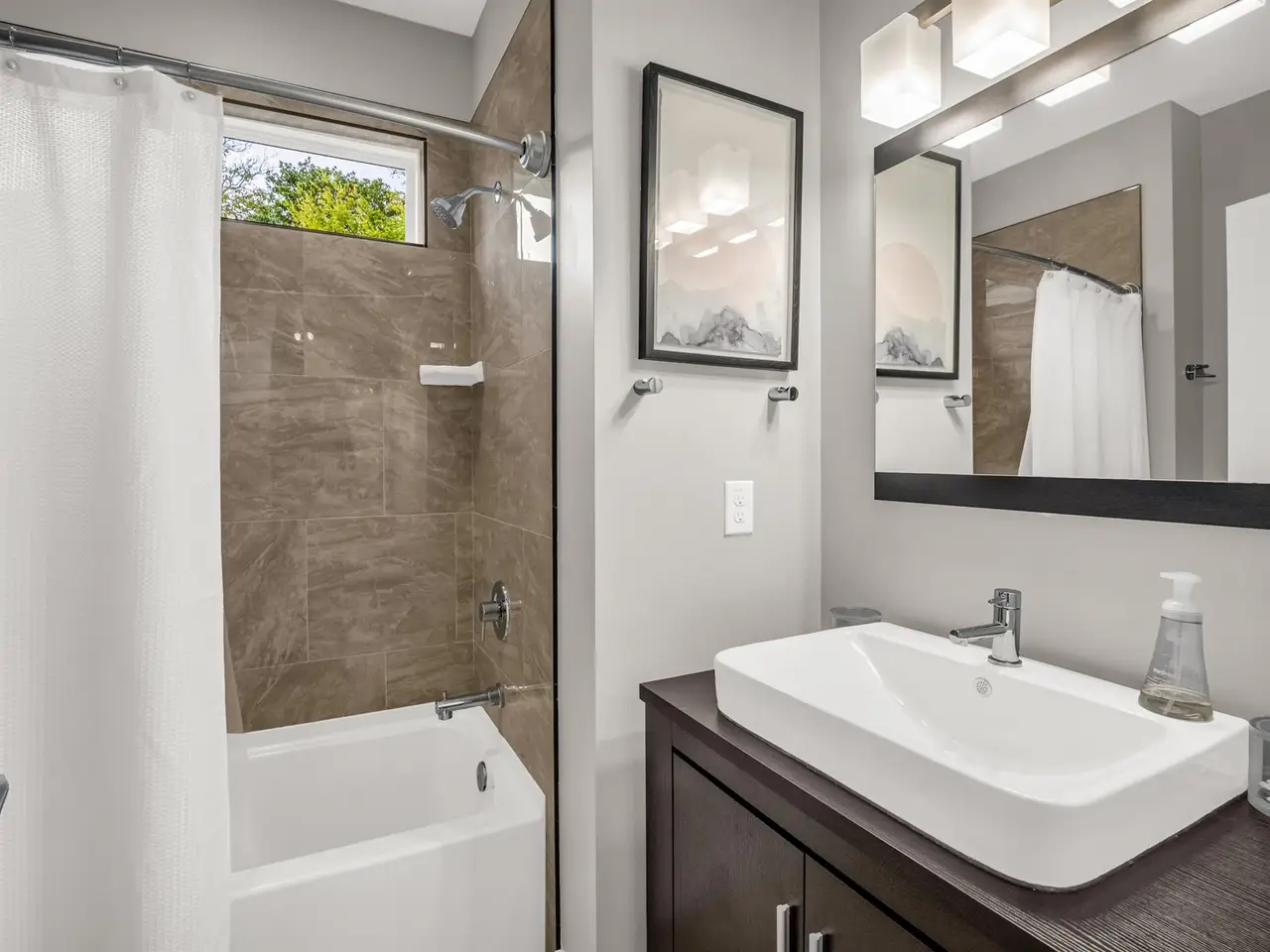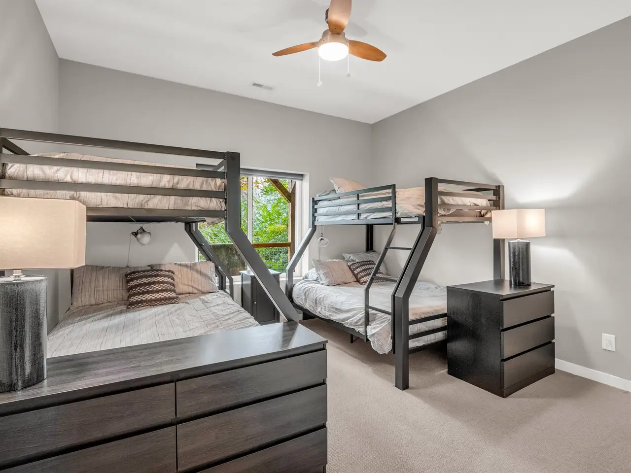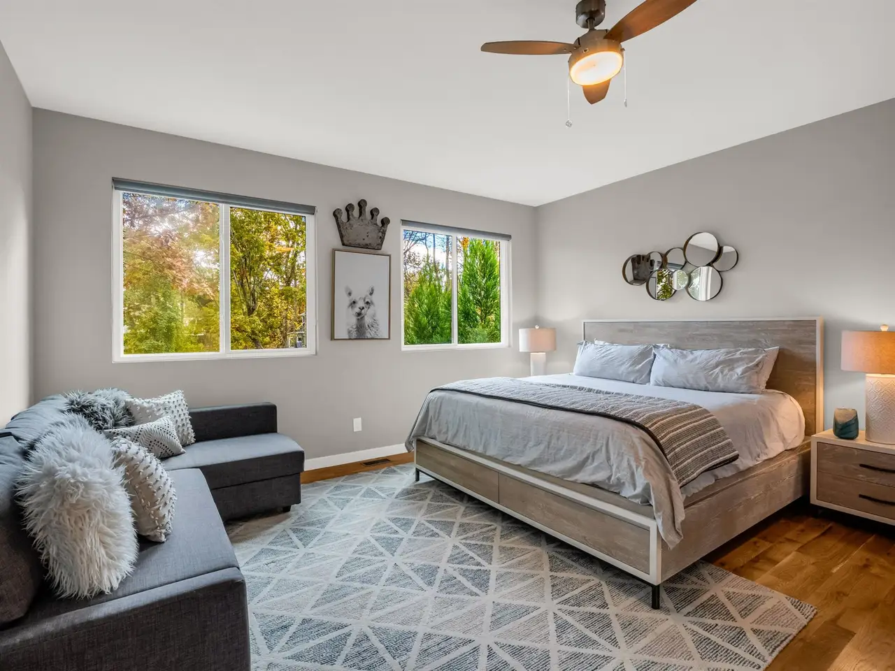 Incredible modern home in Asheville's River Arts District! Enjoy the best of Asheville living just a short walk to New Belgium Brewing! This is an ideal home for year-round living for buyers wanting minimal maintenance and yard upkeep. It's also perfect as a second/vacation home, as it has 3 primary suites (including one on the main level), making it just right for larger gatherings or extended family! The open floorplan and main level deck is perfect for entertaining or just enjoying a peaceful evening at home. From the living room, dining area, and decks, you can see the downtown Asheville skyline and the mountains beyond. The upper level has 2 massive primary suites with walk-in closets and beautiful bathrooms, as well as an office nook. The lower level has 2 more bedrooms, a bonus/TV room, full bath, and an unfinished space for storage (great for bikes, kayaks, and seasonal decor). The lower deck offers a second outdoor living area, and also has a hot tub! This quality built home has a Superior Wall precast concrete foundation, upgraded finishes throughout, and a location that can't be beat! Some furnishings negotiable.