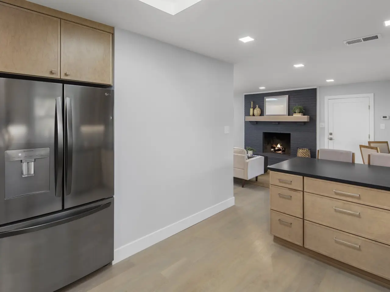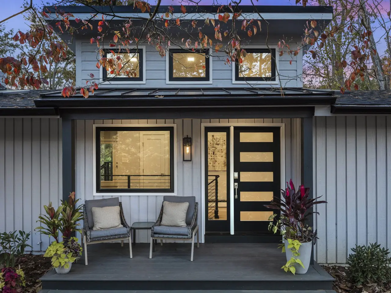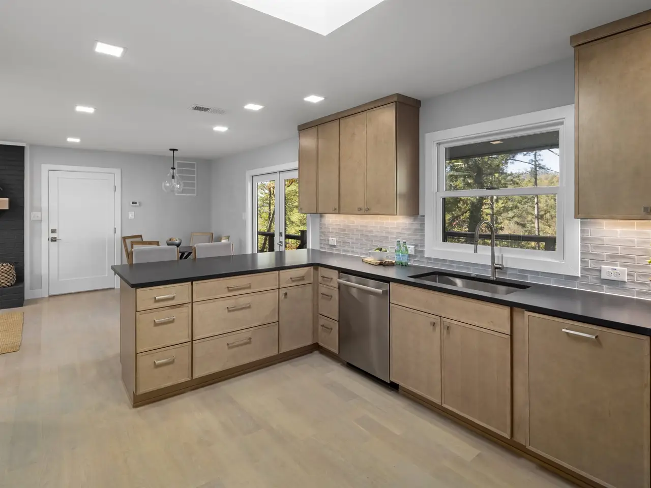 Modern luxury awaits in this meticulously renovated home nestled in peaceful Kimberly Woods. Originally built in the 1960s, this North Asheville gem has been completely reimagined to offer the sophistication and comfort of today's finest homes - at a value you won't find anywhere else in the area. Behind a sleek five-panel mid-century door, a sun-washed foyer with soaring ceilings and skylights hint at the contemporary style awaiting further inside. To your right, a formal sitting and dining room offers an elegant setting for gatherings. The sleek kitchen is a showstopper, featuring brand-new cabinetry, Corian countertops, stainless steel appliances, and a charming breakfast nook that's perfect for morning coffee or casual meals. Rounding out the main level, a comfortable living room centers around an original brick, wood-burning fireplace, creating the perfect place to unwind with a good book. Retreat to the terrace level and discover a true sense of privacy and calm. Here, the primary suite impresses with a sophisticated ensuite, joined by two inviting guest rooms and a versatile den ideal for movie nights or creative pursuits. Enjoy the outdoors with a versatile outdoor living space, featuring dual-level decks with mountain views, a stone patio perfect for a fire pit, and a gently contoured yard enveloped by mature trees. Just minutes from downtown Asheville, this home skillfully balances quiet neighborhood charm with easy access to renowned restaurants and shopping.