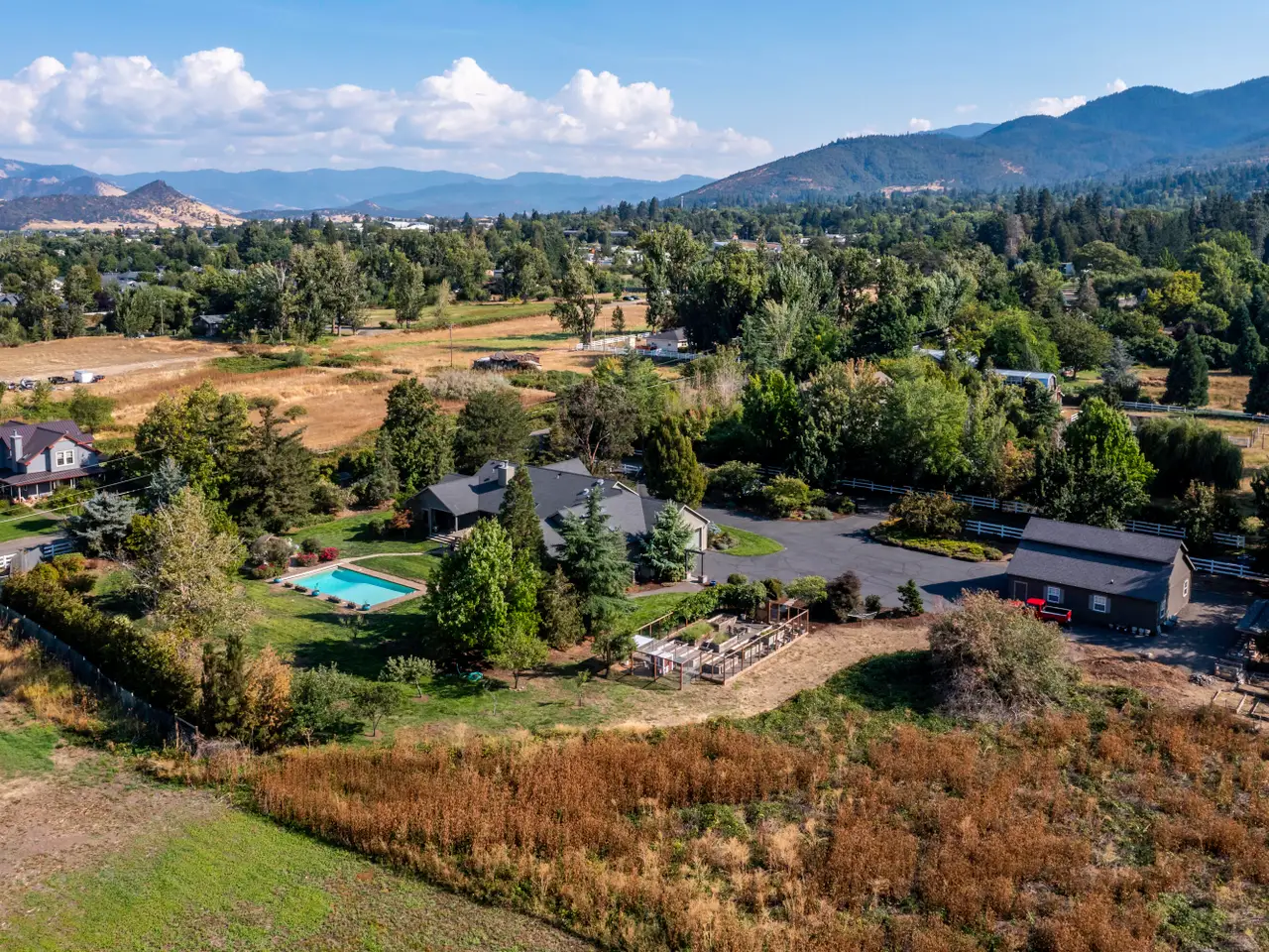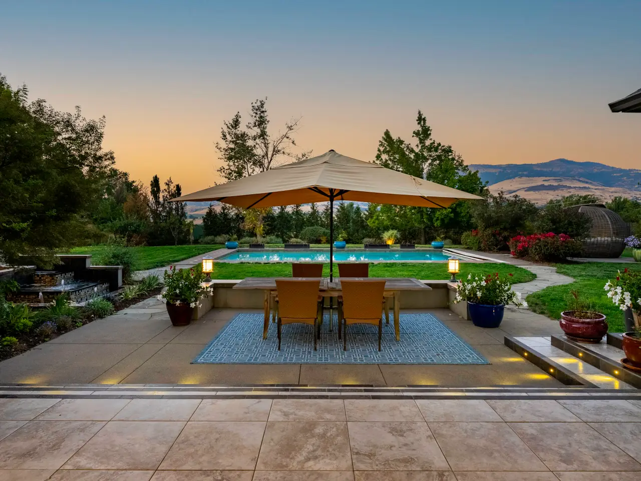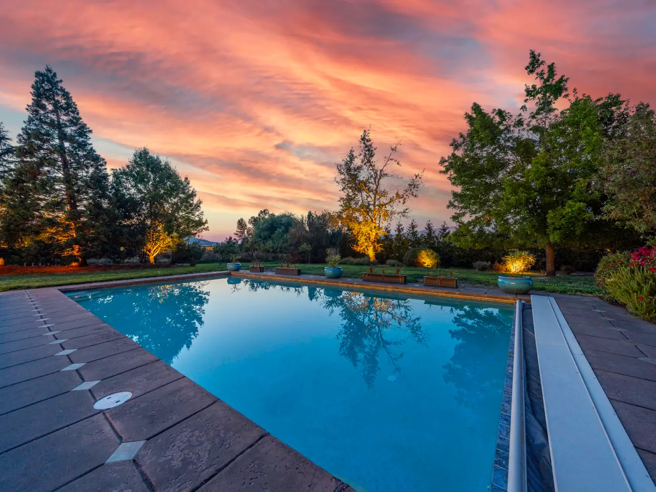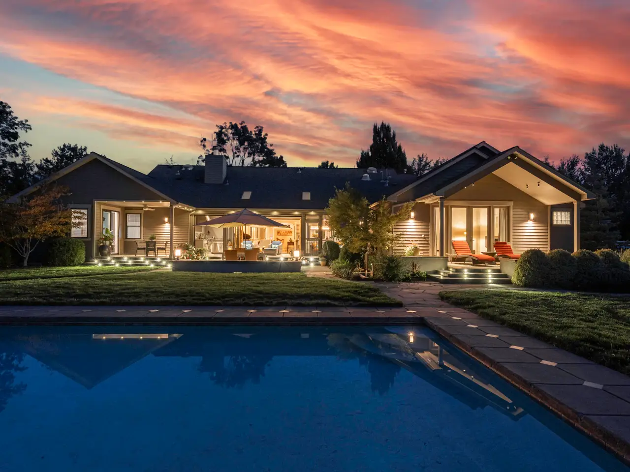 Rare single-level view home on private acreage in a desirable close-in neighborhood of high-end country estates. Abundant natural light and air flow with operable casement windows and NanaWall glass doors, exceptional outdoor living areas with custom lighting, remote-operated screens, heated in-ground saline pool, and cabana area with gas fireplace. Gourmet kitchen with walnut island and granite dining counter, stainless Wolf convection ovens, and six-burner Dakor gas cooktop. Temperature-controlled walk-in pantry and 600+ bottle wine cellar. Primary suite with spacious walk-in closet and full ensuite bath with double vanity, radiant-heated tile floor, and curbless shower. Media room or potential second primary with walk-in closet, full guest bath, guest bedroom with closets, office or third bedroom, laundry room, and attached two-car garage. Mature trees, ornamental plantings, water features, fenced organic raised beds, and barn with RV parking and half-bath. Inquire for details!