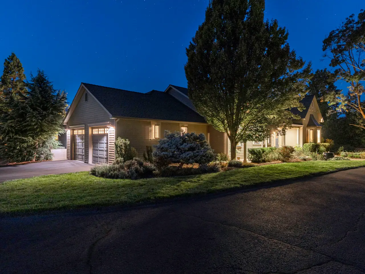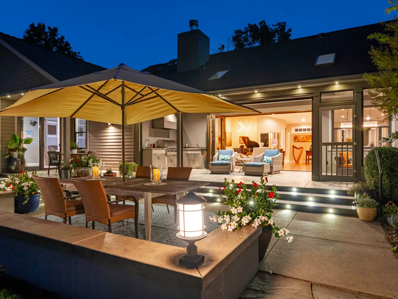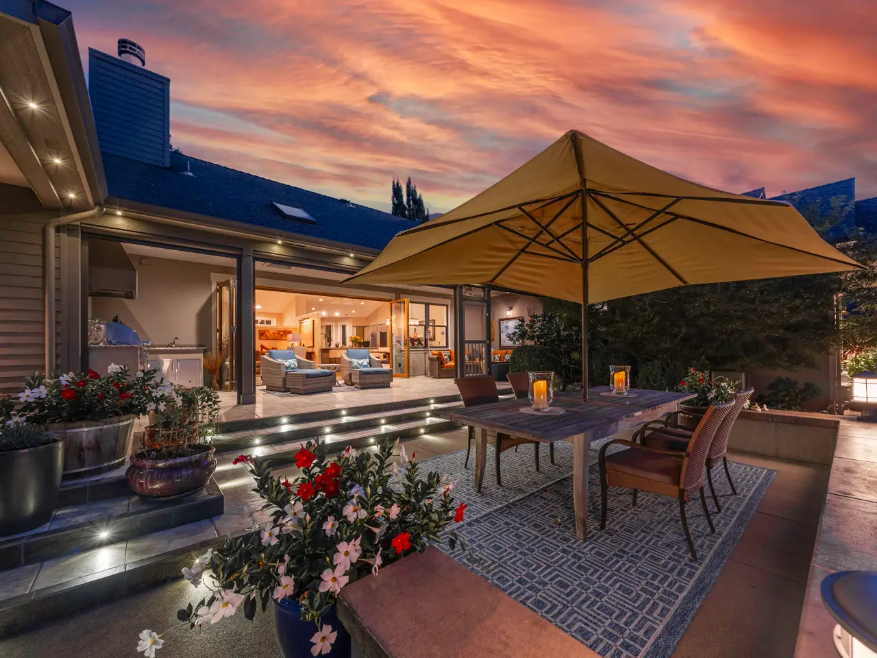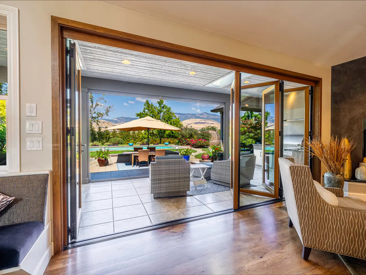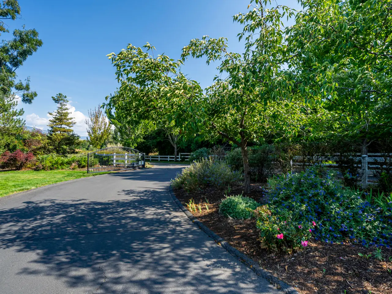 Rare single-level view home on private acreage in a desirable close-in neighborhood of high-end country estates. Abundant natural light and air flow with operable casement windows and NanaWall glass doors, exceptional outdoor living areas with custom lighting, remote-operated screens, heated in-ground saline pool, and cabana area with gas fireplace. Gourmet kitchen with walnut island and granite dining counter, stainless Wolf convection ovens, and six-burner Dakor gas cooktop. Temperature-controlled walk-in pantry and 600+ bottle wine cellar. Primary suite with spacious walk-in closet and full ensuite bath with double vanity, radiant-heated tile floor, and curbless shower. Media room or potential second primary with walk-in closet, full guest bath, guest bedroom with closets, office or third bedroom, laundry room, and attached two-car garage. Mature trees, ornamental plantings, water features, fenced organic raised beds, and barn with RV parking and half-bath. Inquire for details!