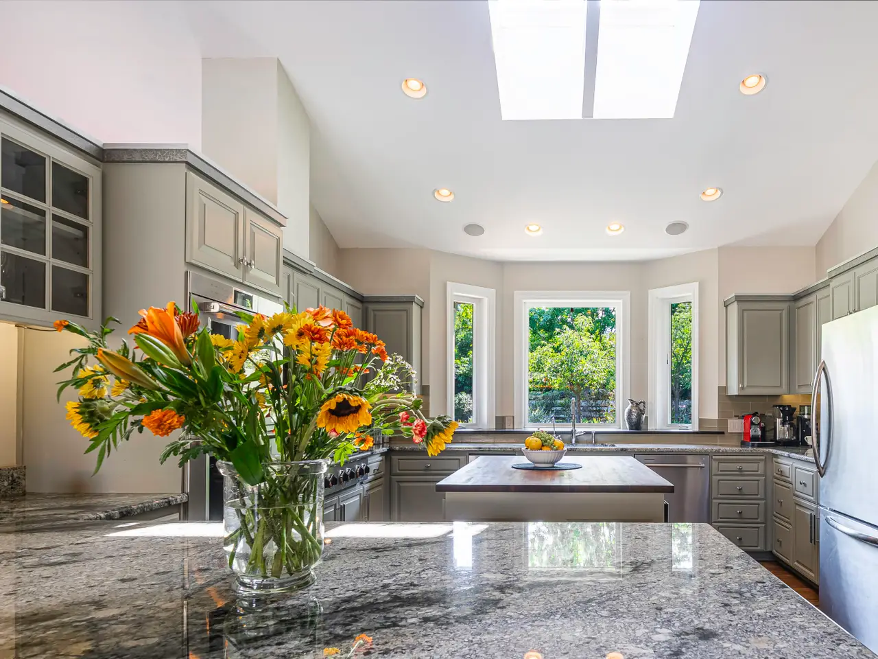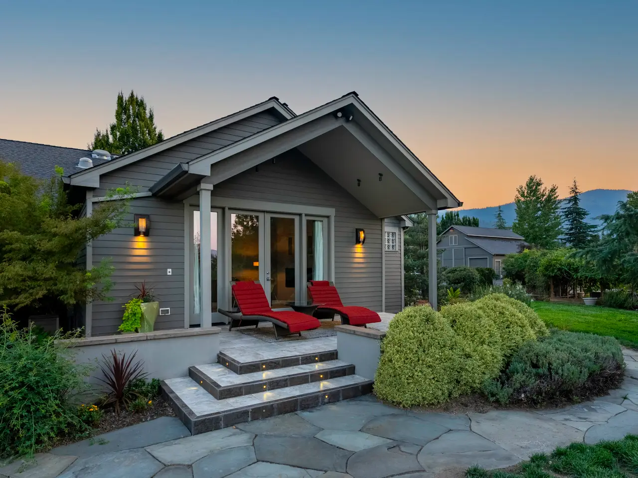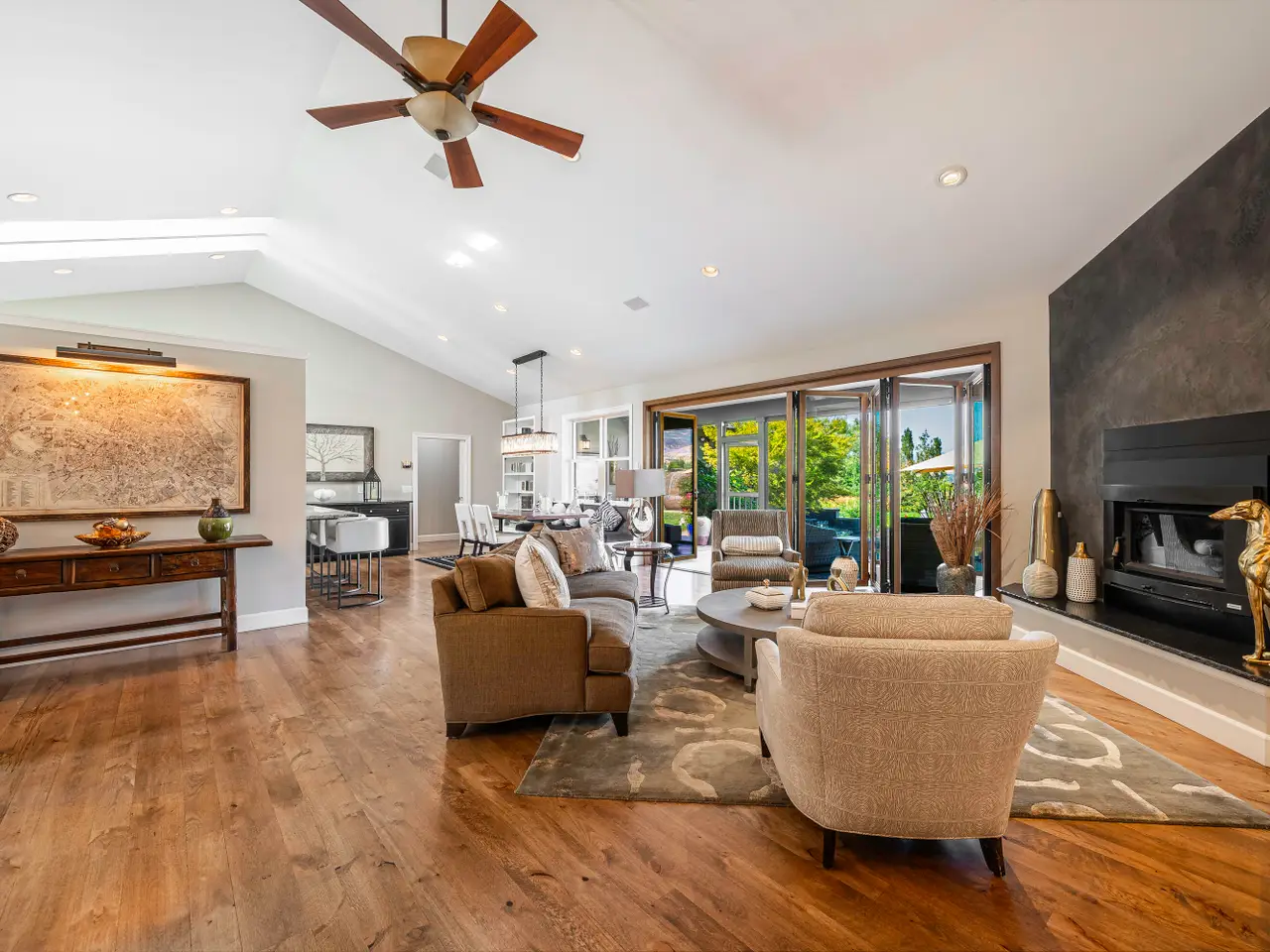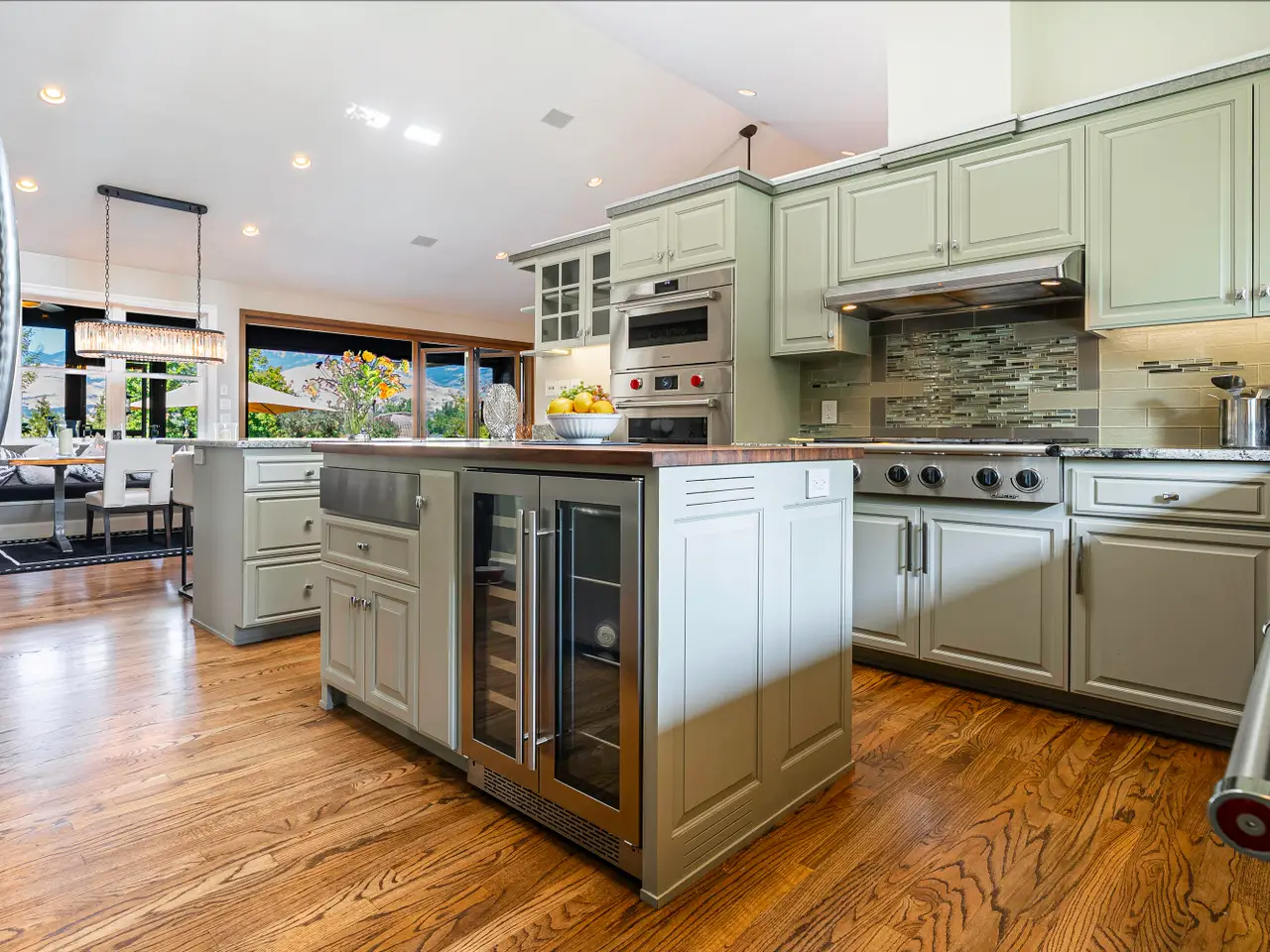 Rare single-level view home on private acreage in a desirable close-in neighborhood of high-end country estates. Abundant natural light and air flow with operable casement windows and NanaWall glass doors, exceptional outdoor living areas with custom lighting, remote-operated screens, heated in-ground saline pool, and cabana area with gas fireplace. Gourmet kitchen with walnut island and granite dining counter, stainless Wolf convection ovens, and six-burner Dakor gas cooktop. Temperature-controlled walk-in pantry and 600+ bottle wine cellar. Primary suite with spacious walk-in closet and full ensuite bath with double vanity, radiant-heated tile floor, and curbless shower. Media room or potential second primary with walk-in closet, full guest bath, guest bedroom with closets, office or third bedroom, laundry room, and attached two-car garage. Mature trees, ornamental plantings, water features, fenced organic raised beds, and barn with RV parking and half-bath. Inquire for details!