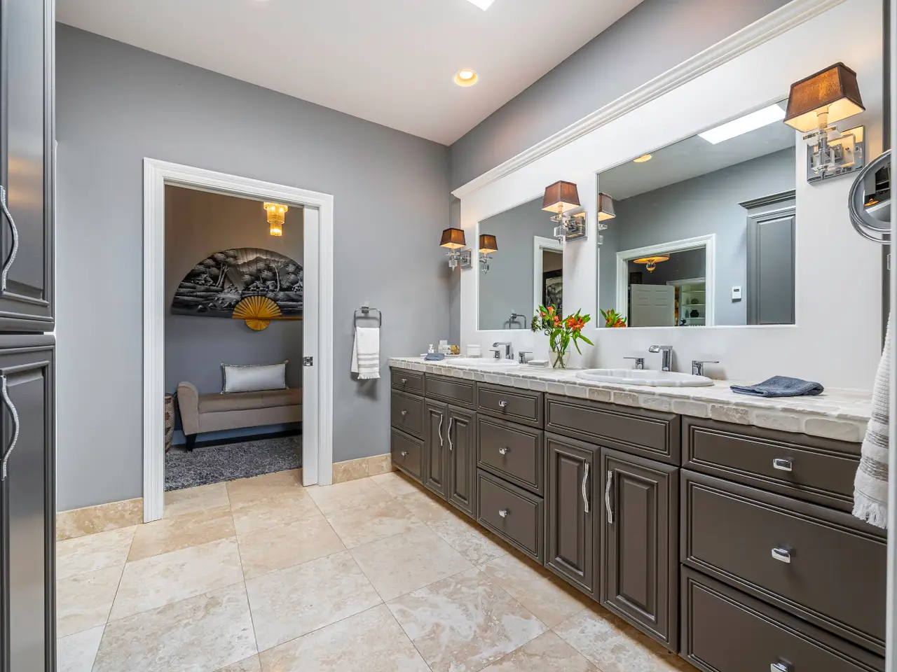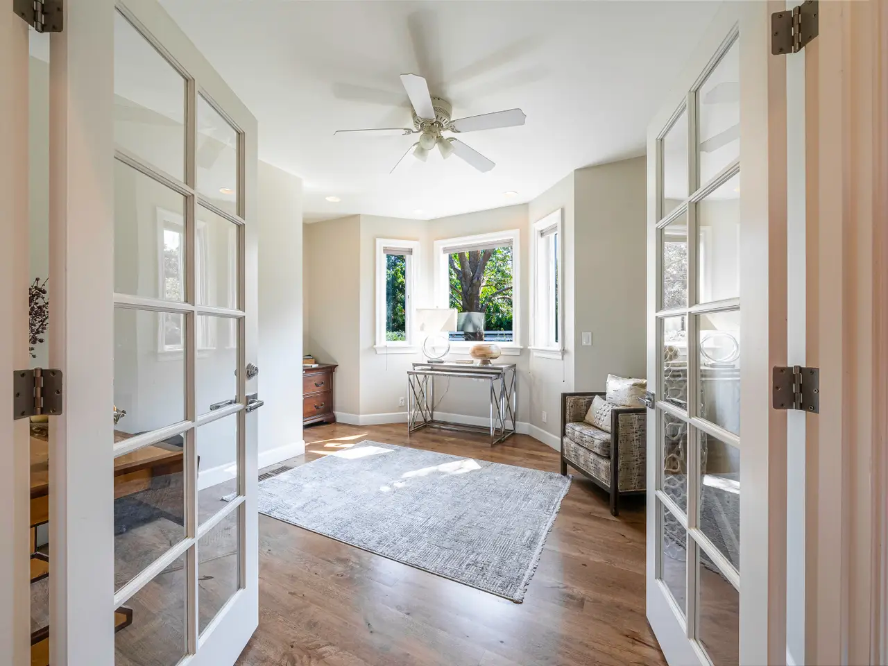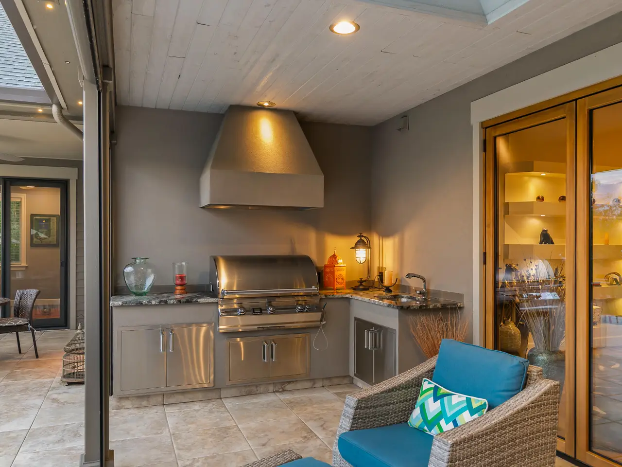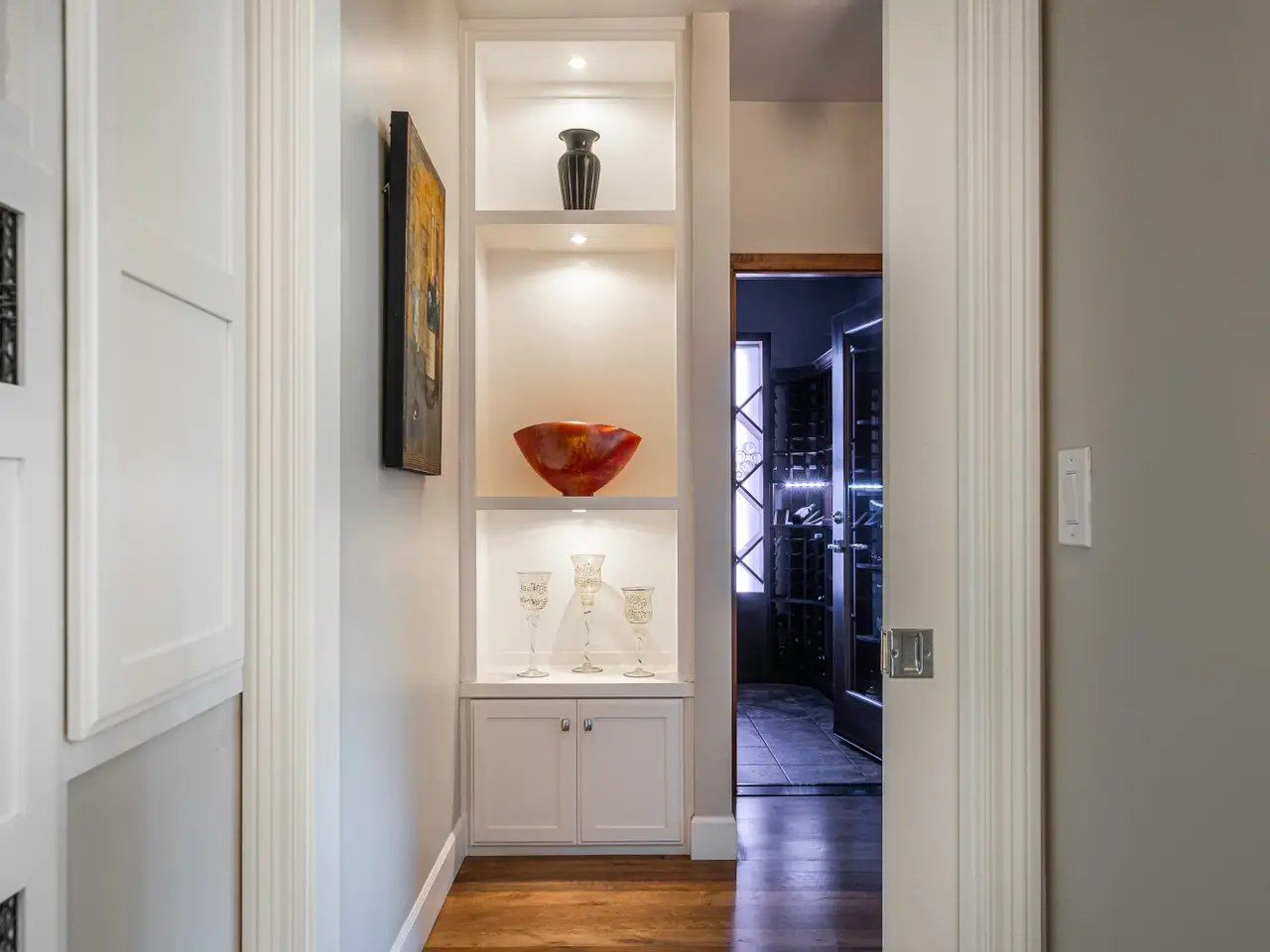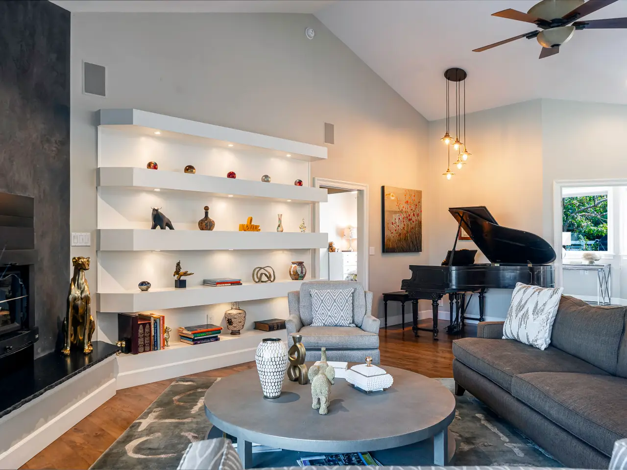 Rare single-level view home on private acreage in a desirable close-in neighborhood of high-end country estates. Abundant natural light and air flow with operable casement windows and NanaWall glass doors, exceptional outdoor living areas with custom lighting, remote-operated screens, heated in-ground saline pool, and cabana area with gas fireplace. Gourmet kitchen with walnut island and granite dining counter, stainless Wolf convection ovens, and six-burner Dakor gas cooktop. Temperature-controlled walk-in pantry and 600+ bottle wine cellar. Primary suite with spacious walk-in closet and full ensuite bath with double vanity, radiant-heated tile floor, and curbless shower. Media room or potential second primary with walk-in closet, full guest bath, guest bedroom with closets, office or third bedroom, laundry room, and attached two-car garage. Mature trees, ornamental plantings, water features, fenced organic raised beds, and barn with RV parking and half-bath. Inquire for details!