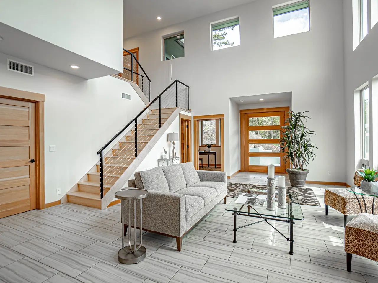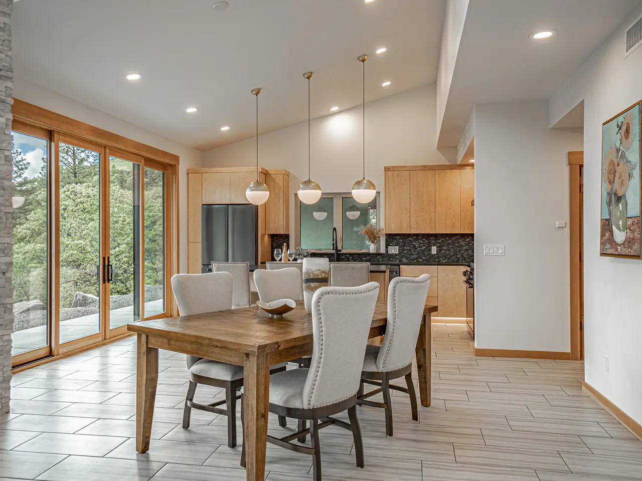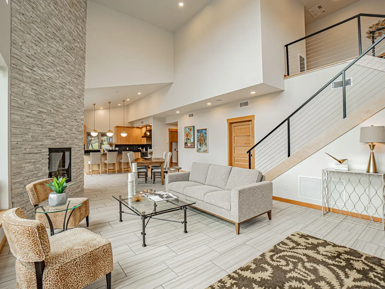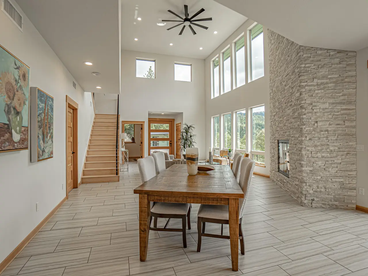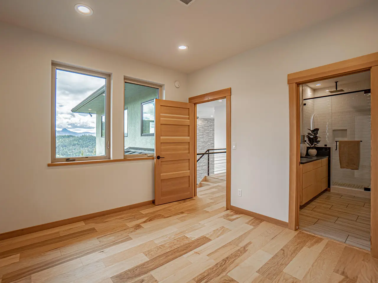 Stunning new contemporary home with mountain views on 20+ private acres! Interior highlights include natural hickory and maple hardwood floors and steps; porcelain tile in kitchen, bathrooms and great room, granite countertops; washer and dryer in upstairs primary bedroom closet and connections for a second set up downstairs, windows wired for electric blinds or shades, beautiful stone fireplace all the way to the ceiling, all Dacor appliances. The exterior has stucco siding, and a metal roof on both the main house and detached garage. The oversized garage has enough space for 2 cars plus a shop area with ample lighting, EV charging outlet, and a heated full bathroom. The garage also has an attached 2 car carport. The covered patio boasts an outdoor fireplace and the upstairs balcony off of the primary bedroom is a perfect place to accommodate a hot tub and enjoy the views. There is also a 200 amp service to the home and an additional 200 amp service for future construction.