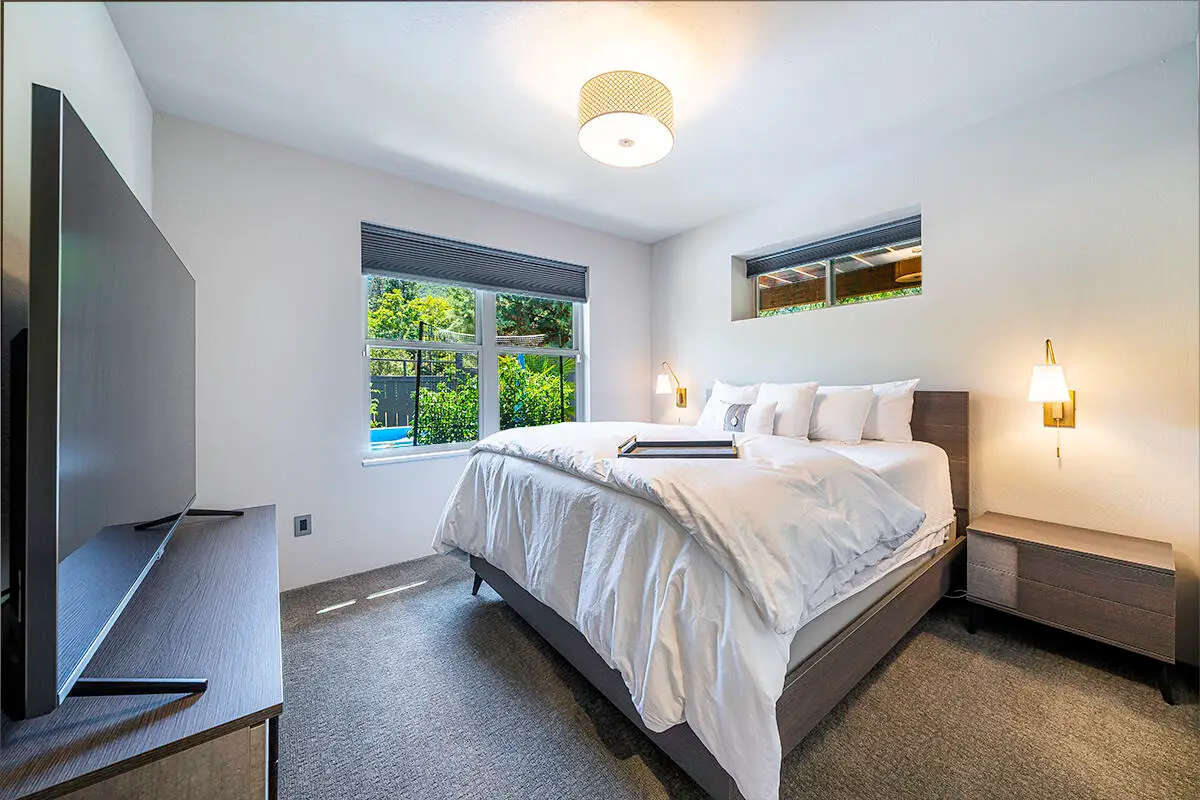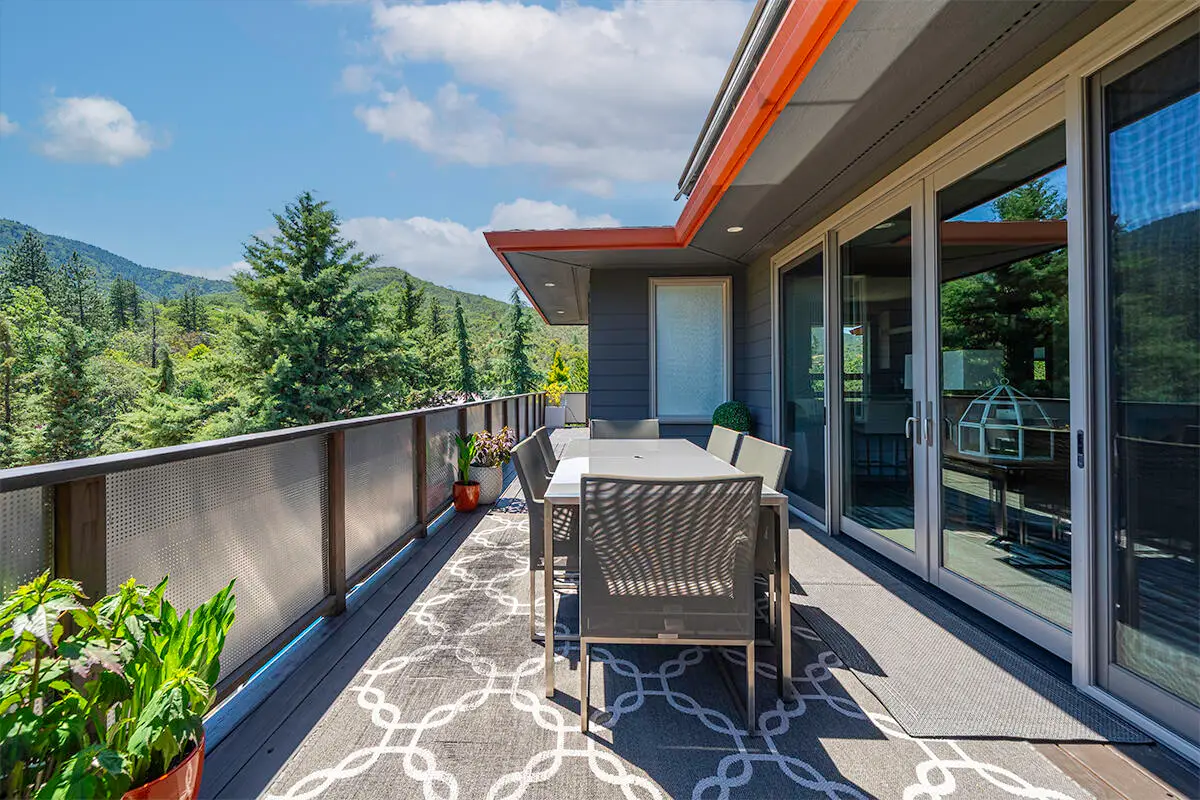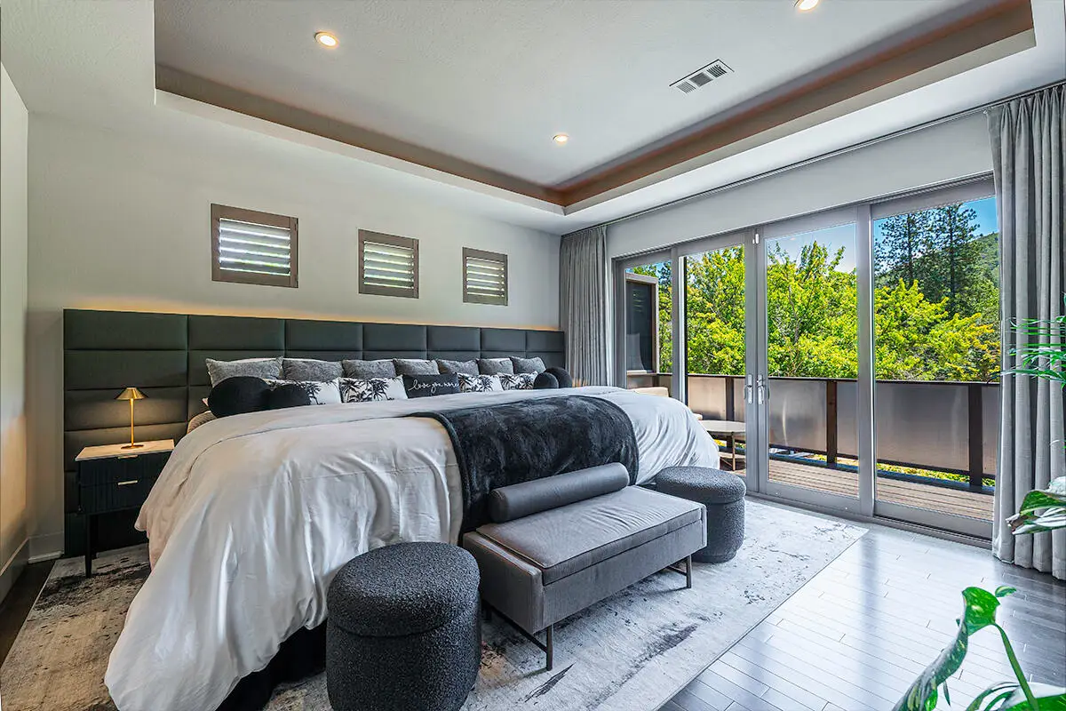 Gorgeous, architecturally designed contemporary home nestled in the hills of Ashland, Oregon. This sophisticated 3 bed, 2.5 bath is beautifully appointed w/luxury systems & upgrades throughout including hardwood floors, designer lighting & floor to ceiling glass doors. Main level primary suite w/private deck access, ceiling treatments & spa like ensuite featuring a floating dual sink vanity, walk-in shower, tile floors & freestanding soaking tub. Chef's designer kitchen equipped w/a commercial grade hood fan, Thermador 6 burner range w/double ovens, expansive quartz waterfall island & full height penny tile backsplash. The lower level includes 2 bedrooms, a bonus room, full bathroom & family room plus an elegant, temperature-controlled wine room. Dedicated laundry/mud room & a formal office area outfitted w/a commercial grade glass door. 2-car garage w/storage & EV hookup. Oversized .26-acre lot w/tons of privacy, easy-care landscaping & fantastic views of the surrounding mountains!