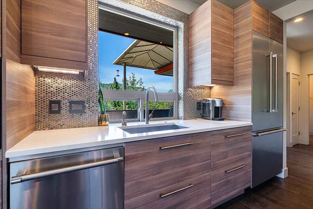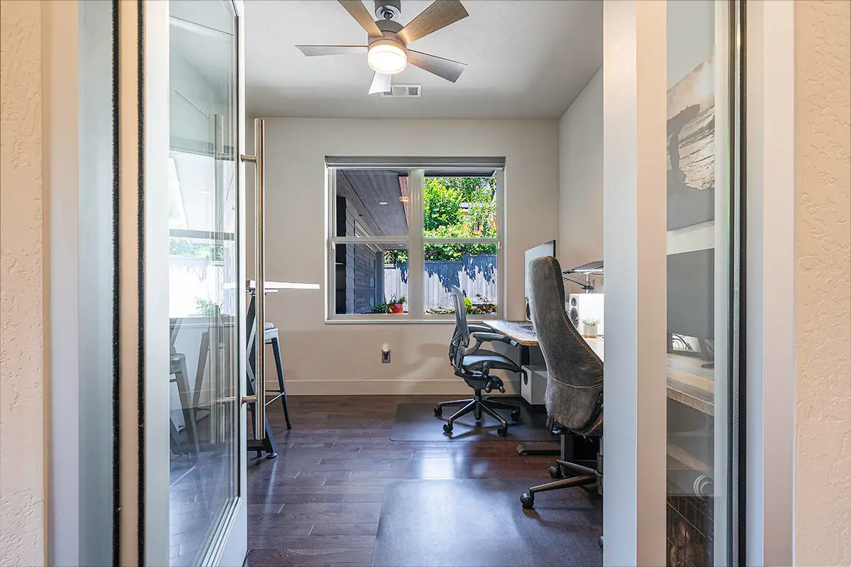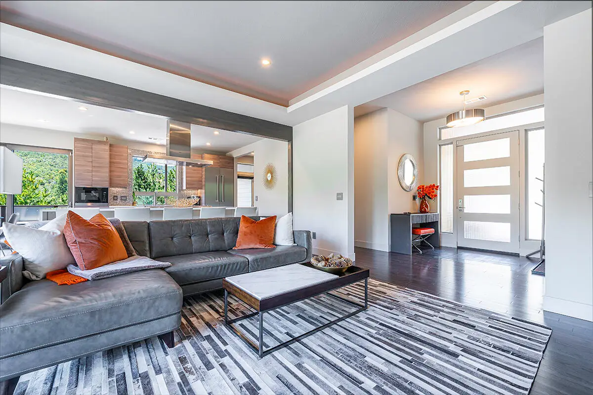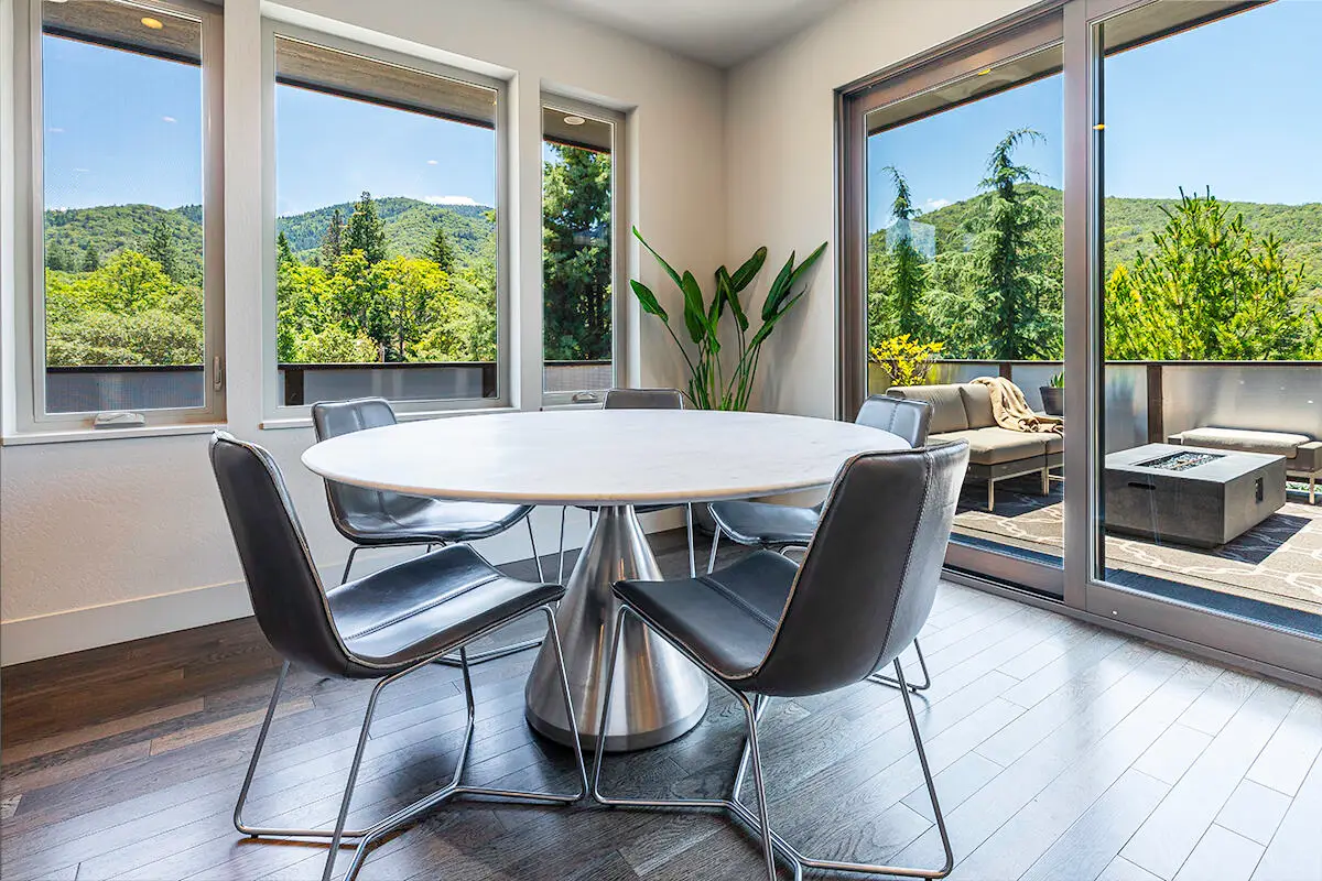Gorgeous, architecturally designed contemporary home nestled in the hills of Ashland, Oregon. This sophisticated 3 bed, 2.5 bath is beautifully appointed w/luxury systems & upgrades throughout including hardwood floors, designer lighting & floor to ceiling glass doors. Main level primary suite w/private deck access, ceiling treatments & spa like ensuite featuring a floating dual sink vanity, walk-in shower, tile floors & freestanding soaking tub. Chef's designer kitchen equipped w/a commercial grade hood fan, Thermador 6 burner range w/double ovens, expansive quartz waterfall island & full height penny tile backsplash. The lower level includes 2 bedrooms, a bonus room, full bathroom & family room plus an elegant, temperature-controlled wine room. Dedicated laundry/mud room & a formal office area outfitted w/a commercial grade glass door. 2-car garage w/storage & EV hookup. Oversized .26-acre lot w/tons of privacy, easy-care landscaping & fantastic views of the surrounding mountains!