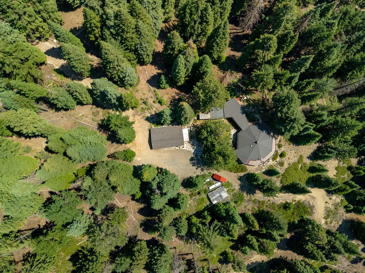Tranquil & pristine Mountain oasis on over 121 acres with a campground, marketable timber, green house, stream w/waterfall, springs and amazing scenic views of Mt Shasta & Pilot Rock. Amazing main home w/tile entry & stained-glass w/3 bedrooms, 2.5 baths, 2145 SQ FT with open beam vaulted ceilings in the great rm w/ huge stone staircase. Kitchen w/granite counters, tile floors opens to dining & great rm loft area. 2 primary suites overlooking the deck & creek. The other primary suite has a door to lg covered deck. Detached 2 car garage. Off grid secluded unpermitted cabin by waterfall and campground. Woodshed w/Japanese architectural elements, on-site fire suppression. Next to Forest Lands w/private hiking trails; Pacific Trail, wildlife, berries and mushroom hunting. Enjoy unobstructed star gazing, snow shoeing, sledding and more just 20 minutes from downtown Ashland. Owner will carry with 25% Down, 5% interest for 5 years w/Sellers approval of Buyer. Last house before the Lodge.