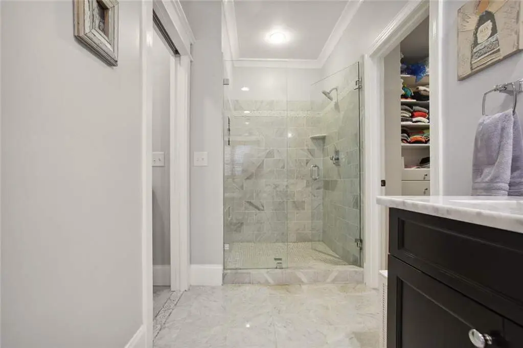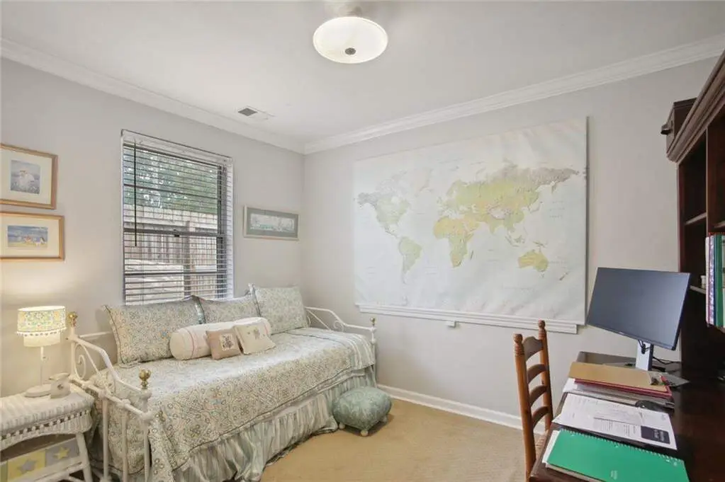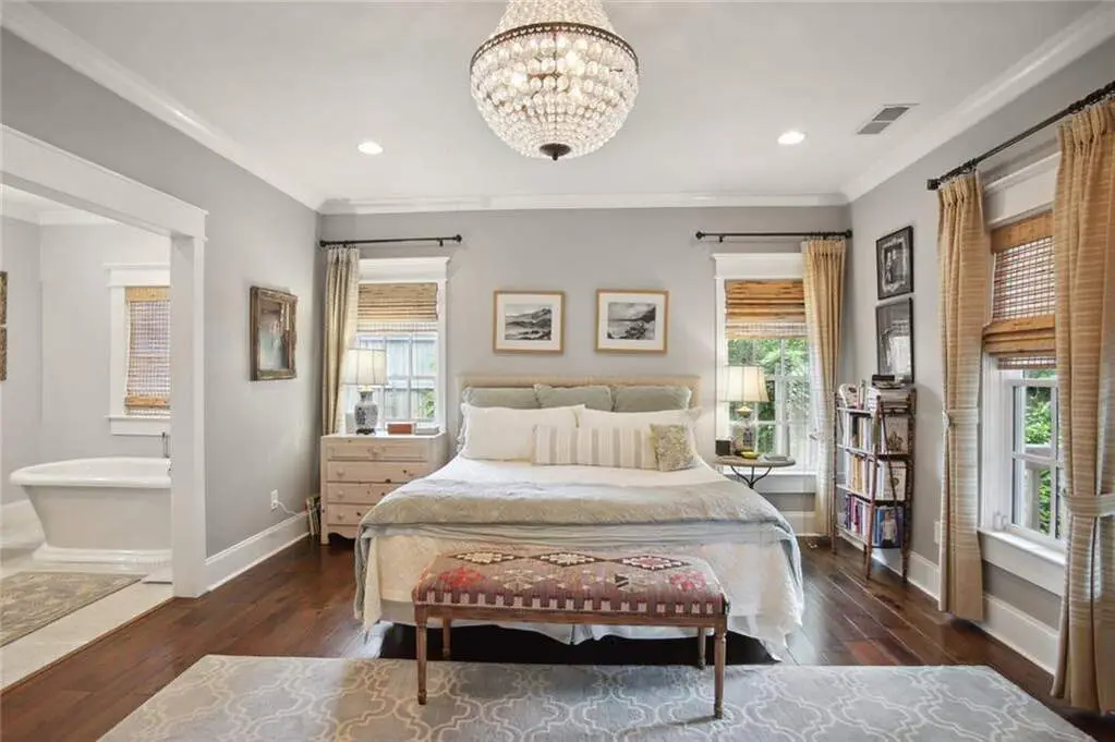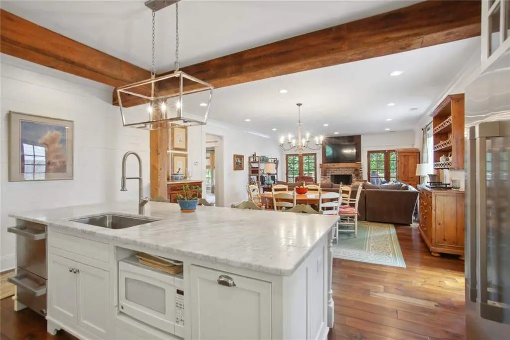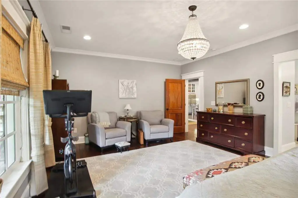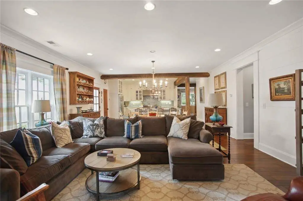 This Buckhead house truly has it all, 5 bedrooms, sought-after primary bedroom on main, open concept floorplan and a great value! Entrance foyer leads to formal living room and wet bar. The charming home offers architectural details including beamed ceilings, exposed brick and handsome brick fireplace in the family room. Light filled kitchen opens to the dining area and family room. Kitchen also hosts oversized island with additional seating, stainless steel appliances and stone counters. Large walk-in pantry and convenient mudroom with laundry and side entry. Large den in the front of the house. Sought after primary suite on main has large walk-in closet, primary bath with dual vanities, separate tub and shower. 2 secondary bedrooms on the main with 2 full baths. Upper level staircase leads to 2 bedrooms and 1 bath as well as bonus room for an office or playroom. The backyard is very private with large covered porch and level backyard.