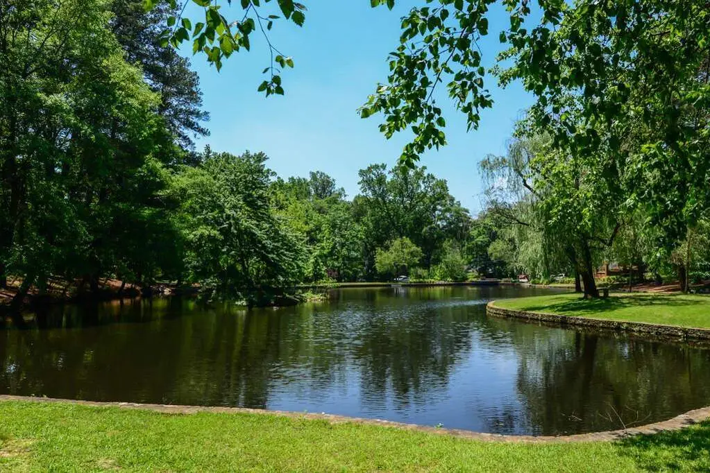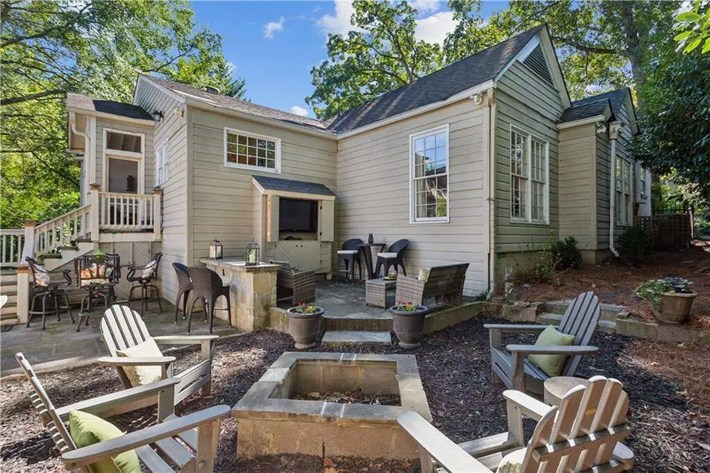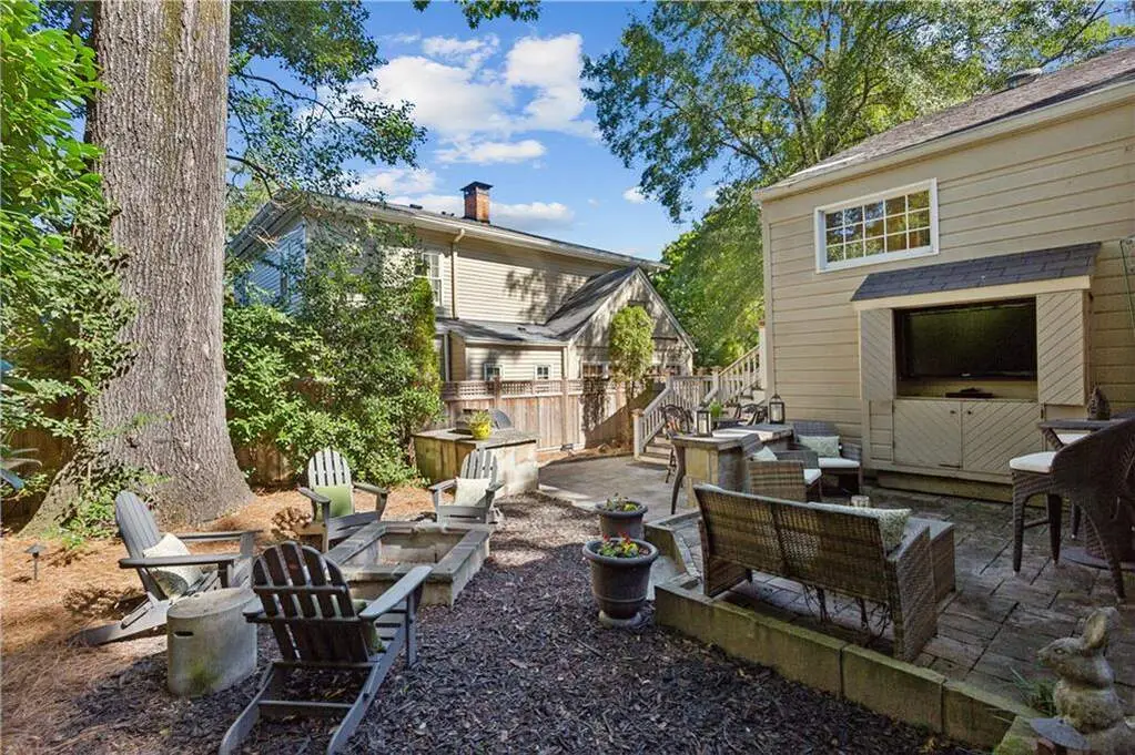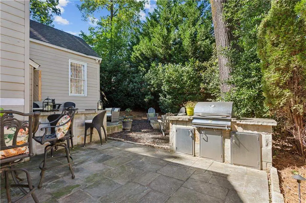 Truly a must-see home within walking distance to the Duck Pond, Garden Hills pool and playground and Peachtree Road Farmer's Market - just in time for Summer! This charming home on a rare, double corner lot in Peachtree Heights East offers delightful curb appeal, and a wonderful main level open floor plan. The welcoming entry courtyard flows from a level front yard, inviting you into the living room with a beautiful arched, stacked stone fireplace. The rear, two-story addition was designed for gathering and entertaining, with an oversized family room and kitchen with an abundance of natural light and 10 foot ceilings. The custom designed kitchen features arched windows, a custom-crafted mantel, double ovens, double dishwashers, gas cooktop, granite counters, large island & breakfast room, with a tucked away built-in desk and cubby area by the side entry. The ample family room and kitchen both open to a large screened-in porch with vaulted ceiling, beadboard & beam detailing, and sunset views. Separate dining room and cozy study, plus a sought-after primary suite on main with dual walk-in closets and custom-designed primary bathroom addition, featuring a built-in armoire, double vanity, separate soaking tub and double shower. There are two secondary bedrooms on the main level as well that share a bath, plus a separate powder room. Upper-level staircase leads to a sitting room/playroom/office and an sleeping room with large closets. The finished, daylight terrace level includes a bedroom and bath, as well as a bonus room that is currently being used as a gym. The private backyard has a double stone patio with built-in stainless grill, stone fire pit and outdoor bar counter with built in TV, a pea gravel play area and extra lower bonus yard. One car garage that can be easily converted back into two. Many upgrades have been made this year including brand new water heater, pressure reducing valve, upgraded bathroom plumbing and upgraded main AC unit!