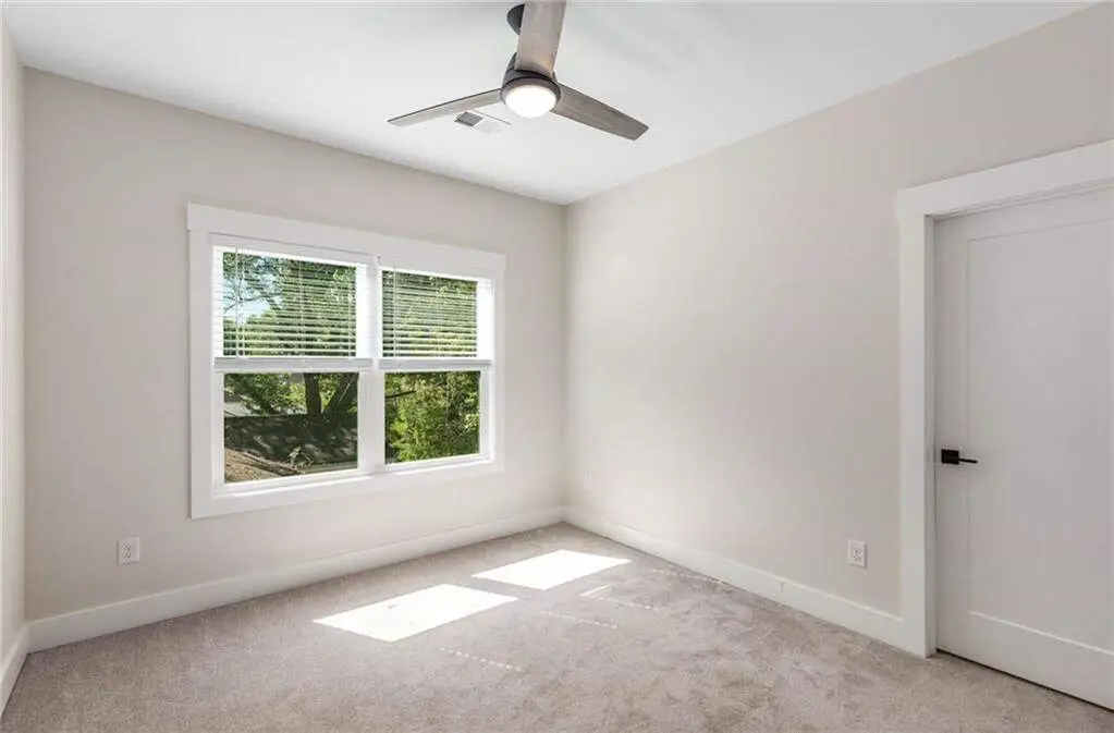 Welcome to your Wildwood haven, a 2022 custom build tucked in the heart of Buckhead on a quiet cul-de-sac in one of the neighborhood's most beloved spots where neighbors wave and kids still play outside until the sun sets. The exterior charms with warm cedar accents, glowing Bevolo gas lanterns, a slate-gray metal roofline, elegant oval windows, and classic Bradford Hall Tudor brick. Inside, an airy foyer opens to a spacious living room with treetop views of the Buckhead forest, a sleek linear fireplace, and a 14-foot panoramic glass door that extends the living space to a stained and sealed deck lit for cozy evenings outdoors. The chef's kitchen features polished Brazilian marble counters, premium KitchenAid and Bosch appliances, a farmhouse sink, walk-in pantry, and custom mudroom nearby. A main-level guest suite with a marble bath offers privacy and comfort for visitors. Upstairs, four bedrooms include a Jack-and-Jill bath and a serene owner's retreat with dual closets, spa-like marble bath, dual shower heads, and a freestanding soaking tub. Smart home tech, an EV-ready garage, tankless water heater, two-zone HVAC, premium insulation, and thoughtful storage throughout make life as efficient as it is beautiful, move-in ready and perfectly Wildwood.