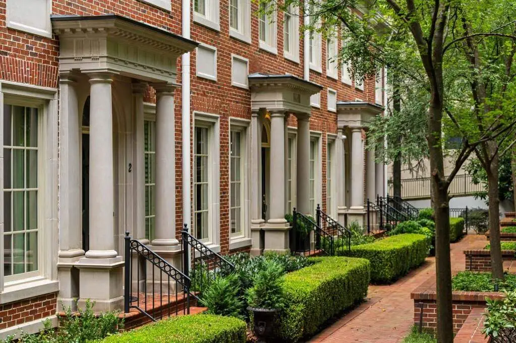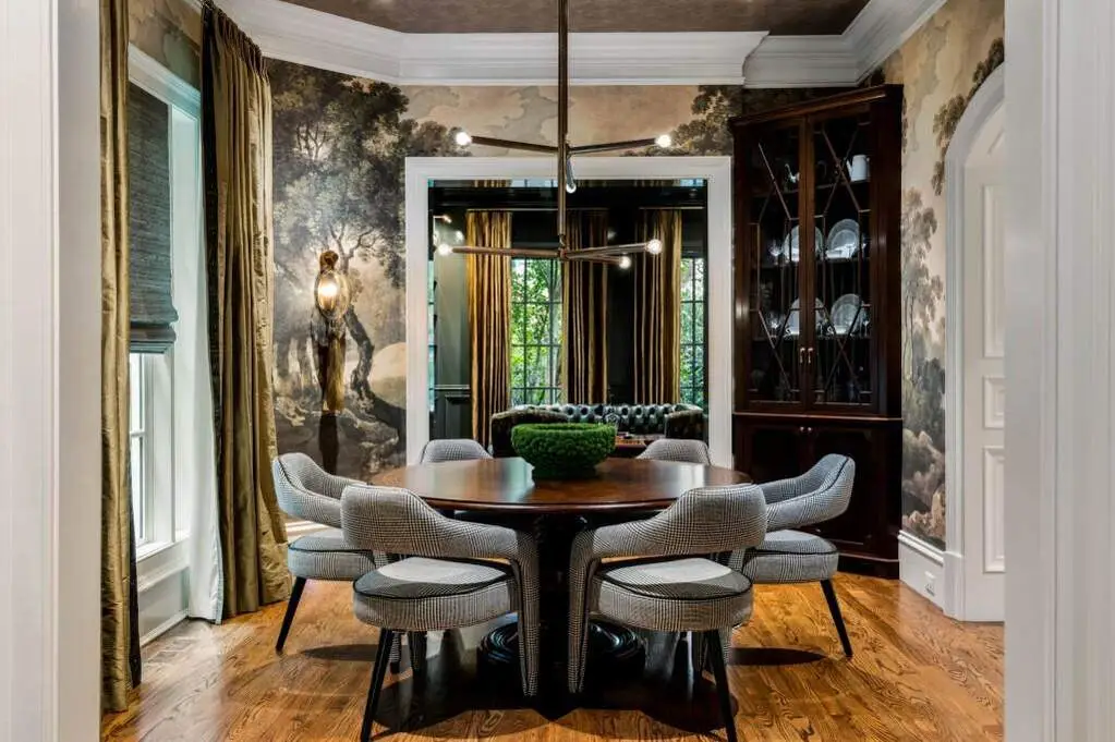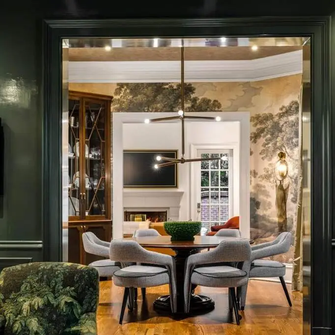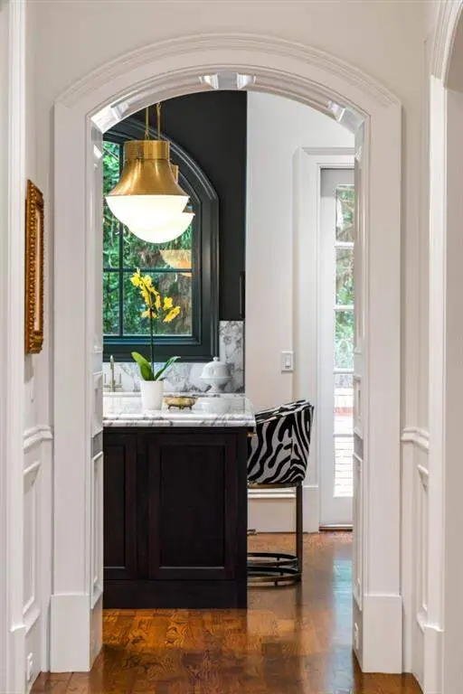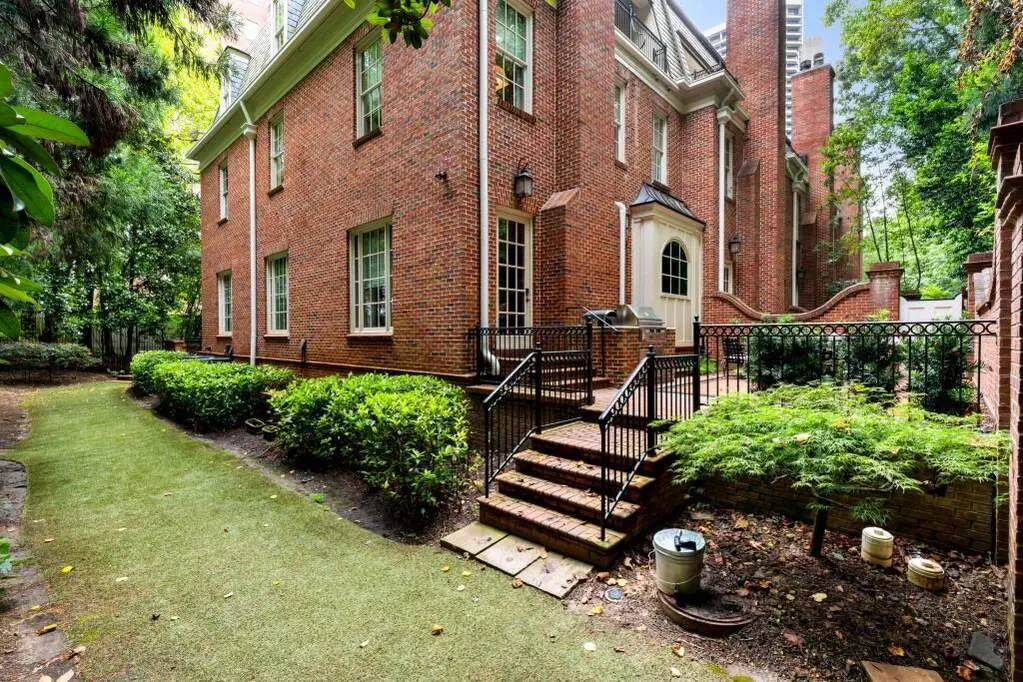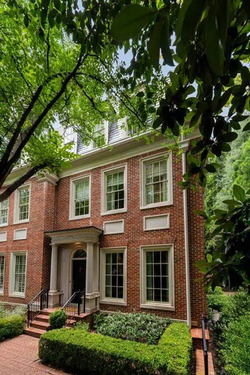 Sumptuous interiors define this stunning newly renovated Buckhead townhome. Located in the highly sought-after, prestigious Peachtree West neighborhood, it is within easy distance to restaurants, schools, places of worship, Peachtree Battle Shopping Center, and the ever-popular St Philips Saturday Farmers Market. This elegant all-brick townhome complex designed by William T. Baker and built by Brunning & Stang features only five units. The exterior is reminiscent of those lovely streets of Mayfair London or the Upper West Side of New York City. Number 5 is the farthest end unit in the complex allowing for a quiet and peaceful environment. As you enter the home, you will be awed by the sophisticated next level luxury renovations of the finest materials and craftsmanship throughout. The exceptional library to the right of the entry is designed and emulates a Ralph Lauren look with dark green lacquer bookcases and coffered ceilings highlighted by the multiple windows - a benefit to an end unit. With a view throughout the unit the next room is the truly breathtaking dining room from the stunning wallpaper to the custom built in cabinets and the artistically designed light fixtures. A room that your dining guests will remember. The light-filled living room with cast stone fireplace is open to the magazine worthy kitchen that will stop you in your tracks. This superb kitchen is luxurious and efficiently designed for any gourmet cook. The La Cornue dual fuel range is complemented with high-end appliances such as the Sub-Zero refrigerator, Fisher & Paykel dishwasher drawers, Miele coffee maker system and speed oven and more upscale appliances. The plentiful cabinets feature organizational details. Calacatta Vagli adds a perfect dimension of marble counters, backsplash, and counter for nine-foot island. The island has seating and a surprise feature at the end with the feeding station that will delight any dog parent. A wonderful arched window positioned above the sink brings light and a view to the courtyard and greenery. Access to the courtyard may be through the full-light doors flanking the fireplace. The private brick patio has space for dining and relaxing with a built-in grilling station and gives direct access to the nice side yard. A pretty half bath is located off the main hall. There is an elevator to all four floors. On the second level you will find a spacious primary suite renovated to perfection with Phillip Jeffries wallpaper and custom lighting. The two walk-in custom closets are nicely outfitted. The primary bath has a marble double vanity, stand-alone soaking tub and separate shower and water closet. A redesigned laundry room has full size washer and dryer and cabinets. The first secondary bedroom with private bath is on this floor. The upper floor presents a considerable room for a third bedroom or office, beverage center and private bath with access to the covered porch. The sizeable fourth secondary bedroom has its own bath as well. The lower level presents newly added space of over 640sf and offers a nicely sized fitness room, charming wine cellar with steel and iron doors with capacity for 350 - 400 bottles. The storage area has multiple enclosed cabinets. The two-car garage access is on this floor. There is a private security gate for both the sidewalk entry and the garage. Guest parking is in the secured garage. This tranquil and sophisticated townhome lives like a single-family home yet offers a lock and leave residence.