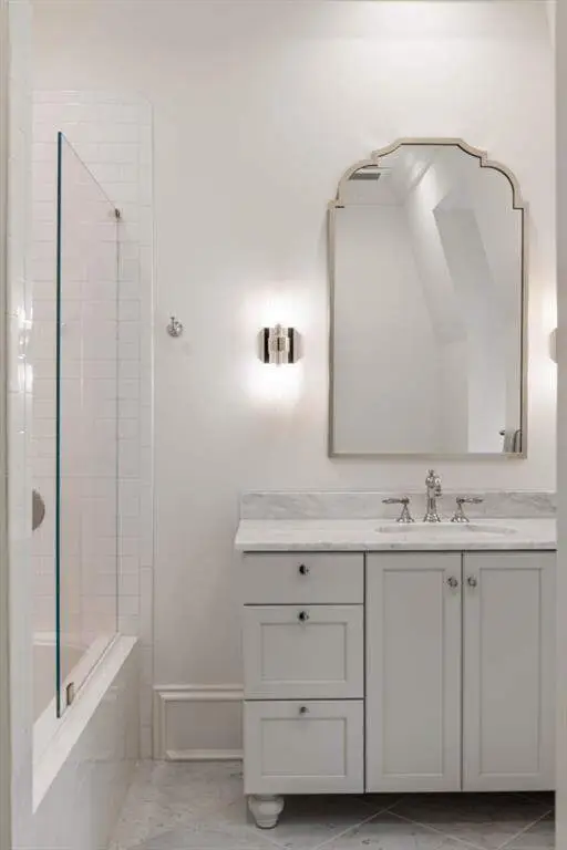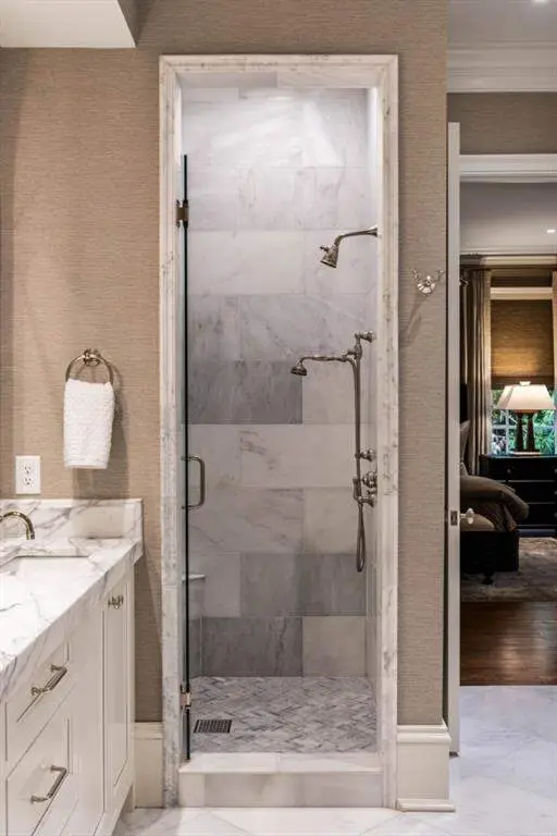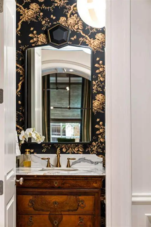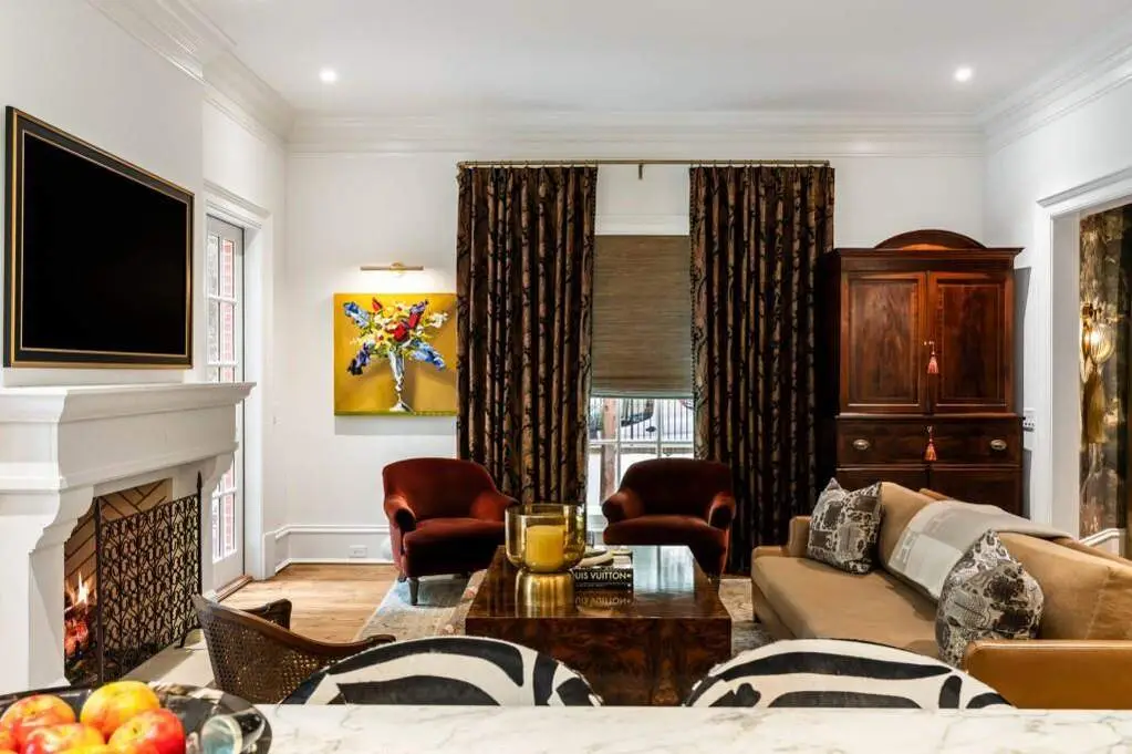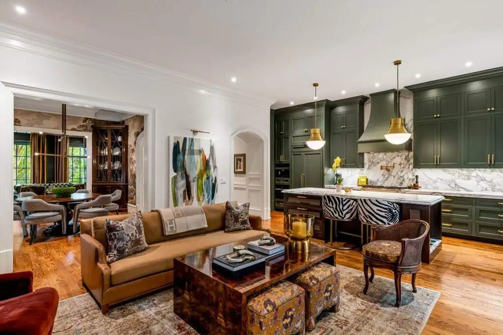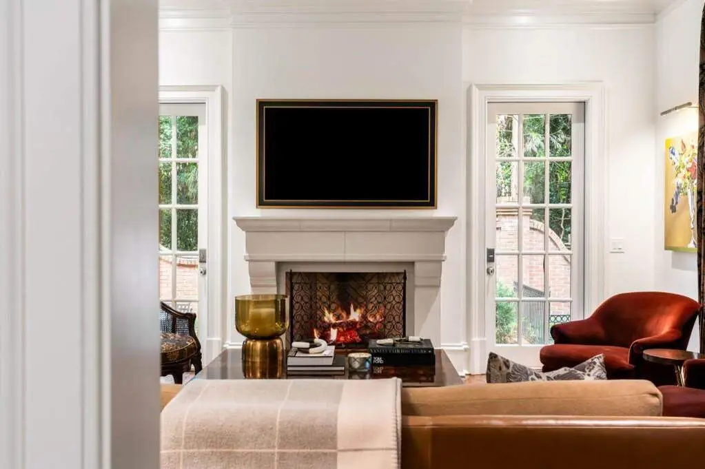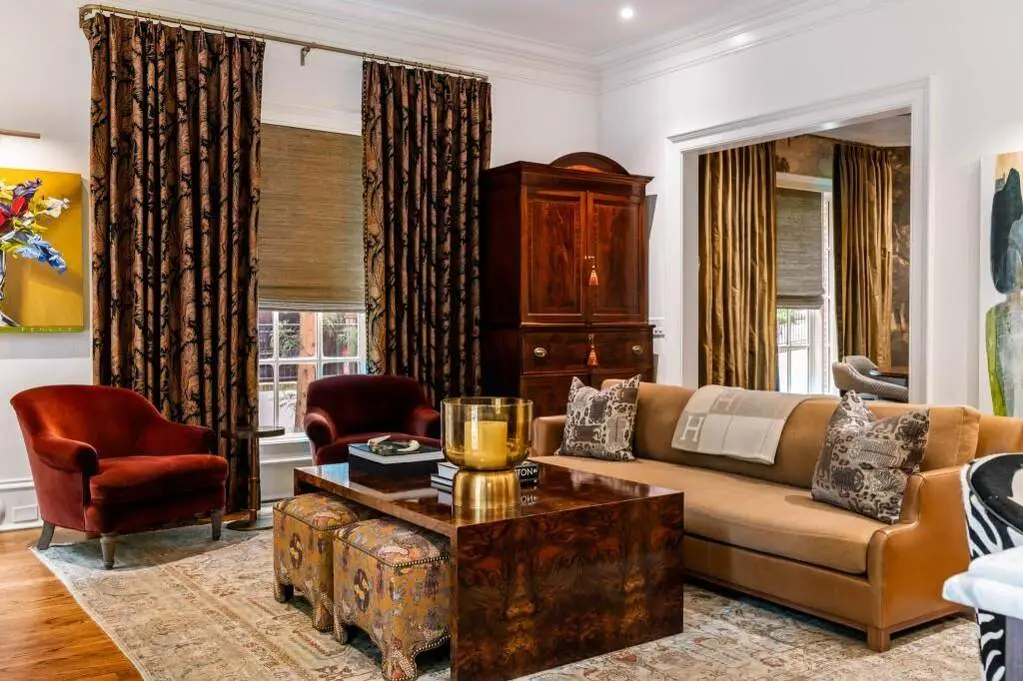 Sumptuous interiors define this stunning newly renovated Buckhead townhome. Located in the highly sought-after, prestigious Peachtree West neighborhood, it is within easy distance to restaurants, schools, places of worship, Peachtree Battle Shopping Center, and the ever-popular St Philips Saturday Farmers Market. This elegant all-brick townhome complex designed by William T. Baker and built by Brunning & Stang features only five units. The exterior is reminiscent of those lovely streets of Mayfair London or the Upper West Side of New York City. Number 5 is the farthest end unit in the complex allowing for a quiet and peaceful environment. As you enter the home, you will be awed by the sophisticated next level luxury renovations of the finest materials and craftsmanship throughout. The exceptional library to the right of the entry is designed and emulates a Ralph Lauren look with dark green lacquer bookcases and coffered ceilings highlighted by the multiple windows - a benefit to an end unit. With a view throughout the unit the next room is the truly breathtaking dining room from the stunning wallpaper to the custom built in cabinets and the artistically designed light fixtures. A room that your dining guests will remember. The light-filled living room with cast stone fireplace is open to the magazine worthy kitchen that will stop you in your tracks. This superb kitchen is luxurious and efficiently designed for any gourmet cook. The La Cornue dual fuel range is complemented with high-end appliances such as the Sub-Zero refrigerator, Fisher & Paykel dishwasher drawers, Miele coffee maker system and speed oven and more upscale appliances. The plentiful cabinets feature organizational details. Calacatta Vagli adds a perfect dimension of marble counters, backsplash, and counter for nine-foot island. The island has seating and a surprise feature at the end with the feeding station that will delight any dog parent. A wonderful arched window positioned above the sink brings light and a view to the courtyard and greenery. Access to the courtyard may be through the full-light doors flanking the fireplace. The private brick patio has space for dining and relaxing with a built-in grilling station and gives direct access to the nice side yard. A pretty half bath is located off the main hall. There is an elevator to all four floors. On the second level you will find a spacious primary suite renovated to perfection with Phillip Jeffries wallpaper and custom lighting. The two walk-in custom closets are nicely outfitted. The primary bath has a marble double vanity, stand-alone soaking tub and separate shower and water closet. A redesigned laundry room has full size washer and dryer and cabinets. The first secondary bedroom with private bath is on this floor. The upper floor presents a considerable room for a third bedroom or office, beverage center and private bath with access to the covered porch. The sizeable fourth secondary bedroom has its own bath as well. The lower level presents newly added space of over 640sf and offers a nicely sized fitness room, charming wine cellar with steel and iron doors with capacity for 350 - 400 bottles. The storage area has multiple enclosed cabinets. The two-car garage access is on this floor. There is a private security gate for both the sidewalk entry and the garage. Guest parking is in the secured garage. This tranquil and sophisticated townhome lives like a single-family home yet offers a lock and leave residence.