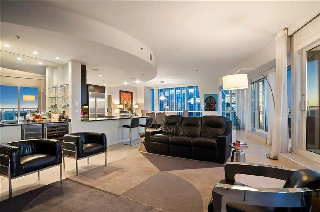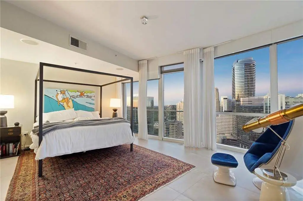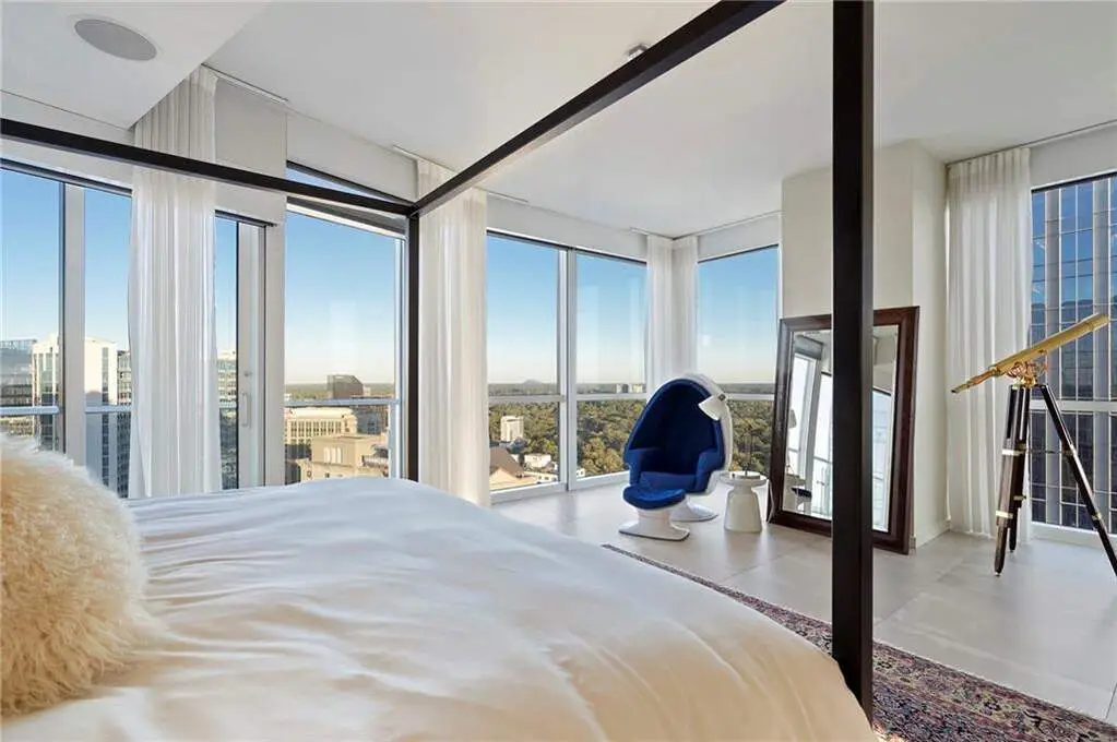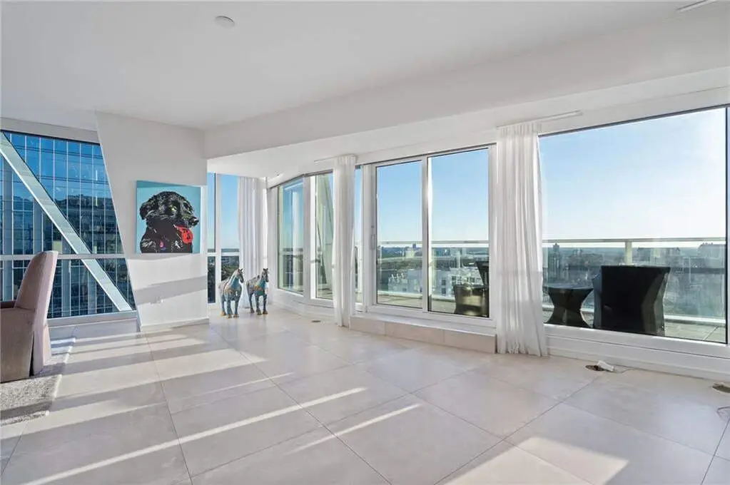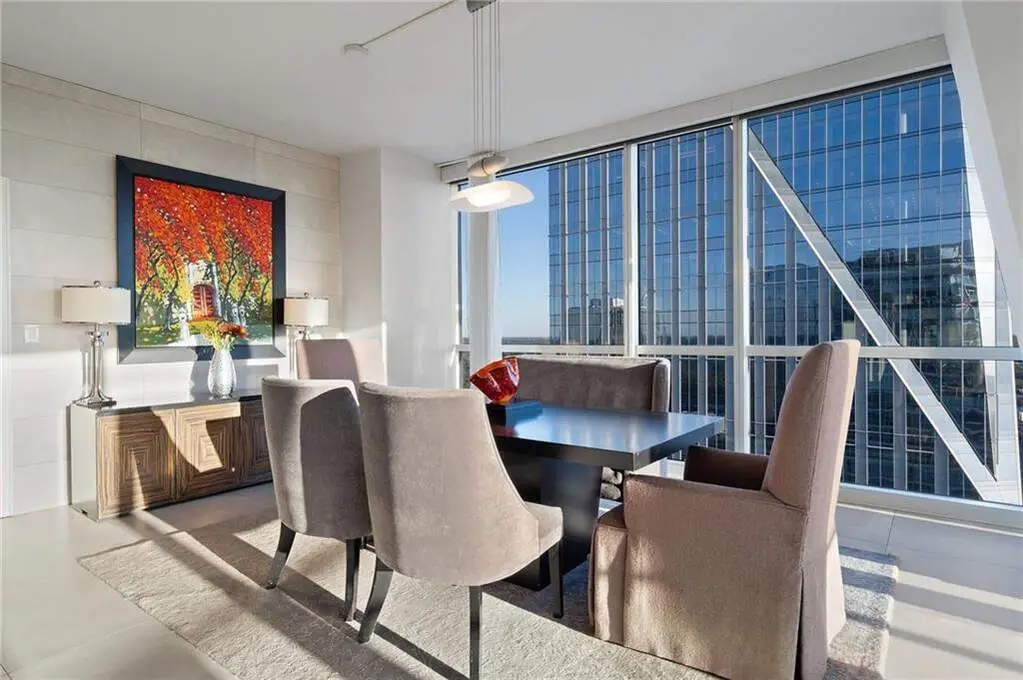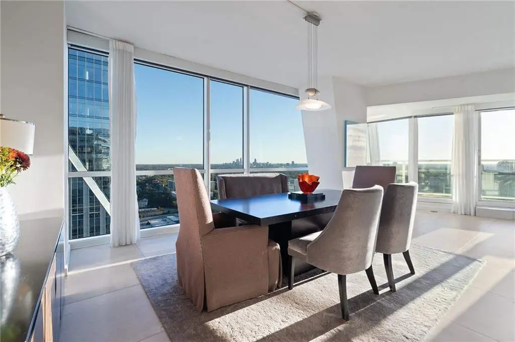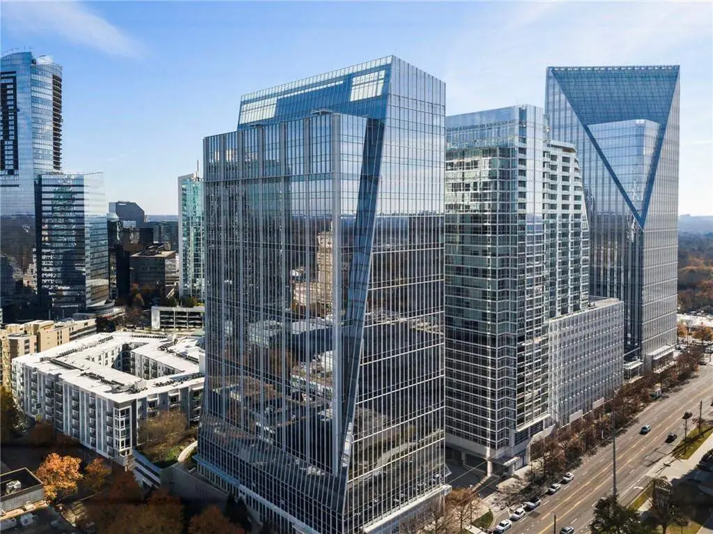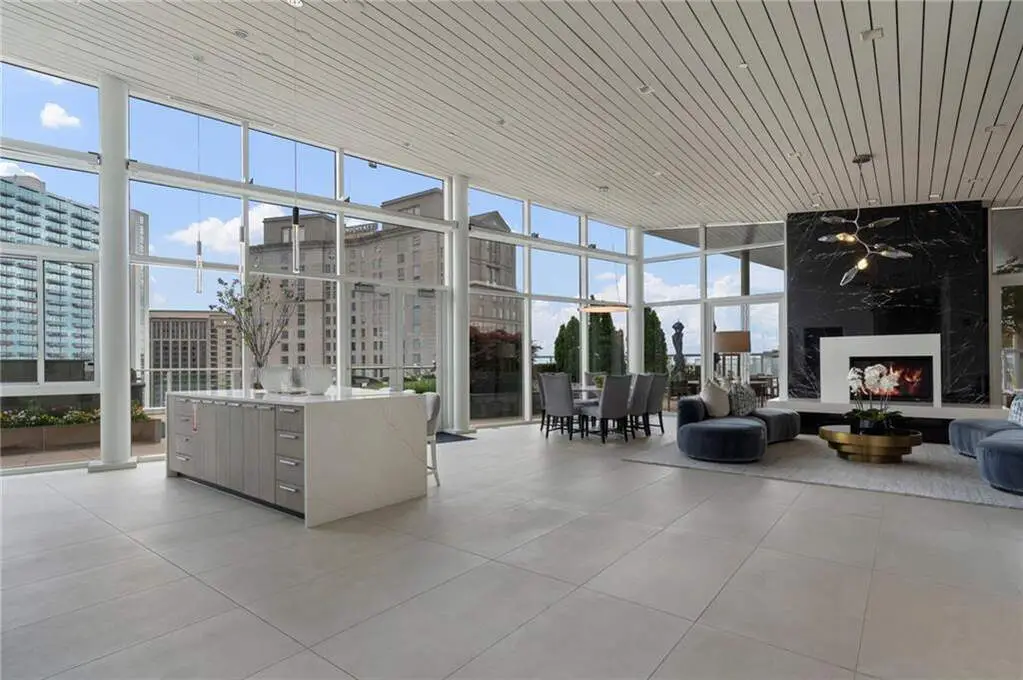 A rare offering in highly sought-after Terminus - one of only three residences with this sexy and coveted floor plan - this impressive corner unit embodies elevated Buckhead living with its expansive layout and nearly 360-degree skyline views from the 3 separate terraces. An entertainer's dream, the open-concept living area features a fireside great room and a sleek bar complete with Sub-Zero wine storage. The adjoining dining and media rooms flow seamlessly into a gourmet kitchen outfitted with top-of-the-line appliances, including Sub-Zero refrigeration, Wolf gas range and warming drawer, and a convenient breakfast bar. A separate catering entrance off the kitchen makes hosting effortless. Step outside to the oversized, covered terrace and take in breathtaking views of both Buckhead and Downtown - the perfect backdrop for dining or entertaining al fresco. Privately situated, the luxurious primary suite with Venetian plaster walls offers a tranquil retreat with a sitting area framed by floor-to-ceiling corner windows, a private covered terrace with views of Stone Mountain and Buckhead, and an expansive custom walk-in closet with a built-in safe. The spa-inspired bath showcases dual vanities and water closets, a soaking tub, and a frameless glass shower - all positioned to capture the home's extraordinary vistas. Two additional guest suites, each with ensuite baths, share a third balcony and are thoughtfully placed off the foyer for privacy. Additional highlights include Famosa Italian tile throughout, motorized shades throughout, leak defense water system, Toto toilets, and a fully integrated Lutron and Control4 smart home system and a 1/2 bathroom. Two deeded, covered parking spaces complete this exceptional offering. Perfectly positioned at Terminus, just steps from Buckhead's finest dining, shopping, and MARTA access.
