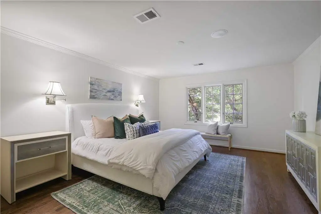 Located on a cul-de-sac in the most desirable section of the Paces West Neighborhood, this stunning, renovated end unit townhome offers the perfect blend of charm, quality, and convenience. Featuring hardwoods throughout with three bedrooms and two and a half baths, the home boasts a large and light-filled family room with a cozy gas fireplace, opening to a relaxing patio with its own outdoor fireplace-ideal for entertaining. The chef's kitchen offers custom cabinetry, island and stainless appliances with views of the family room. The spacious fireside dining room and separate inviting living room create a warm and welcoming atmosphere. Upstairs, the primary suite offers a spa-like bathroom and his-and-hers closets, while two additional bedrooms share a well-appointed bath. Additional walk-in attic space allows for easy storage. Thoughtful details including wainscoting, coffered ceilings and quality craftsmanship can be found throughout the home. A covered walkway leads from the home to the large two car garage with additional attic storage. Adjacent to the two car garage is a private green space. Paces West is a sought-after gated community with just 82 homes, offering fantastic amenities, including a pool and a dog park, along with an active and friendly neighborhood atmosphere. Enjoy a short stroll to the West Paces Ferry Shopping Center, Blue Ridge Grill, Whole Foods, Starbucks and more!