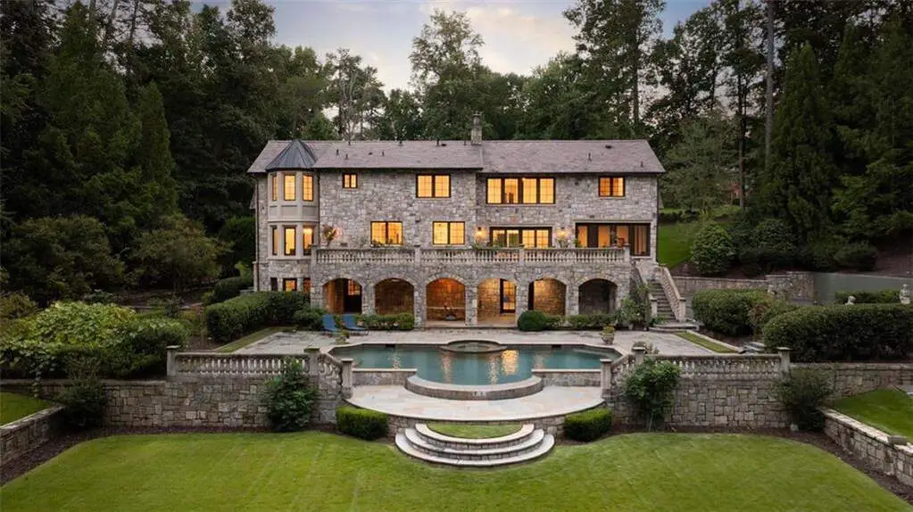 Stunning English Estate in Buckhead Nestled on 2.15 acres of breathtaking grounds, this exquisite English estate offers resort-style living in the heart of Buckhead. From manicured gardens to a sparkling Pebble Tec pool, every detail evokes the serenity of a private European villa. Inside, sunlight pours through newly installed windows, illuminating fresh paint, trim, and floors. Graceful arched doorways connect the living, dining, sitting, and sunroom, all opening to a sweeping slate terrace with panoramic garden views. The showpiece kitchen is a chef's dream, featuring an oversized island, walk-in pantry, double wine cooler, and coffee bar. A main-level ensuite bedroom offers comfort and flexibility. Upstairs, the generous primary suite is a sanctuary with a limestone fireplace, spa-inspired bath with double vanity, two lavatories, garden tub, and oversized shower, plus a walk-in closet and private beverage center. Three additional bedrooms, two bathrooms, a laundry room, and a versatile landing complete this level. The lower level features a three-car garage (two tandem + one), mudroom, fitness room with rubber flooring, sauna, and full bath-with convenient access to the pool and gardens. Exterior details include hand-carved granite stonework, a slate roof, working greenhouse, outdoor fireplace, limestone and bronze statuary, and a cascading fountain-creating a timeless sense of grandeur. The home is only minutes from vibrant shopping, dining, and the recreation options of central Buckhead. Easy access to I-75 and very close proximity to Lovett, Westminster, and North Atlanta High. This is more than a home-it's an everyday retreat. Schedule your private tour and allow time to stroll the grounds, where each corner reveals the artistry and tranquility of estate living.