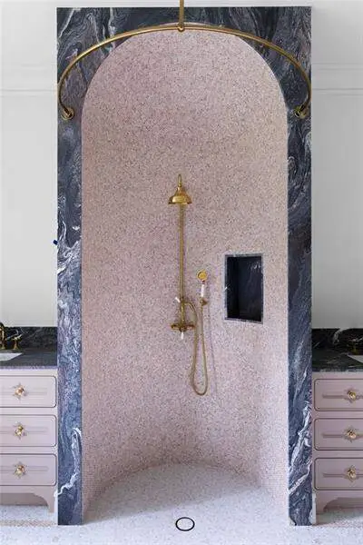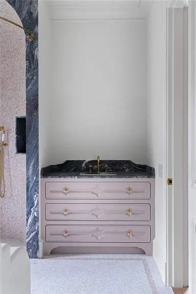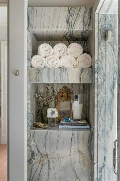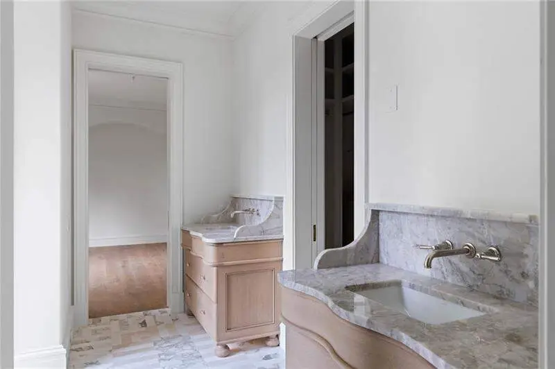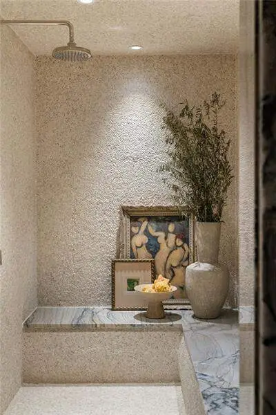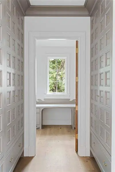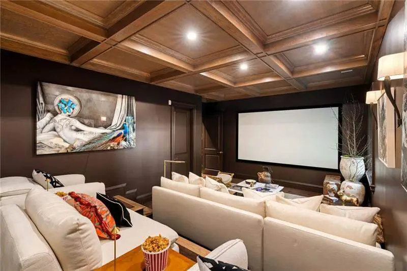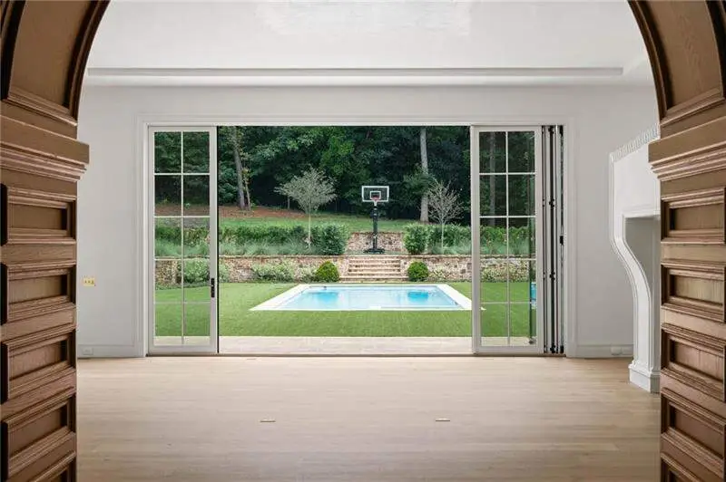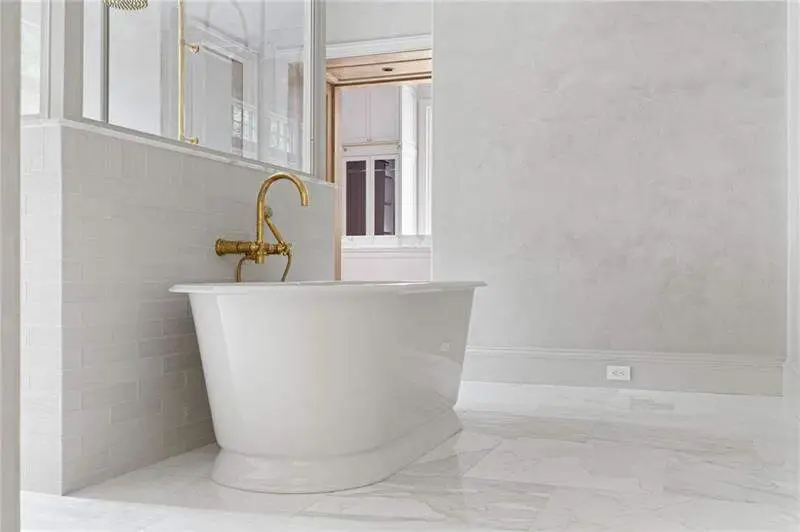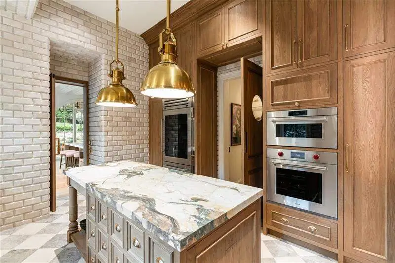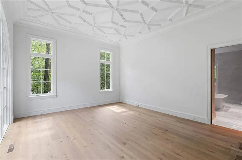 Located in the prestigious Tuxedo Park neighborhood of Buckhead, this 7-bedroom estate is a masterful blend of timeless elegance and modern luxury. Designed with exterior architecture by William T. Baker, refined interiors and specifications by SOURCE, and expertly built by Cole Construction, the home evokes the charm of a classic English manor. A striking fieldstone facade, hand-carved limestone accents, and a cedar shake roof lend an inviting, enduring character to this architectural gem. The interior features 12-foot ceilings and blends traditional charm with contemporary flair. Venetian plaster walls, marble accents, and custom wood paneling create an inviting, sophisticated atmosphere. The spacious foyer opens to a cozy living room with a sculpted plaster fireplace and herringbone surround. The chef's kitchen features sleek appliances, brass fixtures, and Kingdom cabinetry, flowing seamlessly into a charming scullery with a checkerboard floor. Decorative plaster ceilings add character to the dining room and primary bedroom, while the primary bath boasts a dramatic barrel arch and a jewel-box freestanding shower. The main-level primary suite also includes dual closets and a spa-like bath. Upstairs, five additional bedrooms, each with marble baths and classic fixtures, offer hotel-like comfort and ample space for family and guests. A playful bunkroom completes the family-friendly layout. The fully finished lower level offers the ultimate in relaxation and convenience, with a media room, bar, gym, sauna, cold plunge, and even a golf simulator. It also features an au-pair suite with a separate entrance, providing privacy and flexibility. The home is equipped with state-of-the-art security, including wired systems and cameras for peace of mind. Phantom speakers are built into the ceilings of the kitchen and family room, and wall speakers are installed on the porch for the perfect soundtrack to any occasion. Outside, the fully fenced backyard is a private oasis with a covered porch featuring a fireplace and stainless-steel gas grill, a sparkling walk-out pool, sports court, and lush landscaping by Land Plus. This estate offers over 1.5 acres of serene, resort-style living, perfect for both relaxation and entertainment.