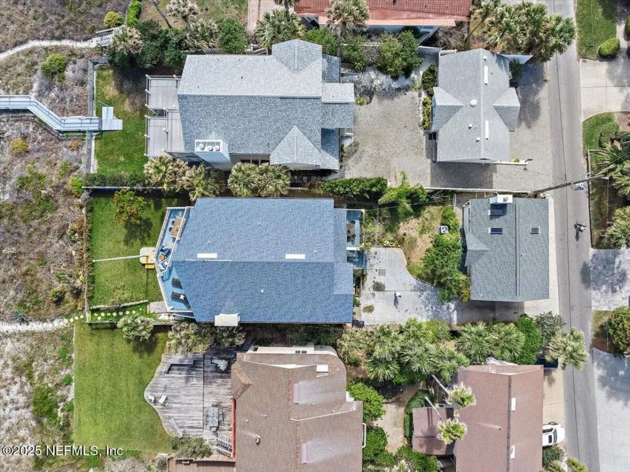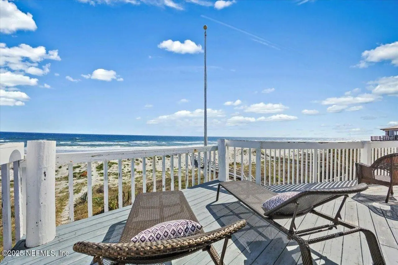 Imagine a beautiful oceanfront property with stunning views of the Atlantic Ocean and incredible sunrises. The main house is just steps from the shore and was designed with an open concept floor plan with high ceilings, tons of windows facing the ocean and large oceanfront balconies on the 2nd and 3rd floors. The spacious home features over 3500 sq. ft. of beachfront living, with the main living on the open and expansive 2nd floor with wood floors, fireplace in great room and dining area. Huge chefs' kitchen with breakfast/snack bar, cooking island and tons of cabinets. 2nd floor deck/windows expand width of house. French doors open to office/den. Upstairs features 4 generous sized bedrooms. The primary and 2nd have access to the oceanfront balcony. Primary also has a fireplace and lux bath with an oceanview soaking tub, separate shower, large cedar walk in closet. Downstairs features 2 other bedrooms, laundry, storage room and access to covered patio and direct walk to ocean. See more Tucked away behind the main house is a 3 car garage with ample parking and an upper 2 bedroom/1 bath apartment with approx 800 sq. ft.. The property's location ensures privacy while still being close to Atlantic Beach Town Center, with great shops and restaurants, parks, A-rated schools and Atlantic Beach Country Club.