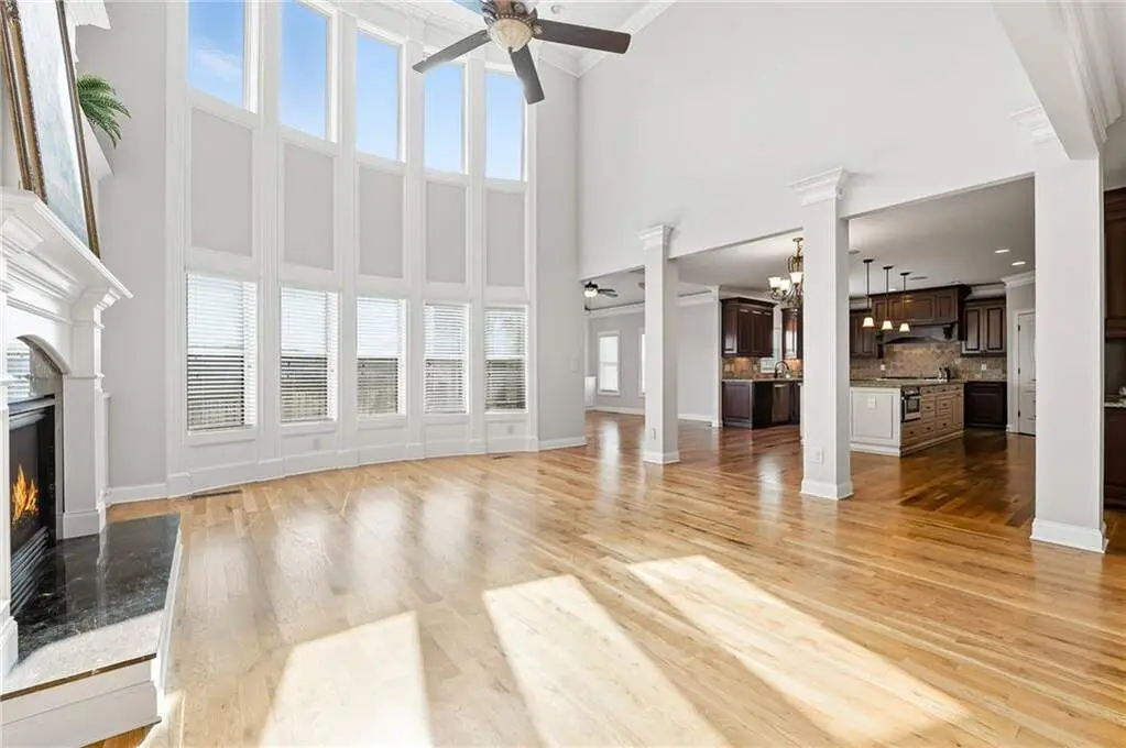 Welcome to this stunning custom-built luxury estate, perfectly set on 3.24 private acres with no HOA. This remarkable residence offers a seamless blend of elegance, comfort, and functionality, designed to impress and built for both entertaining and everyday living. An expansive double iron door and open floor plan greets you upon entry, highlighted by a grand two-story foyer and rich wide-plank hardwood floors throughout. The spacious living area flows effortlessly into a chef's dream kitchen and inviting keeping room, each with direct access to a generous back deck-ideal for hosting gatherings or enjoying peaceful evenings outdoors. The gourmet kitchen serves as the heart of the home, featuring an oversized island, custom cabinetry with tons of storage, and premium high end stainless steel appliances. Whether you're entertaining guests or preparing family meals, this thoughtfully designed space makes every moment in the kitchen a delight. The luxurious owner's suite is a true retreat, offering a private sitting area with a fireplace, a spa-inspired en suite bath with double vanities, a Jacuzzi tub, separate shower, and an the largest walk-in closet I have ever seen! Upstairs, you'll find spacious secondary bedrooms share a Jack & Jill bathroom with dual vanities along with another secondary bedroom with an ensuite bath. Additional highlights include: Guest suite with full bath on the main level, three elegant fireplaces, including one in the primary suite, central vacuum system, intercom, and built-in audio throughout all three levels, mudroom conveniently located off the 3-car garage, full daylight basement ready for your custom finish, four-sided brick exterior with refined crown molding and high-end finishes, sprinkler system, circular driveway with decorative low-voltage lighting and water fountain, along with ample storage throughout, including an oversized kitchen pantry and spacious closets. The expansive lot offers endless outdoor possibilities-from hosting