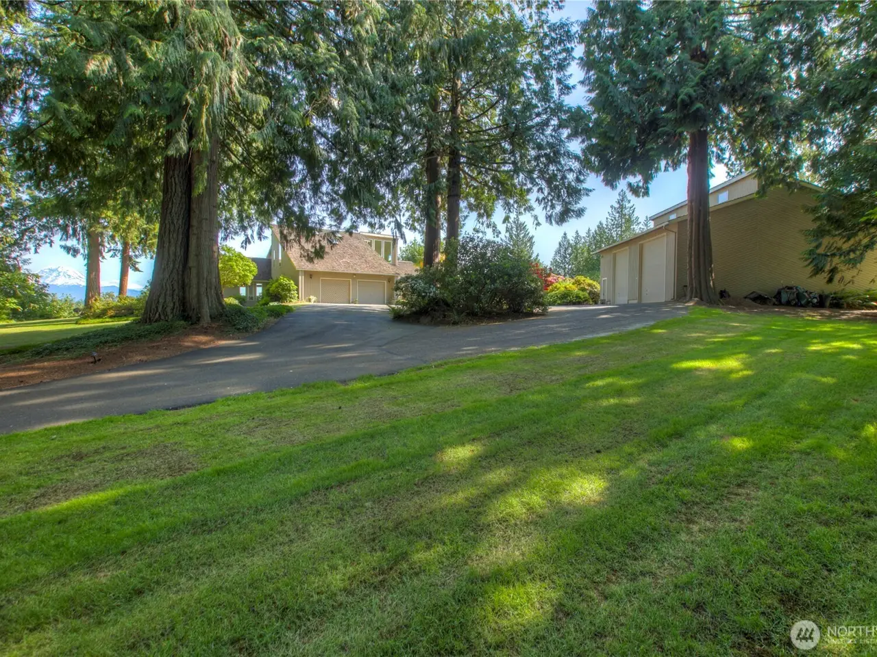 Experience Serene Luxury with Unparalleled Mt. Rainier Views. Nestled on a private 2.62-acre lot, 4-bedroom, 2.75-bath custom home. Vaulted ceilings welcome you into the formal living and dining areas. Expansive kitchen, complete with a cozy breakfast nook, provides ample space for culinary creations and entertaining. Adjacent to the spacious family room are two dedicated offices, perfect for remote work. The primary bedroom features an en-suite bath and a private deck on the second level with breathtaking views of Mt. Rainier. Step outside to the main-level deck with hot tub and meticulously maintained nature-inspired landscaping. Sport court with basketball hoop. Oversized 40'x40' shop for all your toys. Make this your next home!!