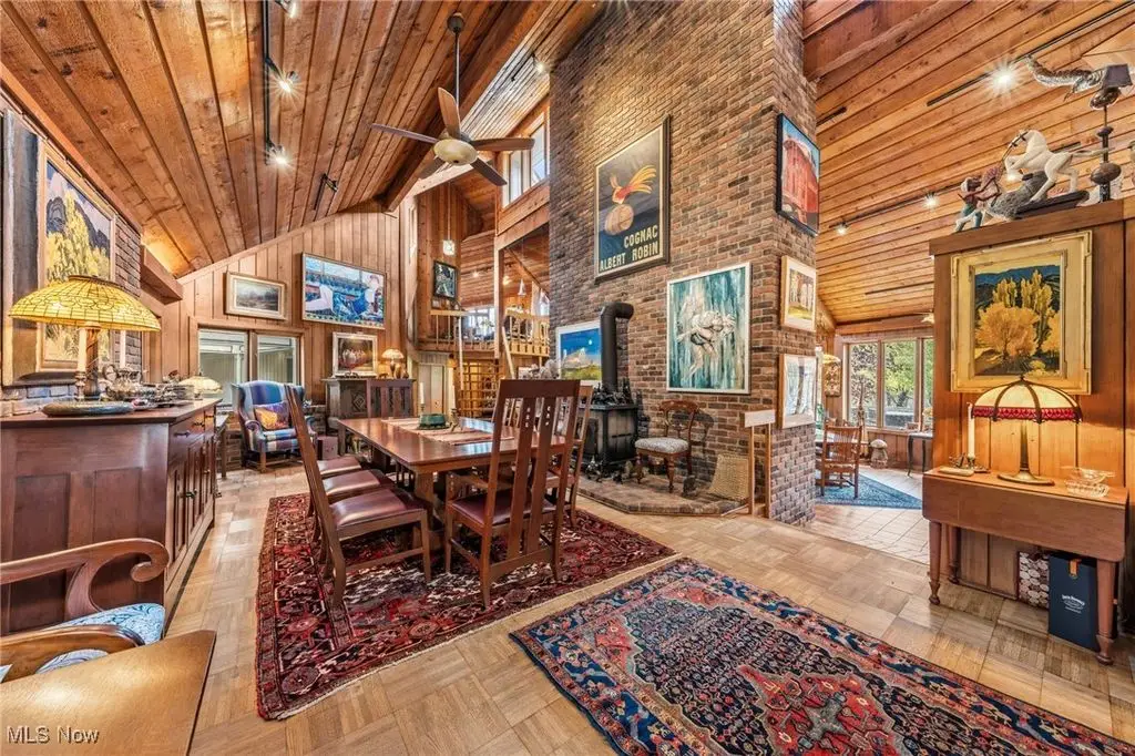 Here is your opportunity to own one of the last large parcels of land in Geauga County. This stunning 60+ acre property is truly breathtaking with the main house overlooking a picturesque pond and stunning meadow. A long private driveway through the woods opens onto a circular motor court and the custom designed home with a unique rustic/modern flair! This one of a kind home has an effortless indoor/outdoor flow with walls of windows overlooking the gorgeous grounds. A two story vaulted great room, chef's kitchen, and a generous dining room, flow seamlessly together and make entertaining effortless. The first floor owner's wing is its own retreat with a private sitting room, intimate bedroom area, expansive bathroom, and walk-in dressing room. For your guests or family, there are two second floor bedrooms in a private wing offering total and complete privacy. You will love admiring the wildlife and breathtaking views from the expansive deck which provides amazing outdoor entertaining space. There is an additional outbuilding on the property which is an amazing space with a second story artist studio. This can also be a fantastic private office or exercise studio. If you're a dog lover, there are three air-conditioned kennels with indoor/outdoor access. This incredible property is perfect for an equestrian or someone who seeks total privacy in one of the most breathtaking settings imaginable.