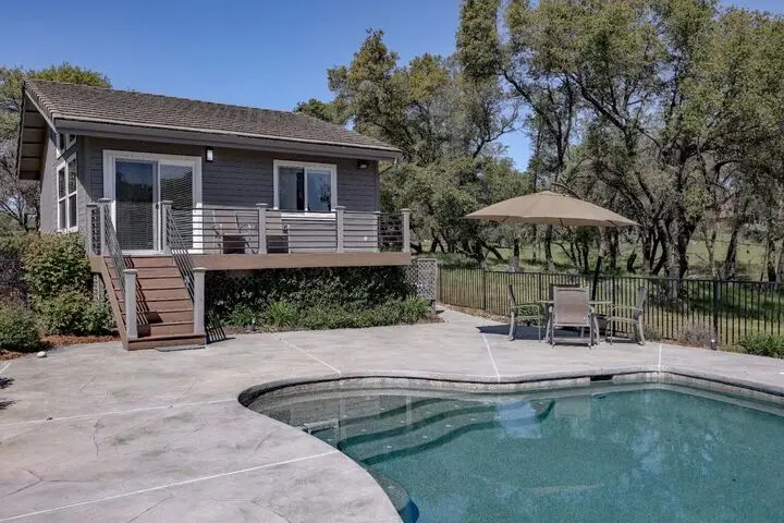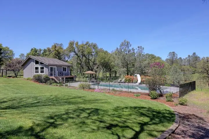 This home truly has it all! Perfect blend of elegance and comfort for a growing family, entertaining, or multi-generational living. The heart of this home is the gourmet kitchen that offers generous granite counter space, two dishwashers, double oven, built-in refrigerator, walk-in pantry, and ample cabinets. Add a formal dining room for those special gatherings! The living room invites comfort and light with generous window views. Step onto the spacious deck to enjoy nature's serenity. A downstairs bedroom/bath may be a home office. Upstairs, three bedrooms and two full baths. The primary suite flows into the spa like bathroom that features heated tile floors, Jacuzzi tub with built-in water heater, and a walk-in shower with LED decorative lighting. The lower level has a large family room and a bedroom/bath perfect for in-laws or guests. The backyard acreage has a solar heated pool, irrigated garden and orchard, propane firepit area, a dog run and pen with surrounding invisible fencing. Add the pool house with full bedroom/bath, living room and kitchenette! In the event of power loss there is a propane powered generator for your convenience. Attention to detail throughout the property will surely impress - come see this treasure!