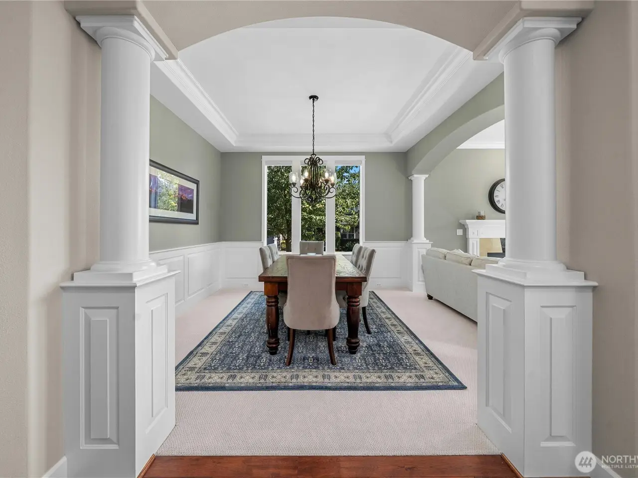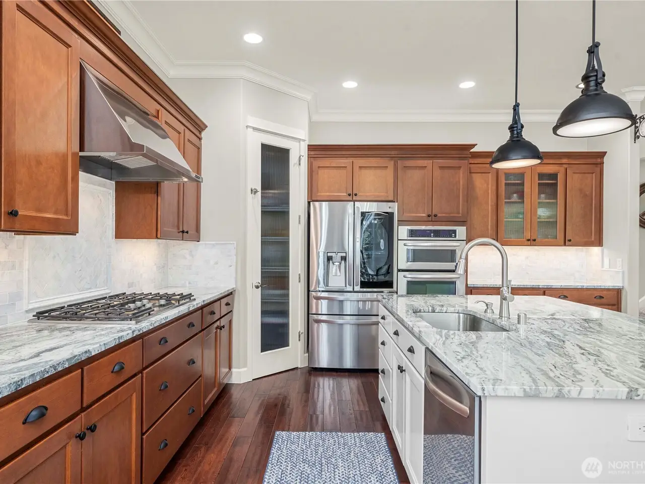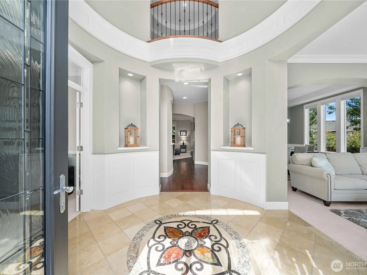 Welcome to Pinnacle Estates, where timeless craftsmanship meets modern living in this stunning Steve Jensen home w/ $100k update in past year. A dramatic 2-story rotunda foyer, hand-scraped hardwoods & custom millwork offer elegance & warmth. The gourmet kitchen featuring new quartzite counters, custom marble backsplash & premium appliances flows seamlessly into the inviting family room. Upstairs find 4 spacious bedrooms & bonus room w/ wet bar. Main floor bed/den & 3/4 bath add flexibility. Retreat to the master suite w/ soaking tub & dual walk-in closets. Enjoy A/C, 3 fireplaces, covered patio & private backyard. Expansive windows frame mountain & territorial views. Rare 6-car garage, walkable to parks, trails, schools, shopping & transit.
