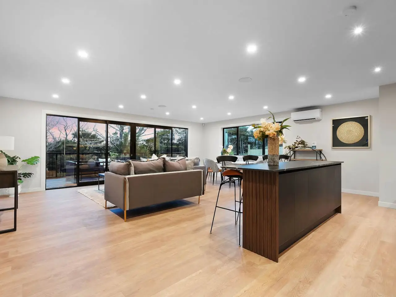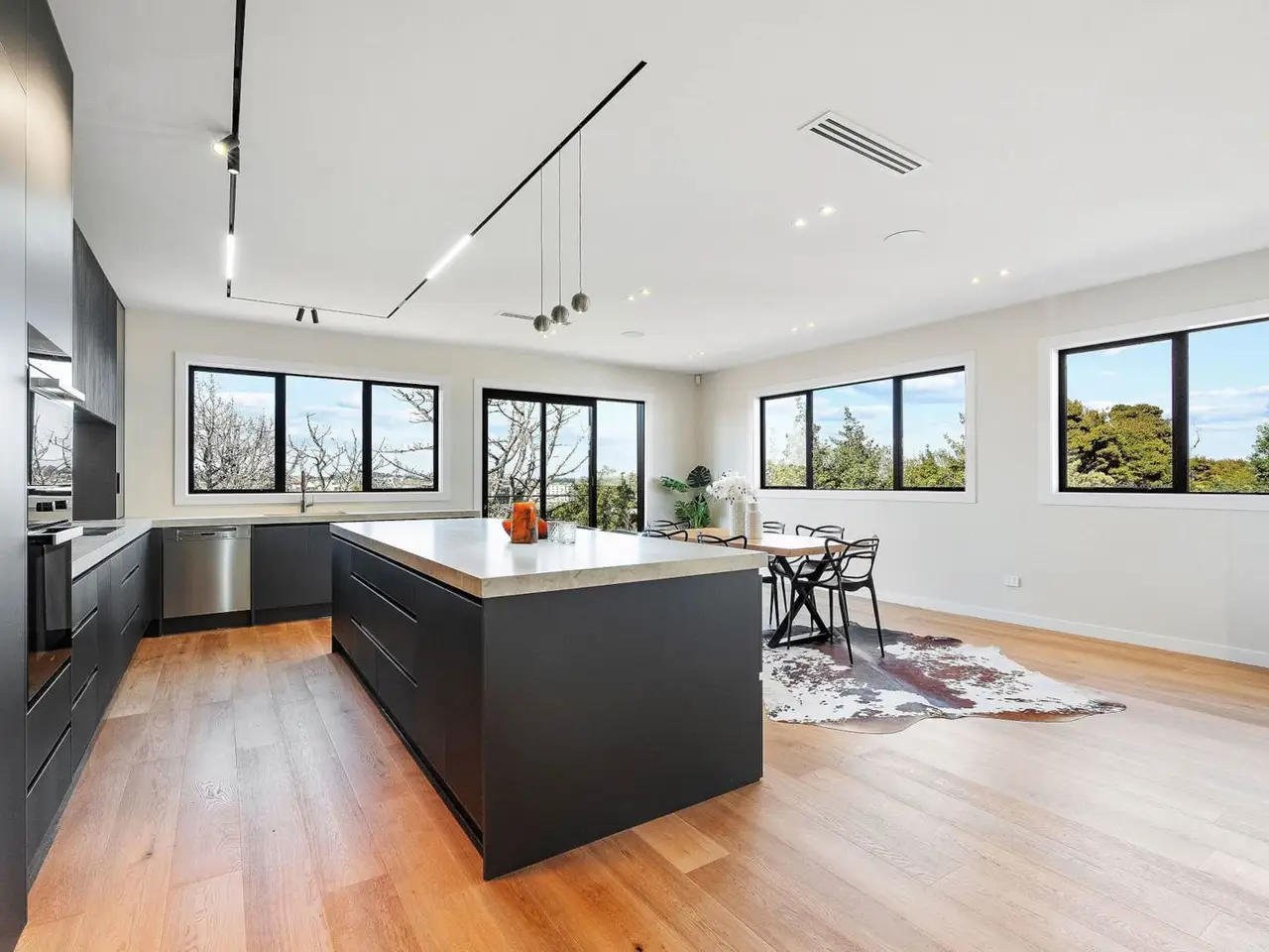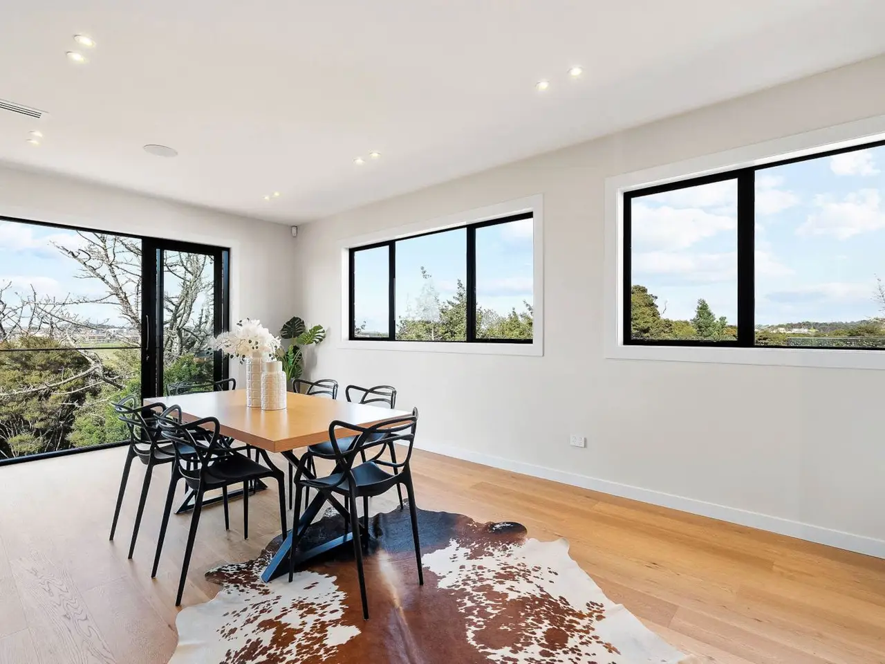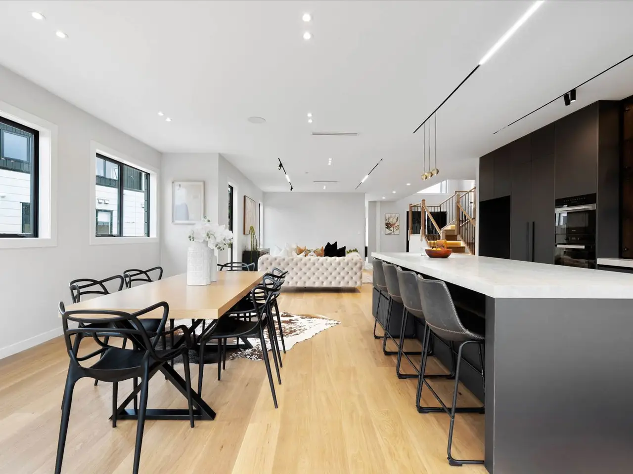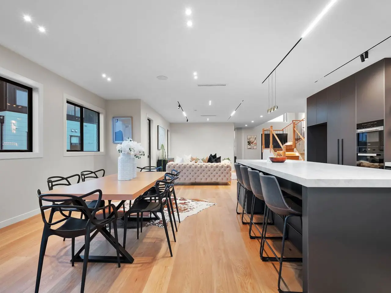 Expansive living and dining area with wide windows