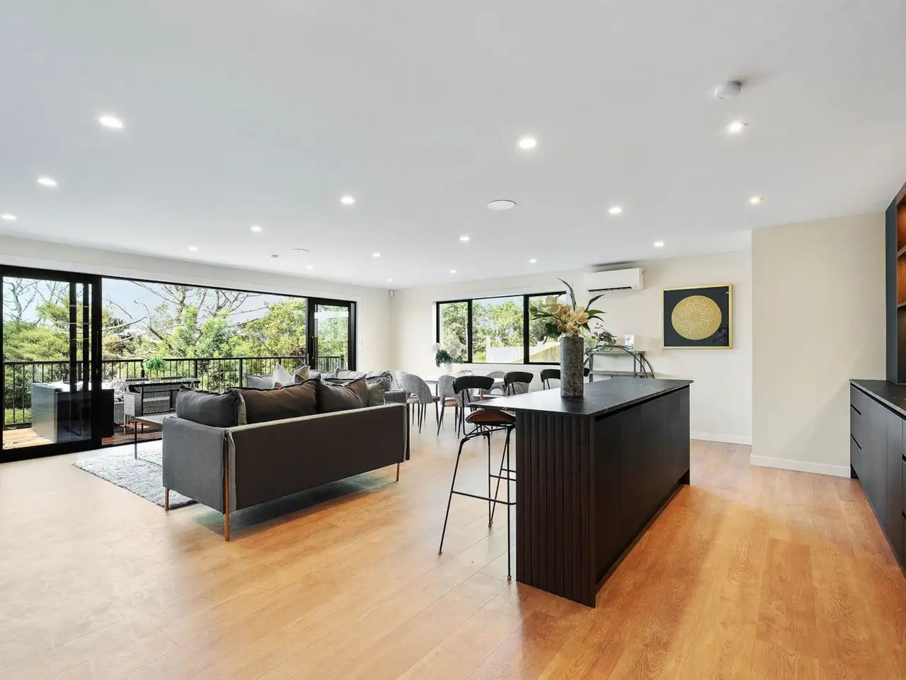 Step inside and discover a home where every corner is crafted for comfort, elegance, style, and effortless living. Flooded with natural light and exuding a wonderful sense of space, this exceptional residence is designed to elevate your everyday experience. Begin in the welcoming separate lounge, seamlessly flowing into the expansive living and dining area, an entertainer’s dream, illuminated by wide windows that frame the home in warmth and sunlight. At the heart of the home, a high-end designer kitchen gleams with Miele appliances and a walk-in scullery, making both daily meals and special gatherings a true pleasure. Two beautifully appointed bedrooms complemented by a separate guest powder room for extra convenience. Entertainer’s Paradise is there. The lower level is dedicated to grand-scale entertaining. A vast lounge opens directly onto a sun-drenched garden terrace—perfect for alfresco gatherings. The sleek bench top service area stands ready as a stylish entertaining hub, while a walk-in wine cellar adds an extra touch of sophistication. Two further bedrooms, a generous multipurpose lounge, and a full bathroom offer versatile spaces for family living or hosting overnight guests. Upstairs, indulge in two magnificent master suites—each a sanctuary of light, space, and tranquility. Both feature luxurious ensuite bathrooms and are designed as private retreats—your perfect escape at the end of each day. Perfectly prime positioned near the vibrant heart of Albany, this home offers a lifestyle of ease and connection. Westfield Albany’s shopping, dining, and entertainment are moments away, with superb public transport links nearby. Families will appreciate zoning for Albany Junior and Senior High, Massey University, and close proximity to the esteemed Kristin and Pinehurst Schools Homes of this calibre are a rare find. Don’t miss your chance to secure a refined lifestyle in one of Albany’s most desirable locations. Contact us TODAY to arrange your private viewing and make this masterpiece yours! Auction: 8-12 The Promenade, Takapuna on Wednesday 29 October 2025 at 9:30AM (unless sold prior)