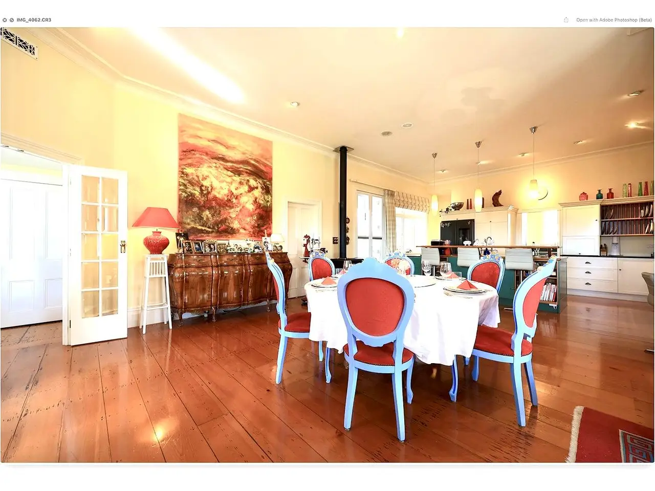 Open-plan dining area with courtyard access