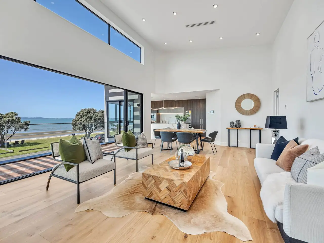 Flawless coastal elements blend with a visionary contemporary influence to form an extraordinary waterfront residence. For those who demand excellence and have a trained eye for refined indulgence and functionality, you will need to see this splendid home. Floor-to-ceiling glass at every turn ensures the encapsulating beach and Waiheke views are front and centre. While multiple spots to relax or host guests await, including a magnificent high-stud and light-filled living, dining and kitchen oasis. The indulgent gourmet kitchen is headlined by a marble waterfall island and a wealth of high-end finishes, including a full complement of Gaggenau and Liebherr appliances and a fully-equipped butler's pantry.The five bedrooms are the ultimate in luxury. In the master suite find a decadent ensuite and floor-to-ceiling closets in the walk-in wardrobe. Elsewhere, glass-fronted wardrobes are the next level in modern touches. And, keeping two bedrooms on the ground floor, both with ensuites, allows for next-level hosting. No expense has been spared in creating this grand-scale, two-storey home. Along with an integrated system, including a smart door, intercom, camera and music system, there are automatic gates, underfloor heating in the bathrooms, central vac and air-conditioning system and gas fireplaces. The double garage is internally accessed. Waterfront living is at its absolute finest in Eastern Beach. Start each day with a barefoot stroll, or grab the paddleboard for sublime exercise, and take the dog for a good run. In zone for some of the city's most popular schools, including Bucklands Beach Primary and Intermediate and Macleans College, and with such easy access to the greater city, here is where life begins. Make it happen now.