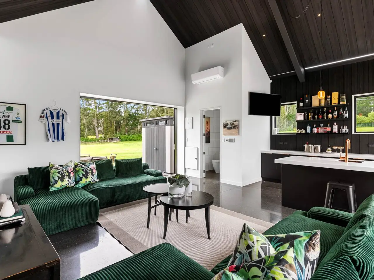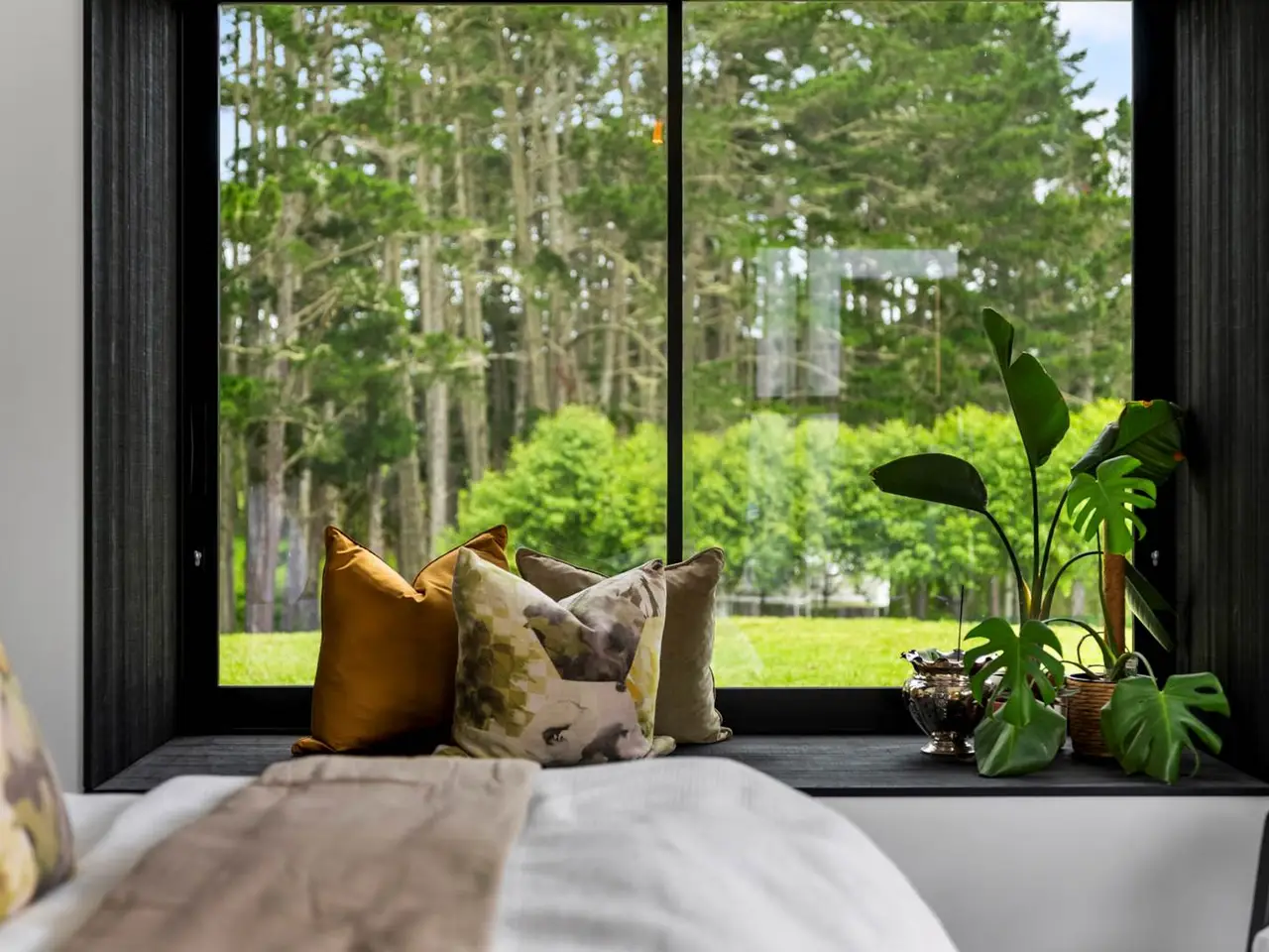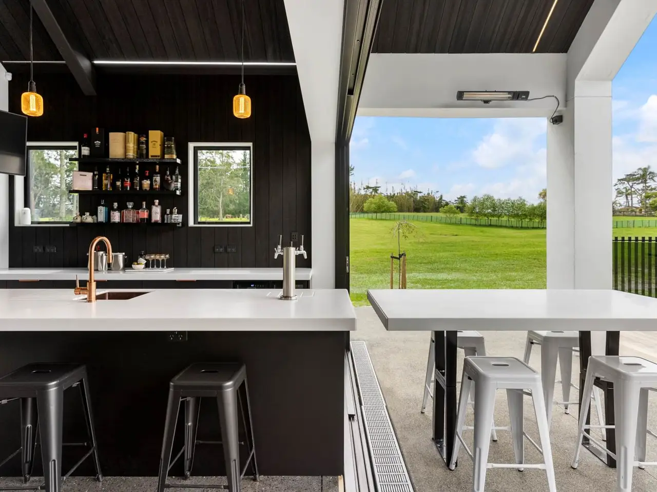 Large glazed volumes framing paddock and garden views