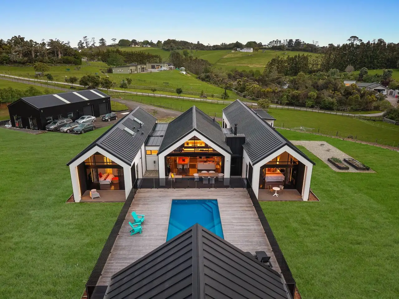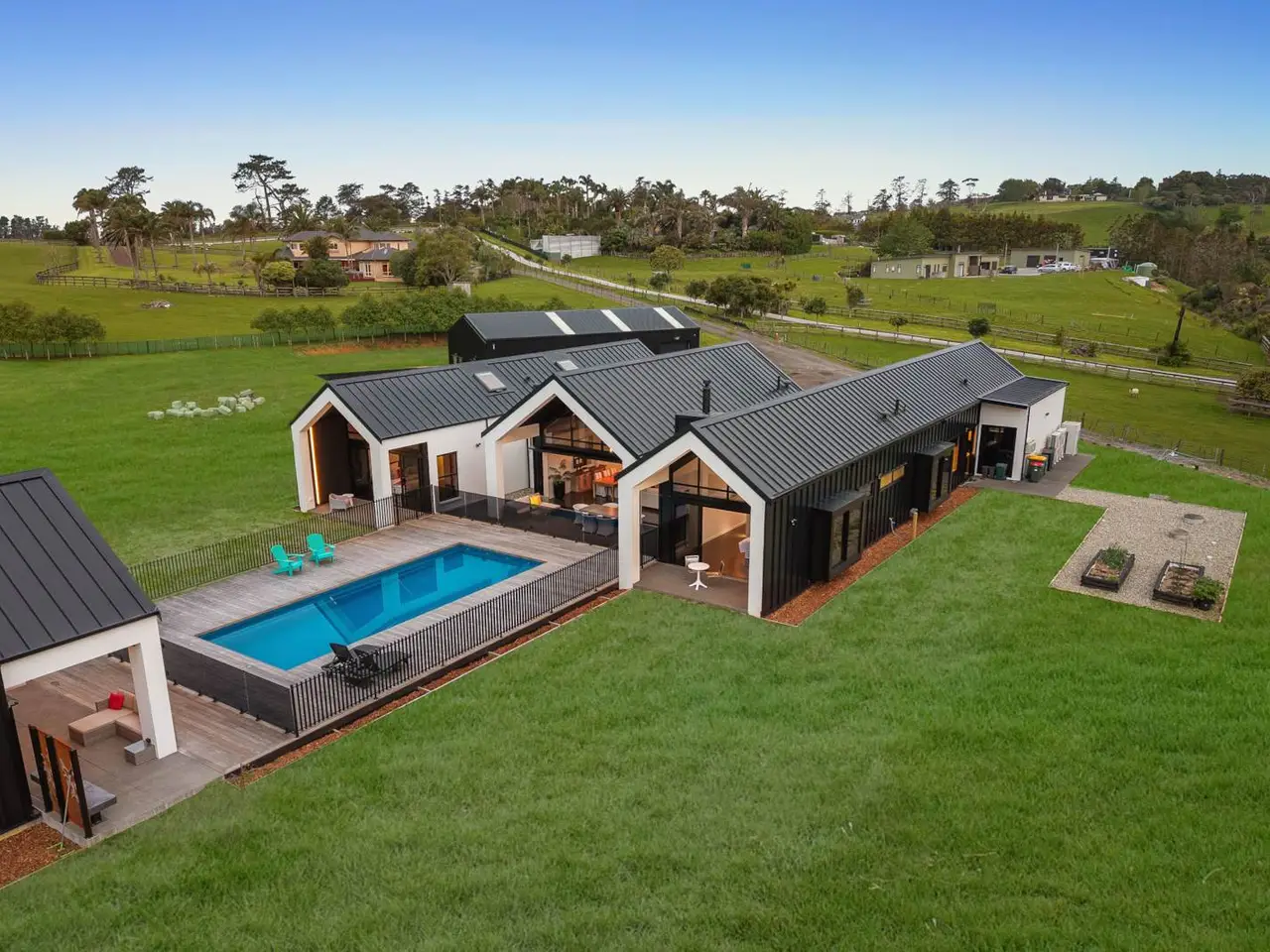A rare opportunity — an architecturally confident home set on 1.366 hectares that lives like a private country estate, can function as a fully operational lifestyle block or an executive retreat. At 498 m²(more or less) this is generous, considered design: spaces that welcome gathering, solitude and every kind of family life in between.The home is resolved in high-quality, durable materials — warm, textured timber, polished concrete floors with hydronic underfloor heating and wide timber decking that draws the inside out to the landscape. Large glazed volumes frame paddock and garden views, letting light fall across generous living spaces and quietly showcasing the craftsmanship throughout.The heart of the home is a chef-calibre kitchen with scullery flowing to entertainer-friendly living and outdoor areas, including a beautifully appointed cabana with built-in amenities and a heated concrete seat. Along with thoughtfully positioned pool it creates a private resort feel on the property.Practical excellence is integral: multiple heating/cooling zones, extensive water storage, modern wastewater filtration, high-speed data and integrated security with digital access and automated lighting, systems that deliver comfort, efficiency and peace of mind. A substantial 160 m² barn with dual access provides genuine utility for equipment, animals or workshop needs.This is not just a home, it’s a lifestyle unlocked: room for horses, hobby farming or simply the luxury of space, design and exceptional build quality. Positioned for easy access to town yet comfortably private, 55A Nixon Road is a unique offering for buyers seeking something truly special. Auction: 280 Manukau Road, Epsom (Branch Office) on Wednesday 26 November 2025 at 5:30PM (unless sold prior)