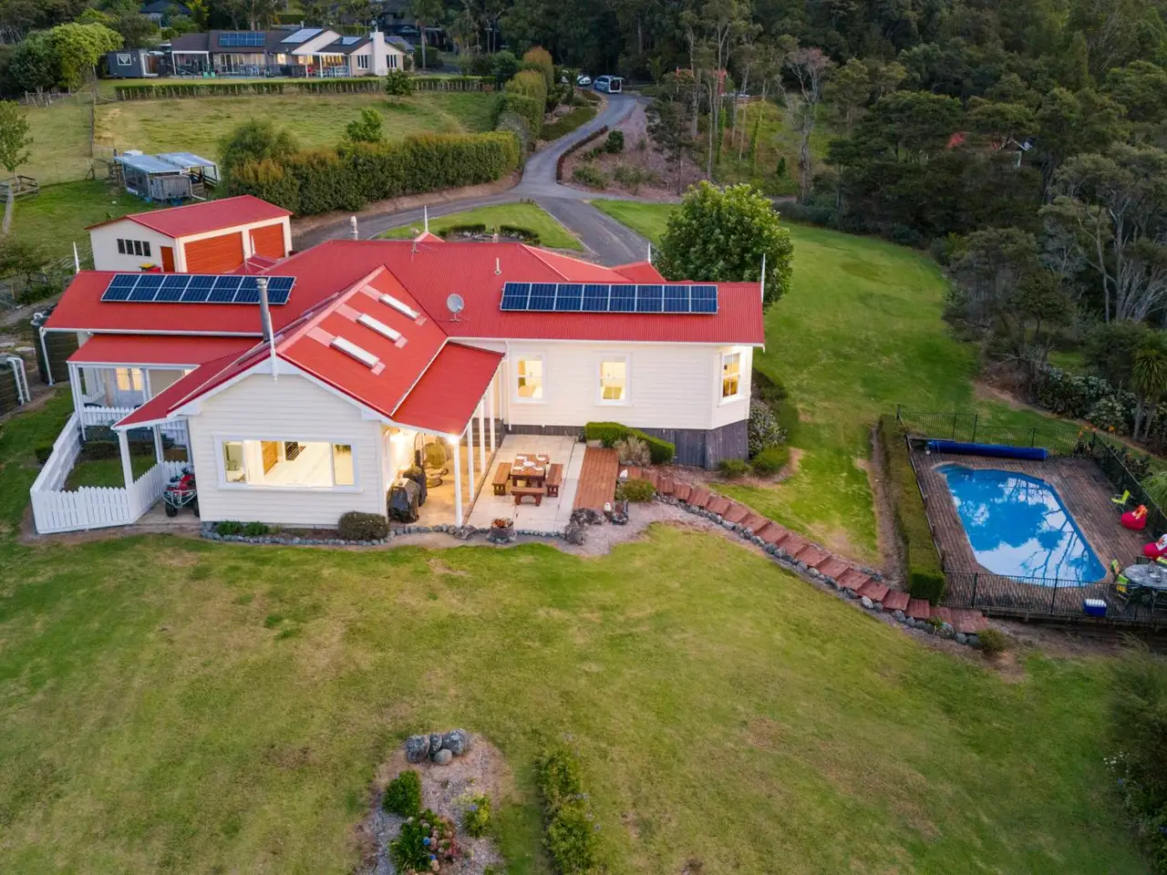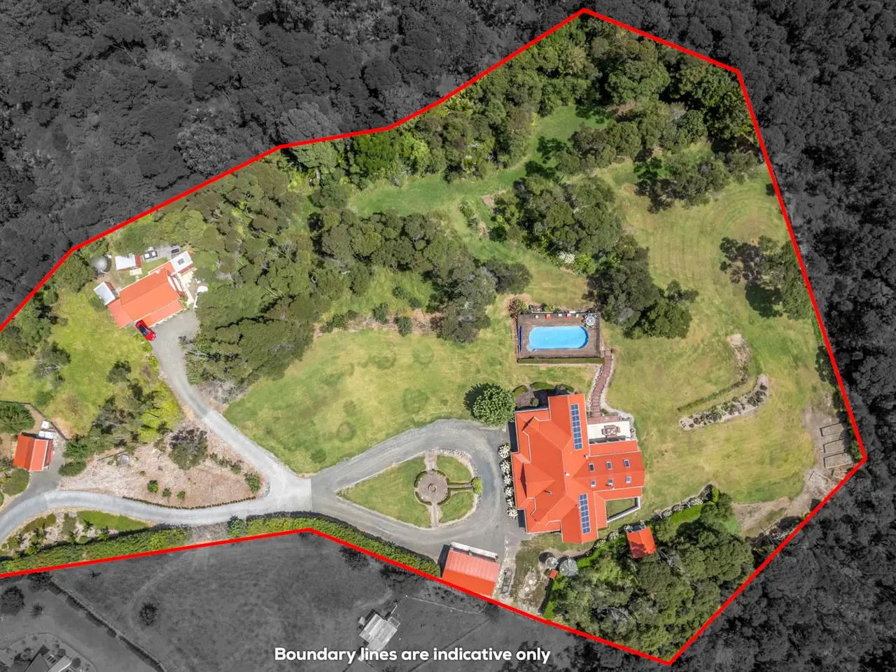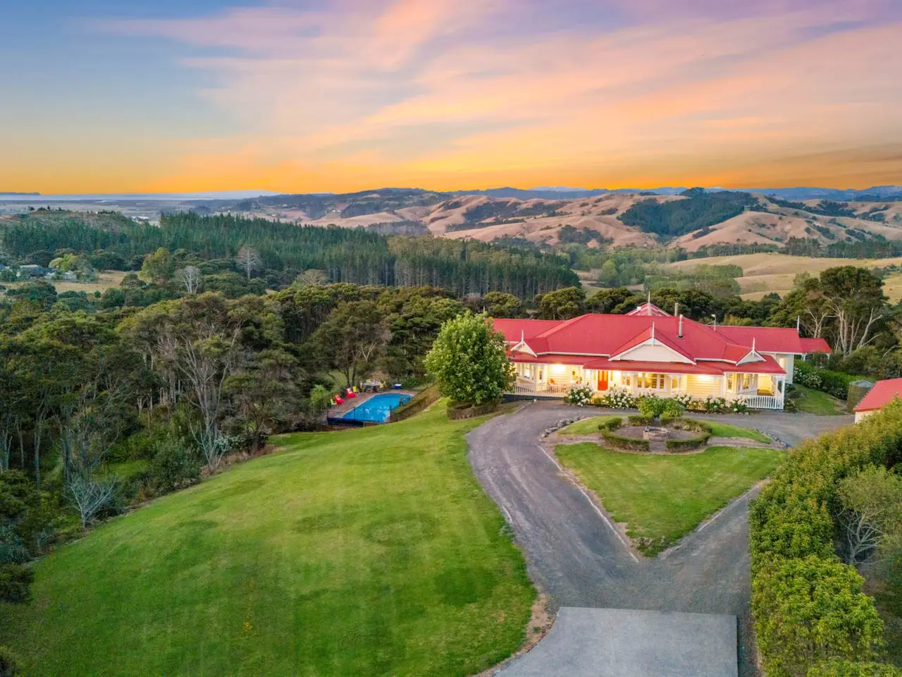 Walking through the gate and looking down the 100-metre drive, you will be captivated by this extraordinary home. This award-winning modern re-creation of a 1900’s era Victorian Villa, resplendent in its beauty, leaves a lasting impression on everyone who visits! It's more than just a home; it's a dream come true, blending contemporary construction with traditional character and the endearing charm of yesteryear!This 6-year-old Supreme Winner of the NZ Grand Designs House of the Year Award bears the exclusive hallmark of bespoke luxury and impeccable craftsmanship. Driving down the concrete driveway past the two-bedroom guest dwelling-The Lodge-the magnificent scale of the villa emerges.Private and established on more than three acres of native bush and landscaped gardens, the villa’s elevated position offers views of the McKenzie Ranges, Kaipara Harbour, and idyllic rural vistas.The luxurious, richly textured interior décor exudes glamourous opulence throughout, with plush carpet underfoot, gallery hallways, 3.6 m high ceiling, feature stained glass windows & bejewelled elegant chandeliers overhead. The layout is spacious & grand. Built to modern standards, the home features a heat pump, double glazing & solar power, providing energy-efficient, comfortable living all year round.The hub of the home is the epic open-plan designer kitchen/dining room with a towering Cathedral ceiling. The awe-inspiring rural views from the enormous kitchen picture frame window take your breath away. The designer kitchen features bespoke imported cabinetry, a Belling Gas Hob, a Wagener coal range & double fridges. Access opens out onto the entertainment area with steps leading down to the swimming pool & deck. A spa pool with a covered rotunda is also included.The family lounge, with its wood burner fire, is an intimate & relaxing space for the whole family. The library doubles as a media room, secondary living, or extra bedroom. The family bathroom features a claw-foot bathtub & pedestal basins.The five large bedrooms include the Master Suite with a walk-in wardrobe and ensuite bathroom.The Lodge accommodates extended family living or additional income opportunities, e.g., Air BnB.A large, near-new triple Versatile garage offers excellent storage & vehicle parking.