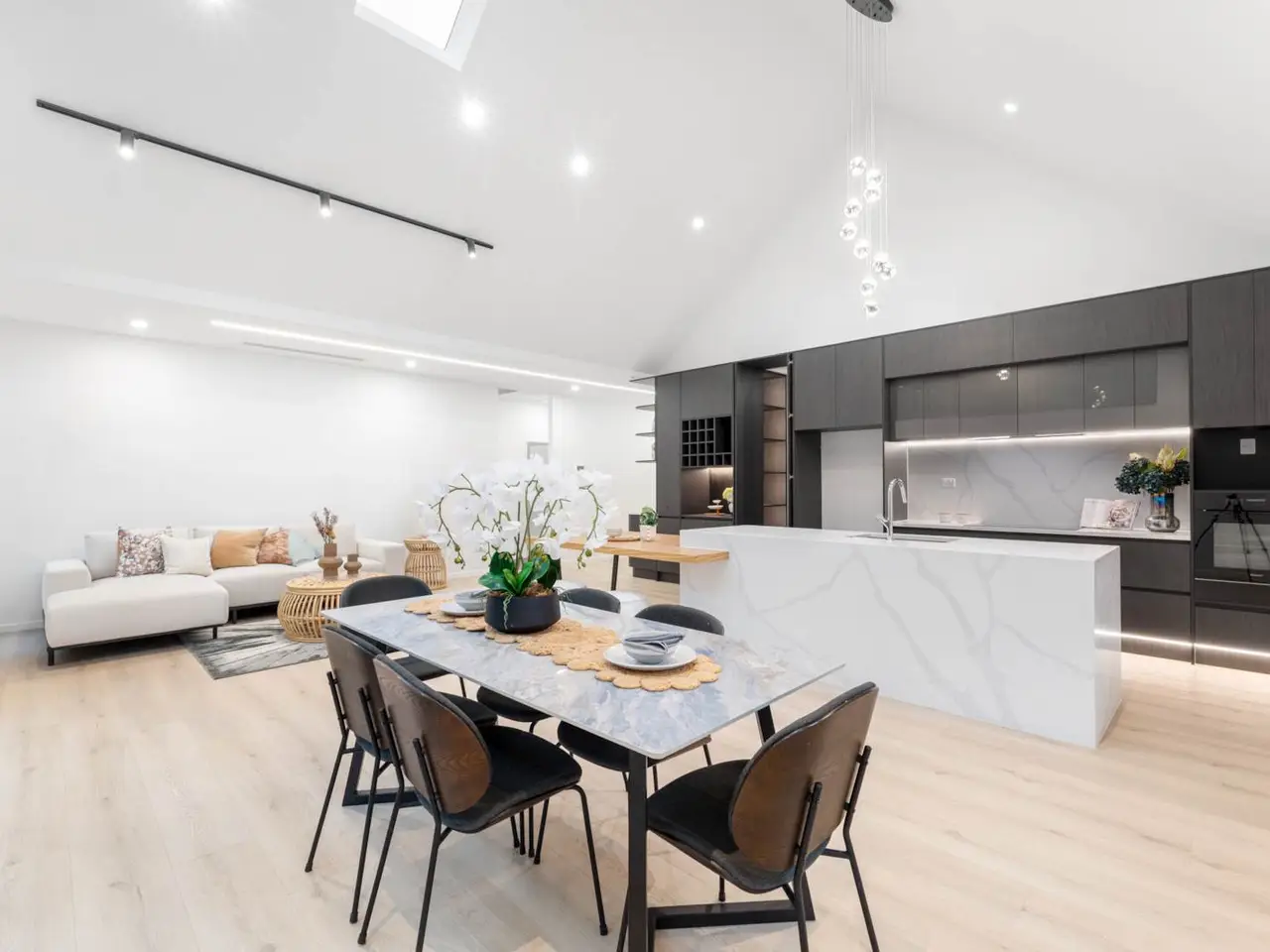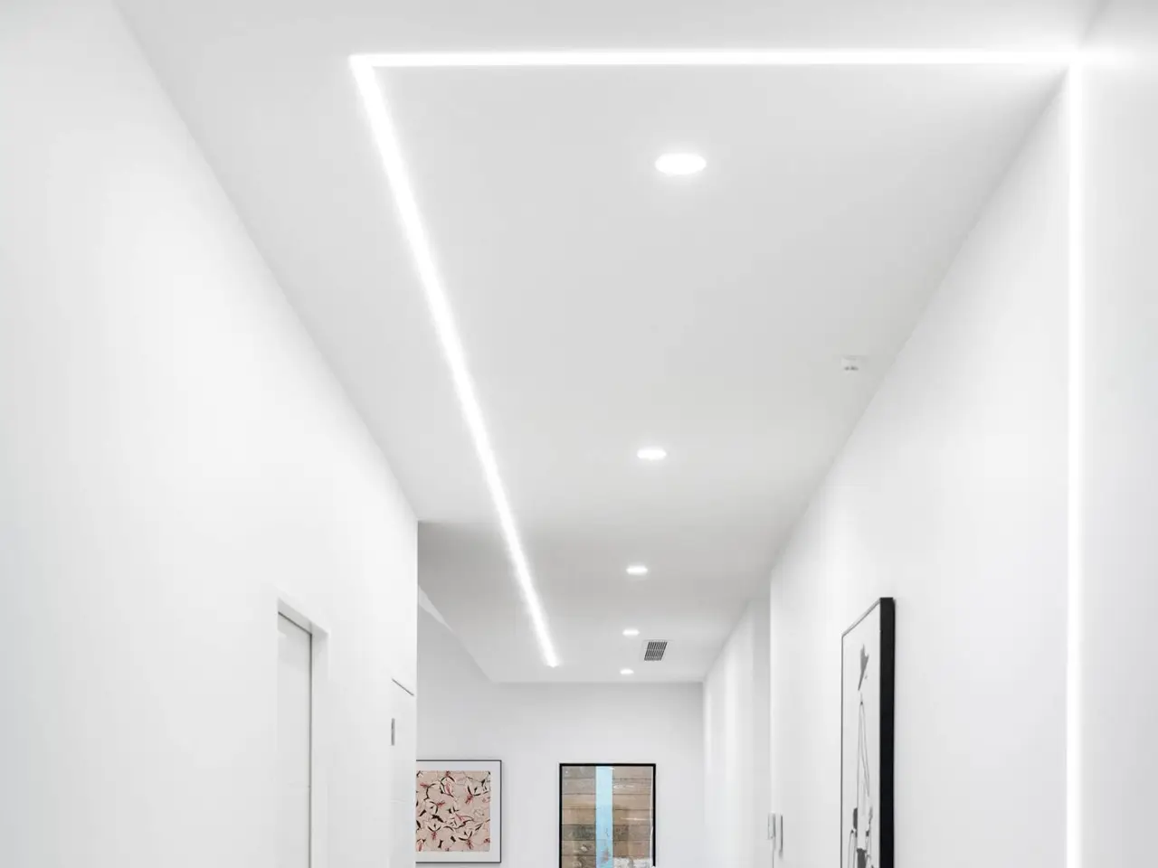 Soaring cathedral ceilings with recessed LED lighting